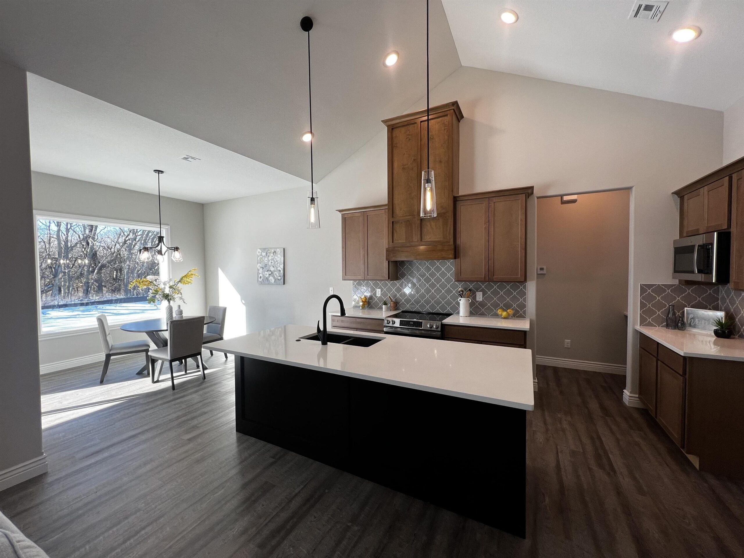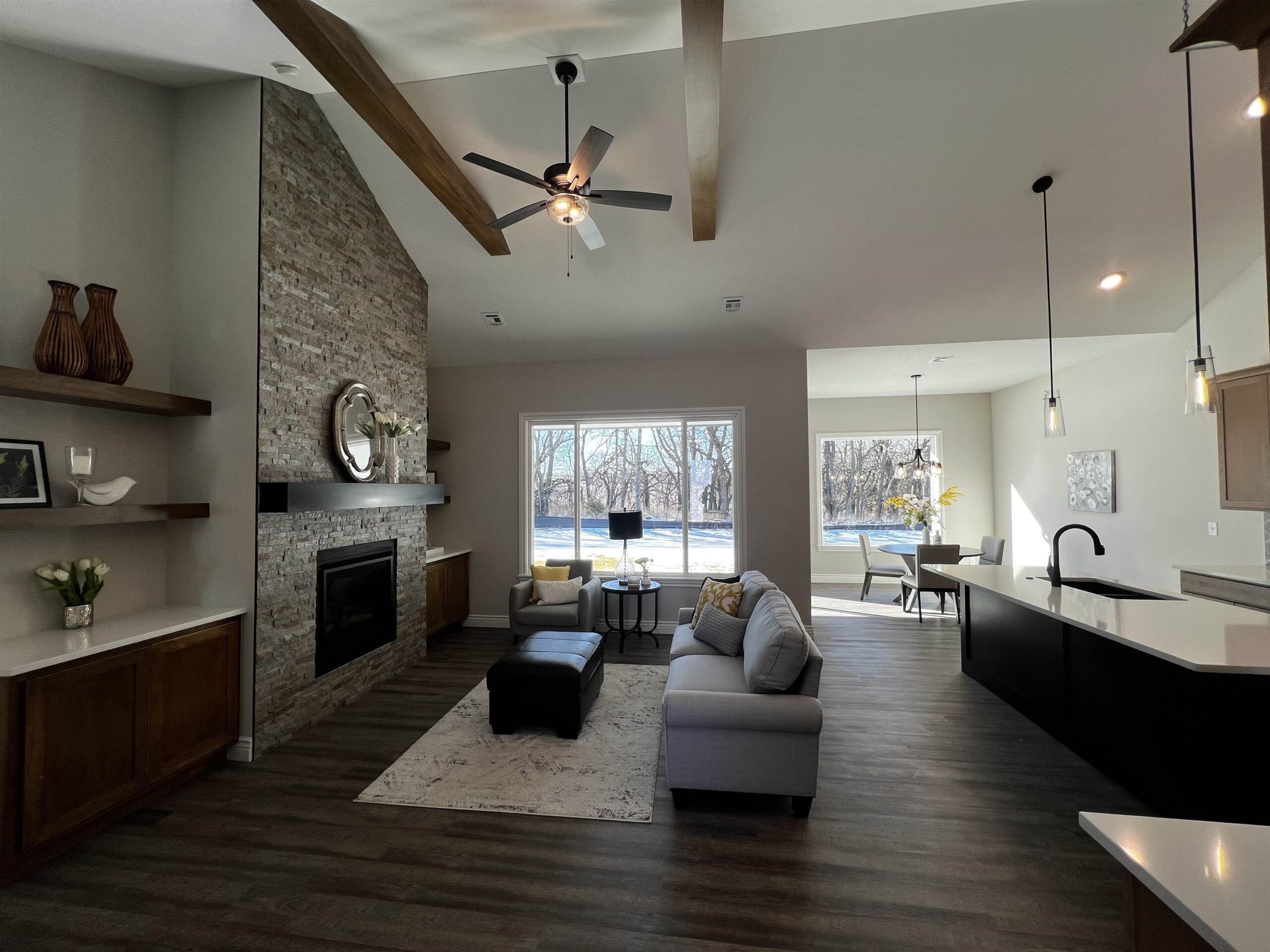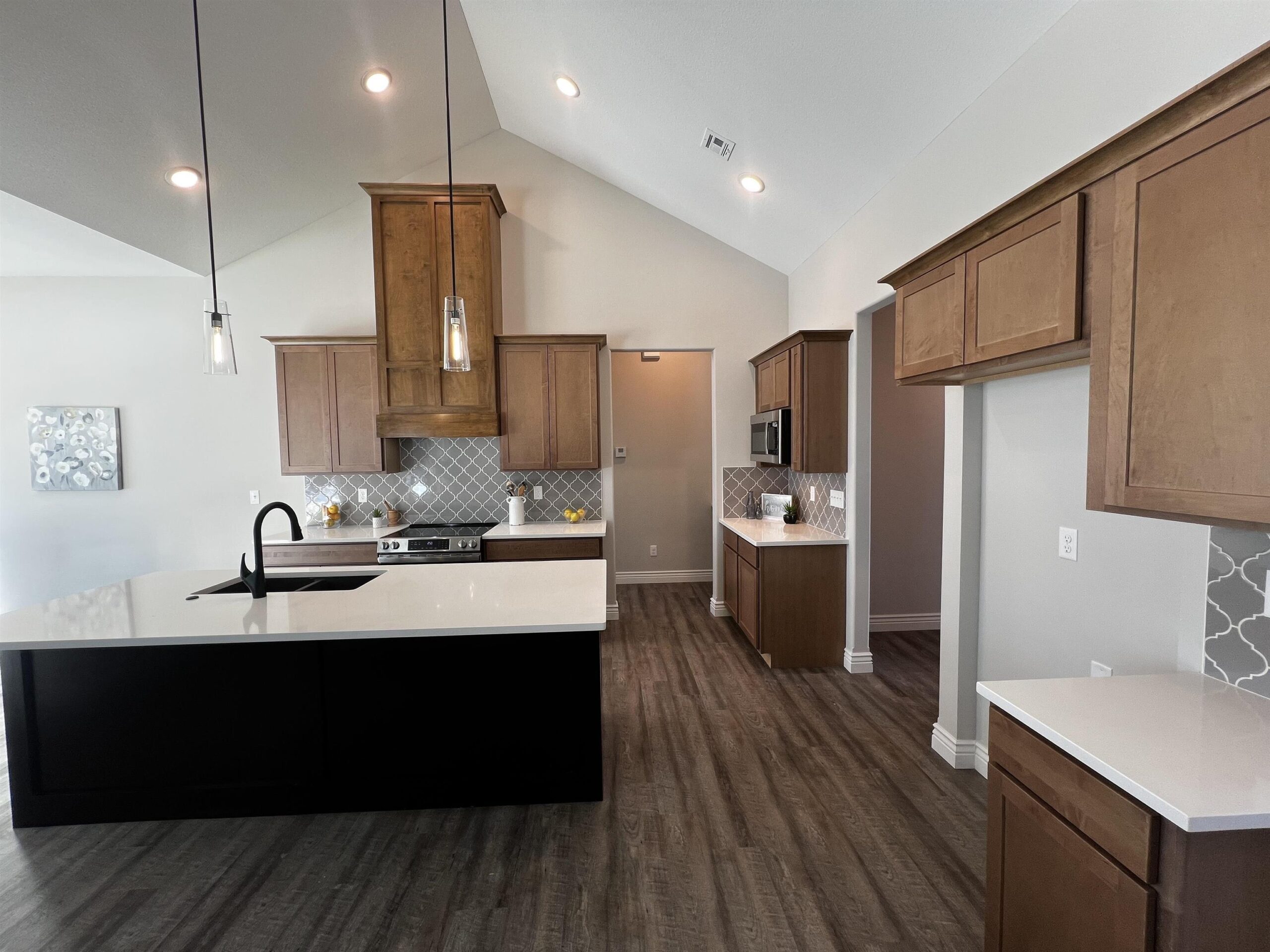 - Description: Come see this BRAND NEW zero entry slab home. The home features an open, split bedroom floorplan with Luxury Vinyl Plank flooring, gas fireplace in the living room, and granite counters. The kitchen features a large island and walk in pantry. The master has a tile shower, soaker tub, two sinks, a water closet, and a large walk in closet. The home has two additional bedrooms with another full bathroom, two linen closets, and a safe room through the hallway. The laundry room is a separate room off the master closet. There is also a half bath off the drop zone room off the garage. The outside features a covered patio, sprinklers, a well, and sod. Schedule a showing today! Show all description