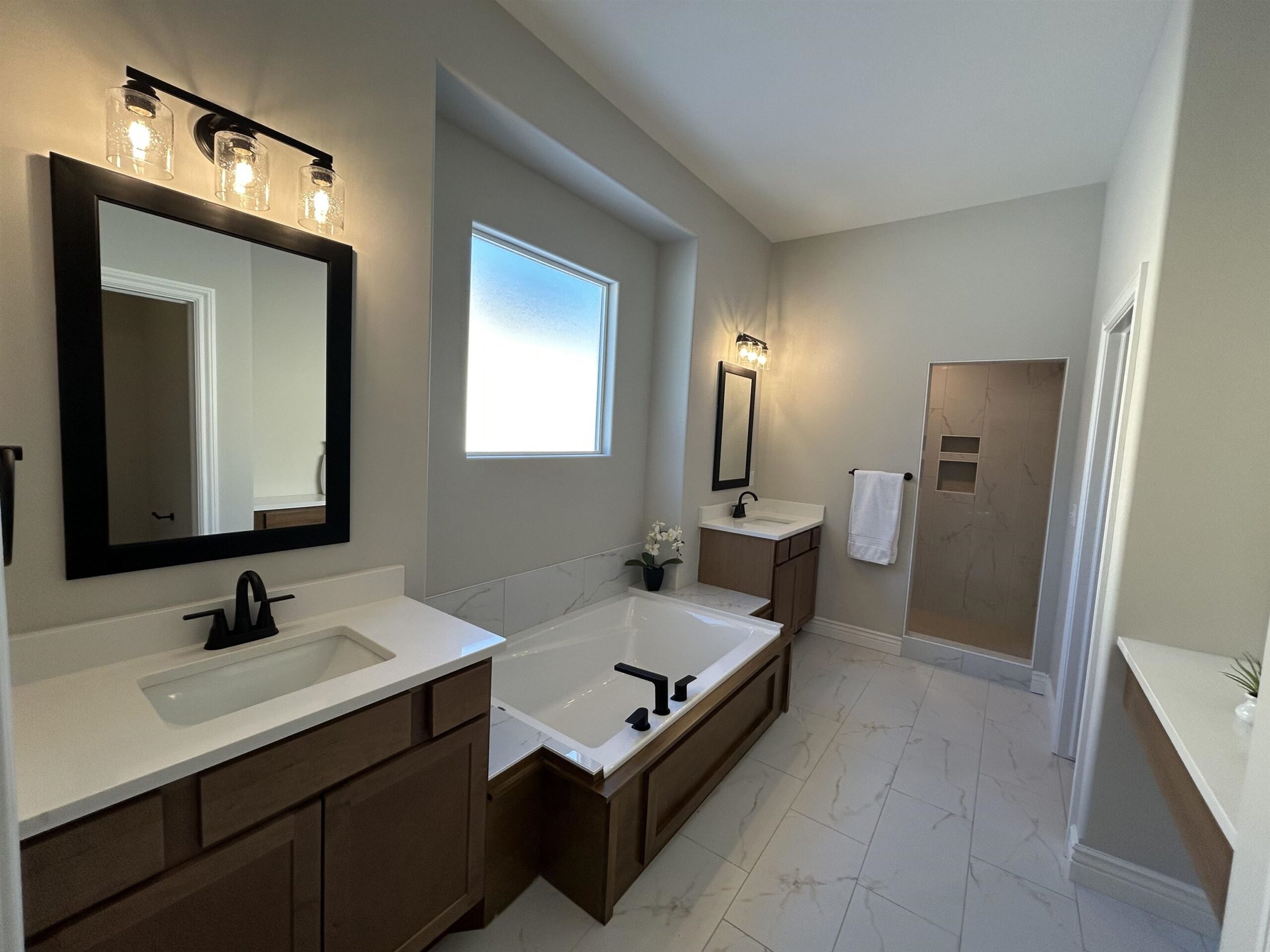 - Master Bedroom: Master Bdrm on Main Level, Split Bedroom Plan, Master Bedroom Bath, Sep. Tub/Shower/Mstr Bdrm, Two Sinks, Granite Counters, Water Closet