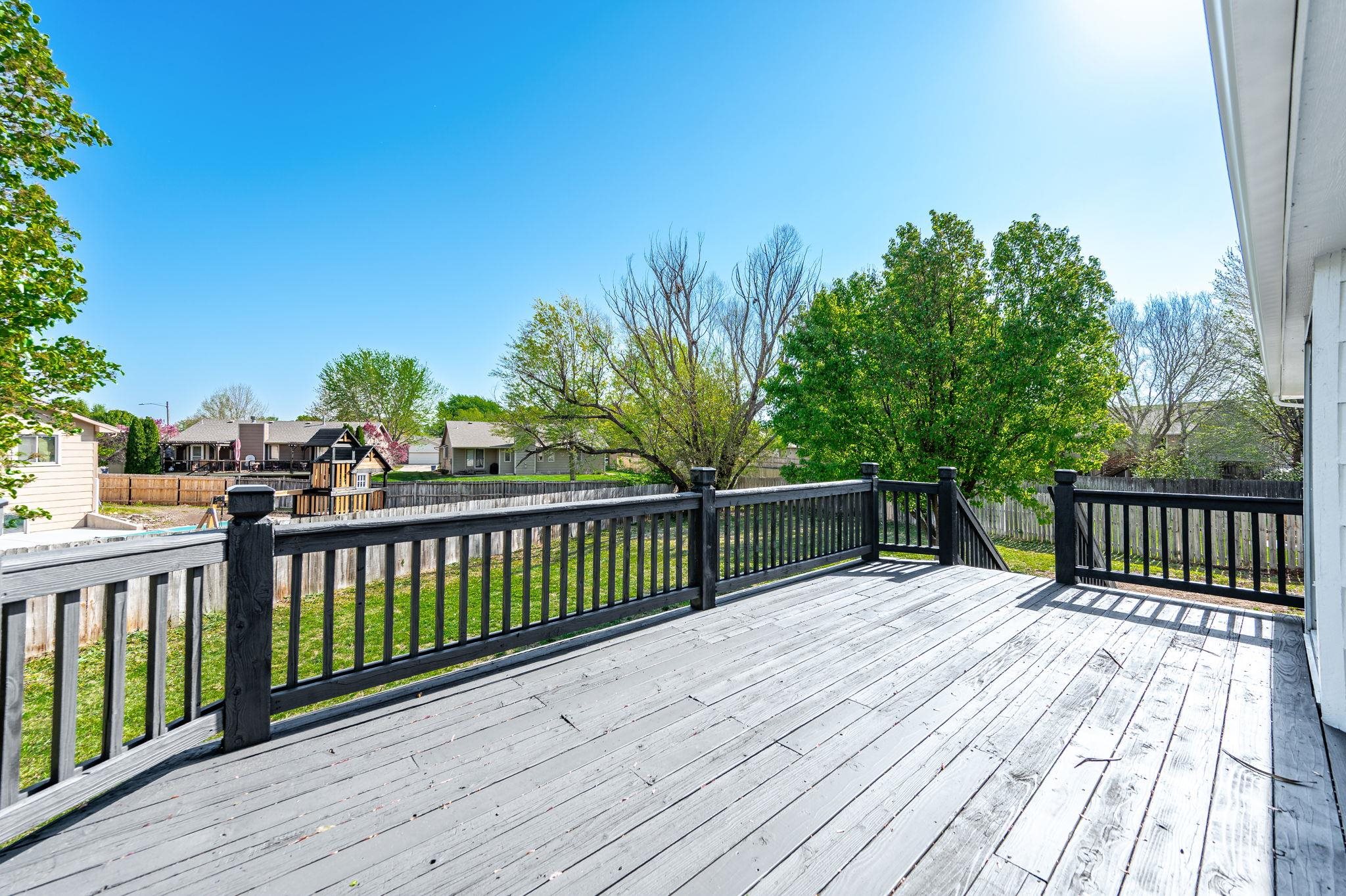 - Description: If you’ve been hunting for a fully renovated 5-bedroom home in the Maize school district, this is the one for you! Welcome to Bradford—one of west Wichita’s favorite neighborhoods—just minutes from NewMarket Square, the Warren Theaters, and all the restaurants and shopping around 21st and Tyler. You’re also just a short walk from Reflection Ridge Golf Course, and the neighborhood itself has two community pools, a playground, and several lakes with walking paths—perfect for evening strolls or morning runs. Tucked away on a quiet cul-de-sac, this home has a fully fenced backyard and plenty of room to spread out. The curb appeal is on point with fresh siding and exterior paint. Plus, there’s an irrigation well to help keep that lawn looking green all year long—no crazy water bills here. Step inside to find a bright, welcoming living room with vaulted ceilings, luxury laminate floors, and tons of natural light. The open dining area flows into the kitchen, which has been updated with new quartz countertops, freshly painted cabinets, and stainless steel appliances (yep, they all stay). A sliding glass door leads out to a big back deck—great for grilling or just enjoying a quiet evening outside. Upstairs, there are three bedrooms and a full hallway bath, including the primary suite with its own private bathroom. The en suite features a dual vanity, updated tile backsplash, a big soaker tub, and a separate corner shower. You’ll also love the vaulted ceiling and large walk-in closet in the primary bedroom. Downstairs, there’s a huge second living area with a cozy fireplace and wood-stained mantle, plus two more spacious bedrooms and a full bath. The view-out windows bring in plenty of light, and there’s a mid-level walkout that makes backyard access easy. Out back, the brand-new concrete patio is perfect for entertaining, and the cul-de-sac lot gives you extra yard space to enjoy. This home checks all the boxes—updated, spacious, and in a prime west-side location. Come take a look! Show all description