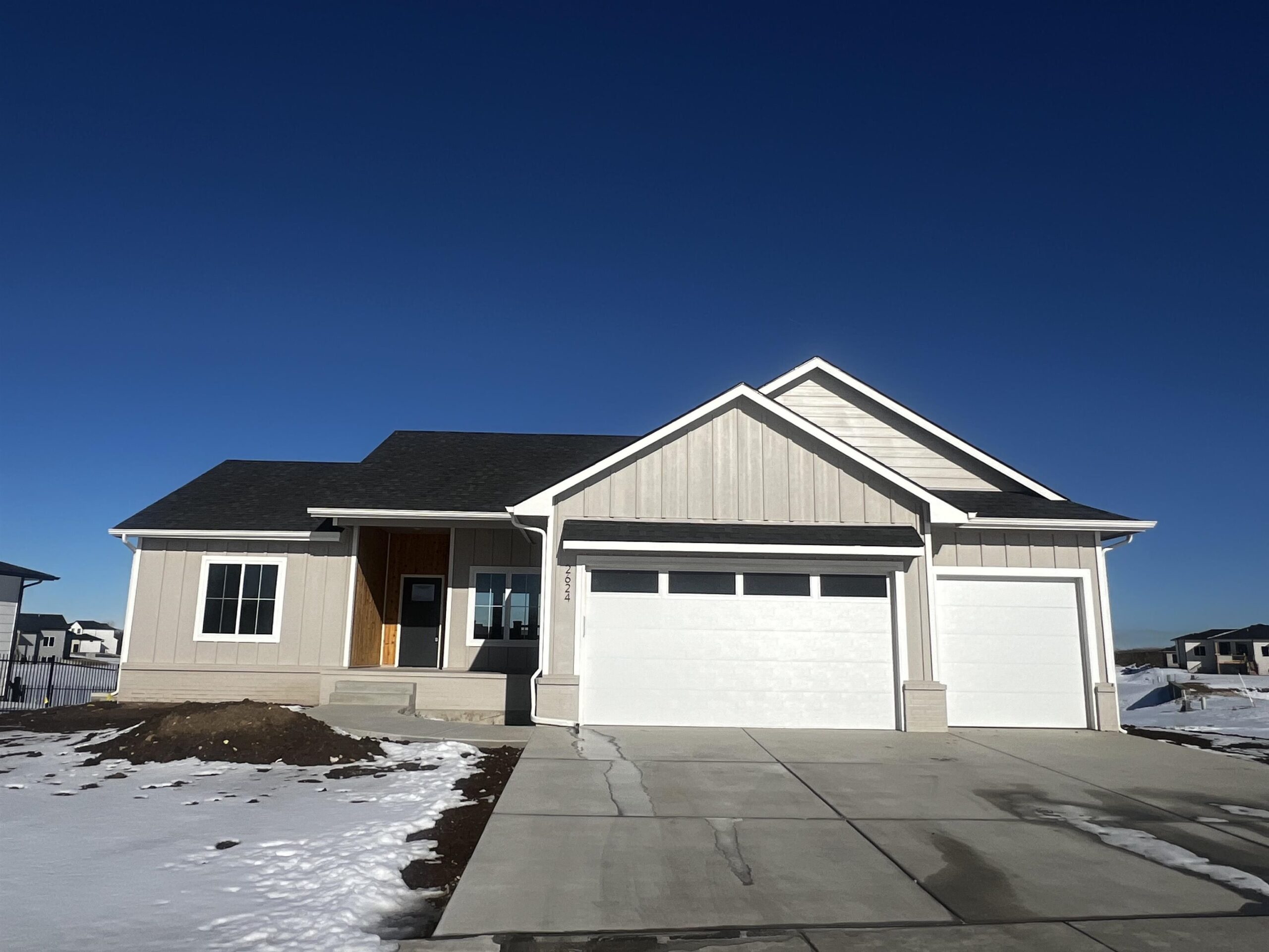 - Description: Welcome to Clear Ridge, where modern living meets serene lake views. This brand-new home showcases a contemporary design with high-quality finishes throughout. Step inside to discover a spacious open floor plan with luxury vinyl plank flooring, granite countertops, and vaulted ceilings that create an inviting atmosphere. The main level features three bedrooms and two bathrooms, including a stylish master suite. The living room is highlighted by an elegant electric fireplace, perfect for cozy evenings. Enjoy outdoor living on the covered deck, overlooking the tranquil lake. The basement offers one finished bathroom, with the option to add a rec room and two additional bedrooms at an extra cost, allowing you to customize the space to your needs. This home also includes a three-car garage, a sprinkler system, and lush sod, ensuring both convenience and curb appeal. Don't miss the opportunity to own a beautiful new home in the sought-after Clear Ridge development. Show all description