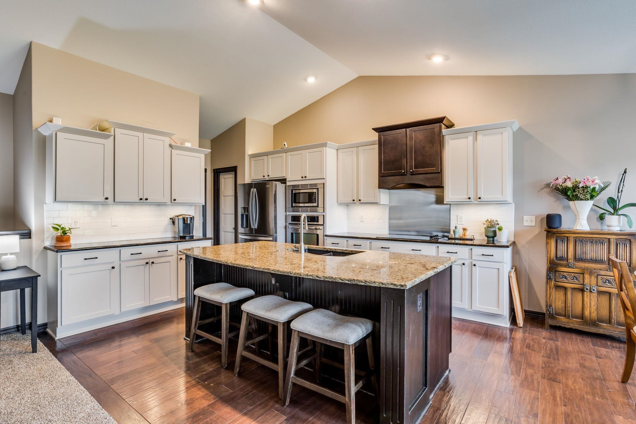 - Description: Welcome home to this beautifully maintained 4-bedroom, 3-bathroom home in Andover School District! This home offers 2, 656 square feet of thoughtfully designed living space. Situated in the desirable Cornerstone neighborhood where you will enjoy three community pools and a spacious park with gazebos and picnic tables for outdoor gatherings and family fun. Step inside this home to find brand-new carpet throughout the home creating a fresh, welcoming feel. The living room showcases gorgeous built-in cabinetry that’s ideal for displaying books, art, and family treasures. The kitchen is a dream, offering double pantries—one of which makes the perfect appliance or butler’s pantry with ample storage and prep space. The primary suite offers a relaxing retreat with double sinks and a luxurious soaking tub in the en-suite bath. Downstairs, a fully finished basement includes a dedicated office, giving you the flexibility to work from home in comfort. Enjoy the outdoors on the covered deck with a fully fenced backyard and sprinkler system. Don’t miss your chance to live in a fantastic neighborhood with top-rated schools and amazing amenities—schedule your showing today! Show all description
