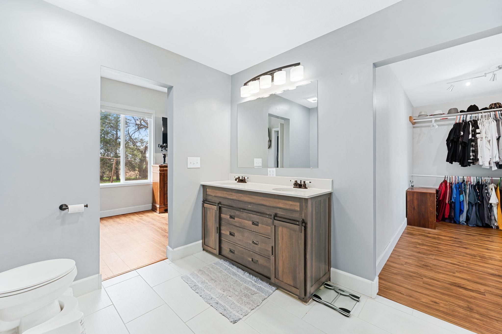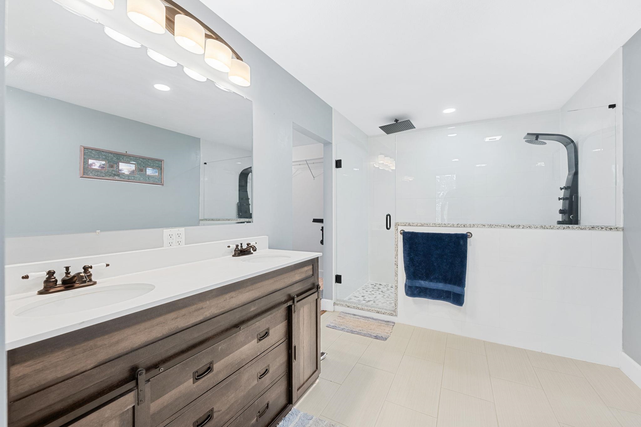 - Master Bedroom: Master Bdrm on Main Level, Split Bedroom Plan, Shower/Master Bedroom, Two Sinks, Quartz Counters