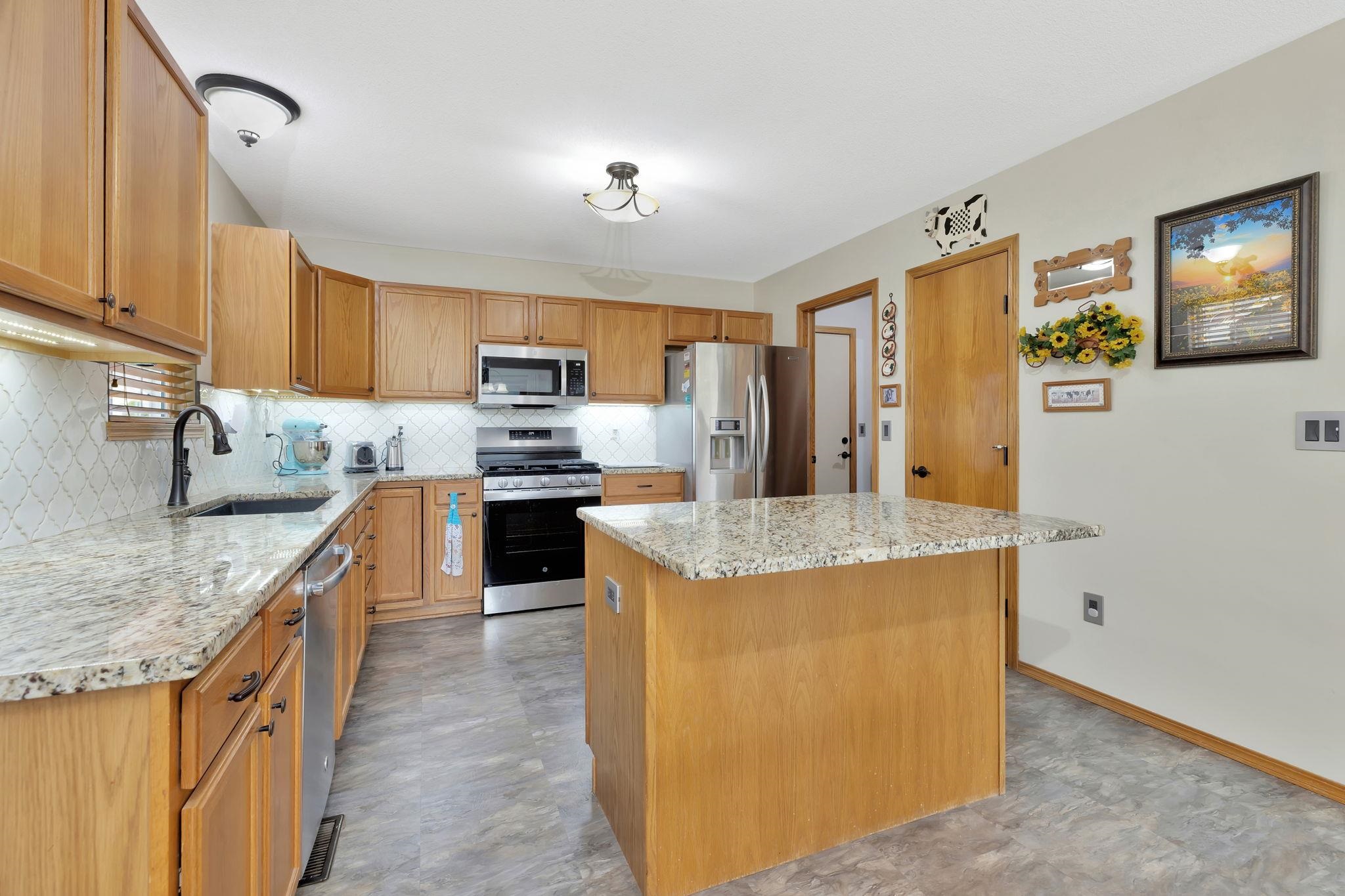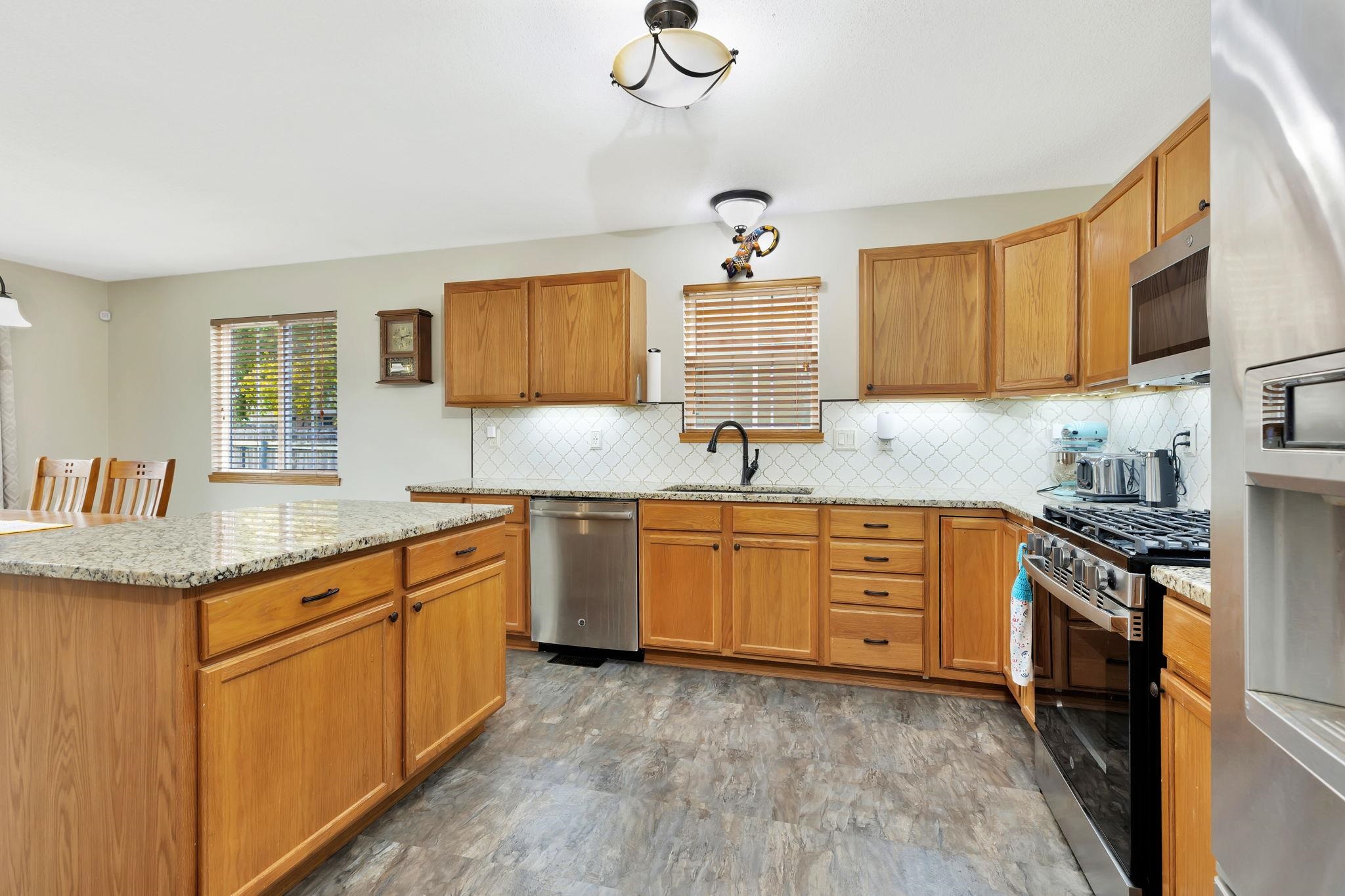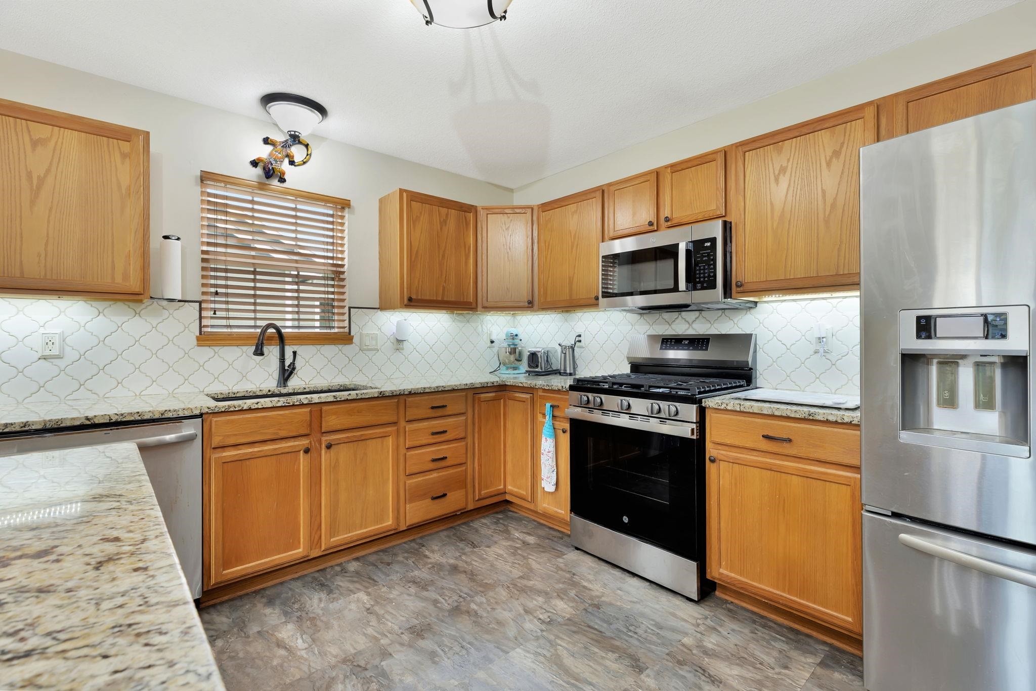 - Description: There’s nothing quite like living just a short stroll from Target and all the great shopping and dining in New Market Square! Step inside to find a bright, light-filled living room that flows seamlessly into the dining area and spacious kitchen—complete with an island, granite countertops, and stainless steel appliances. The laundry room is conveniently located right off the kitchen. On the main floor, you’ll find three bedrooms and two full baths, including a primary suite with a walk-in shower, single vanity, and walk-in closet. Head downstairs to the basement where you’ll discover a huge family room, two additional bedrooms, a full bathroom, and plenty of storage space. The HVAC system is only 3 years old! Out back, enjoy an expansive patio, a nicely sized yard, and a storage shed—plus a sprinkler system and irrigation well to keep your lawn looking great. Don’t miss your chance to see this one—schedule a tour today! Show all description