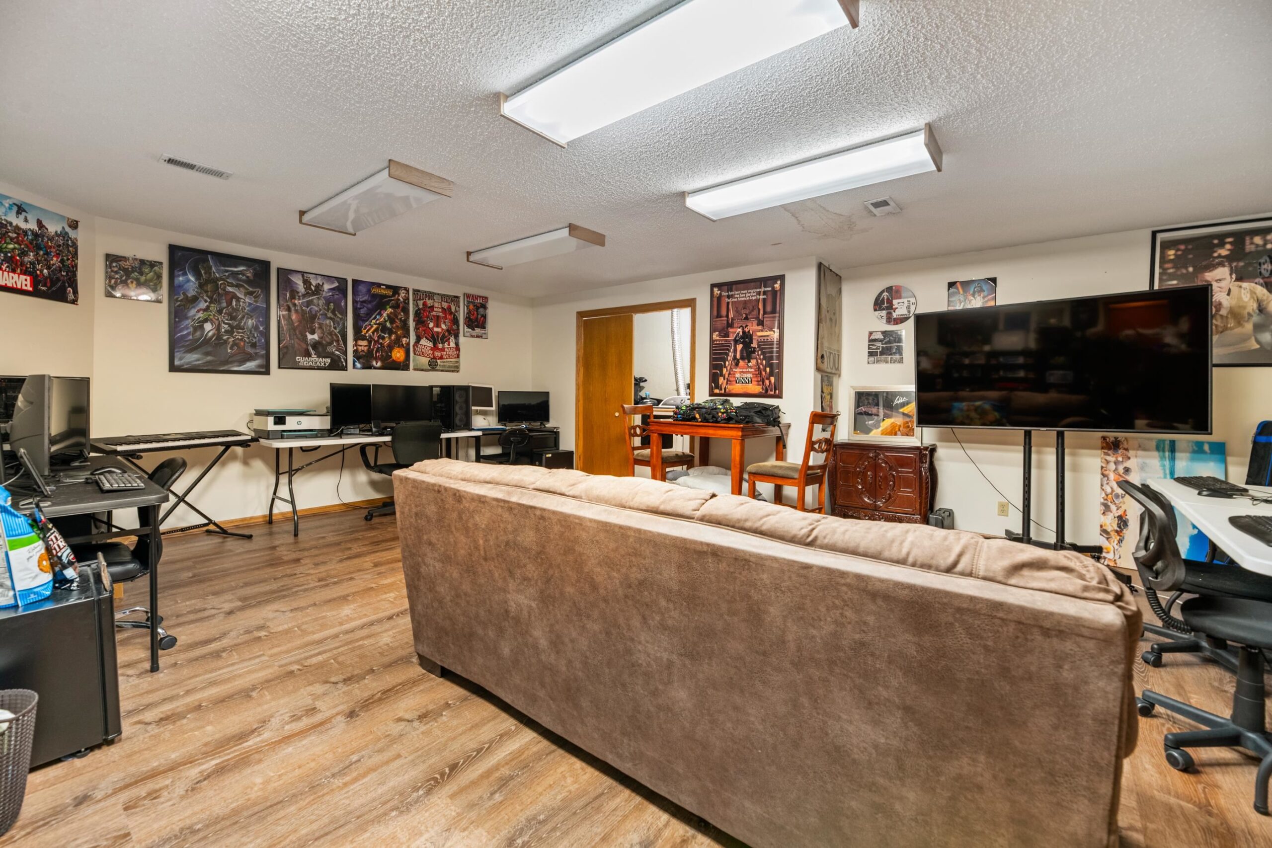 - Description: Welcome home to this charming 4-bedroom, 3-bath beauty located on the corner of a peaceful cul-de-sac in the highly sought-after Waterford North neighborhood. Step inside through the tiled foyer framed by lush landscaping and into a living room filled with warmth — vaulted ceilings, a striking wood-accented wood-burning fireplace (inspected annually!), and custom white built-in cabinetry that adds both style and function. The open formal dining area flows seamlessly into the spacious kitchen as well as a 2nd deck. So many options for dining and relaxing. The kitchen is complete with an eat-in area, bar seating, and upgraded granite countertops that make cooking and entertaining easy and joyful. Down the hallway, the primary suite offers a private retreat with double-door entry, generous closets, skylights, and private access to the courtyard deck, perfect for morning coffee or evening relaxation. An additional 2 bedrooms, beautifully remodeled bath and main floor laundry awaits. Step outside to a beautifully landscaped backyard featuring a composite decked courtyard leading to an entertainer's delight patio. The large two-car garage equipped with a ceiling fan, window and durable coated floor makes maintenance and projects a breeze. The finished basement offers endless possibilities — 2 large rooms ideal for a family room, home office, or recreation space — adding to the home’s already generous layout. This includes a large storage area as well and 2nd laundry option. The 4th bedroom with a daylight window and adjoining bathroom and access off the 2nd recreational area is spacious. Beautiful built-ins in this room as well. This home blends charm, functionality, and timeless design, making it the perfect place to create lasting memories. Seller is motivated!!! Due to work schedules and pet transport, the seller requests 4 hour notice for showings. Thank you! Show all description
