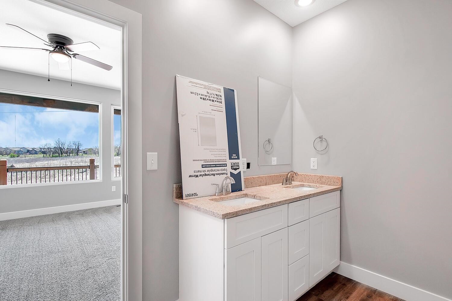- Master Bedroom: Master Bdrm on Main Level, Split Bedroom Plan, Master Bedroom Bath, Shower/Master Bedroom, Two Sinks, Granite Counters