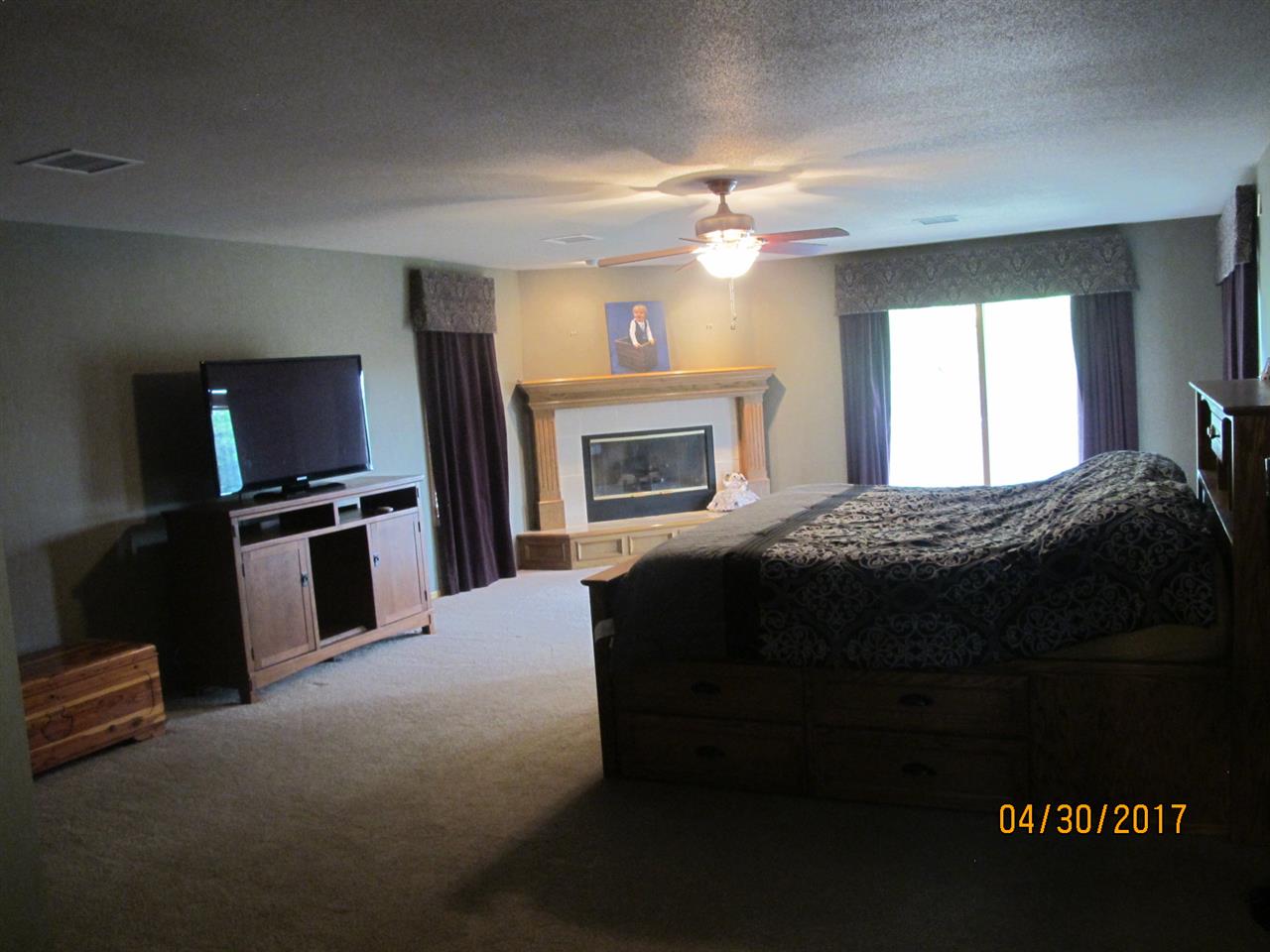 - Description: Wow!!!! This Home Sits on one of the Nicest Lots in Reflection Ridge. It backs up to the 13th hole of Reflection Ridge Golf Course. Home has a Huge Backyard. Master bedroom is Grand in Size 18x27, with a balcony overlooking the 2 Rushing Waterfalls and the Golf Course.. His and Her Separate Walk in Closets. Whirlpool tub, and walk in slab wall shower. There is also a main floor covered deck and a walkout Basement opening onto another Patio. Flooring throughout Main level floor is Wood. There are 3 Electric Fireplaces in this home. One in the Master, One in the Living Room and One in the Basement Rec Room. All bedrooms in this house have private bathrooms with tub and shower and walk in closets. There is a second Kitchen in the Basement. Perfect for a Mother in law room, Or..... for your families entertainment needs. Granite Island, Full size Refrigerator, wine cooler, farm sink, dishwasher and microwave. Also, in the basement is a storm shelter Safe Room, so nice to have. All Appliances in kitchen downstairs and Upstairs Kitchen remain with home. Washer and Dryer do not. Big Pantry in Kitchen, Separate Laundry Room that closes off from the the Kitchen on main level. The owner has put in 2 new sump pumps, new hot water heater, and has installed Wrought Iron Fence around Beautiful Yard. In the Basement there is a Storm shelter, so perfect to have. Also, in Garage there is a large room, 12x19, closed off with door for Storage or WorkShop, this room is heated and Cooled. To the North of Home is a Sport Ct. attached with basketball striping, and a goal that easily raises to the age of your child MOTIVATED ...BRING THIS SELLER A CONTRACT. Show all description