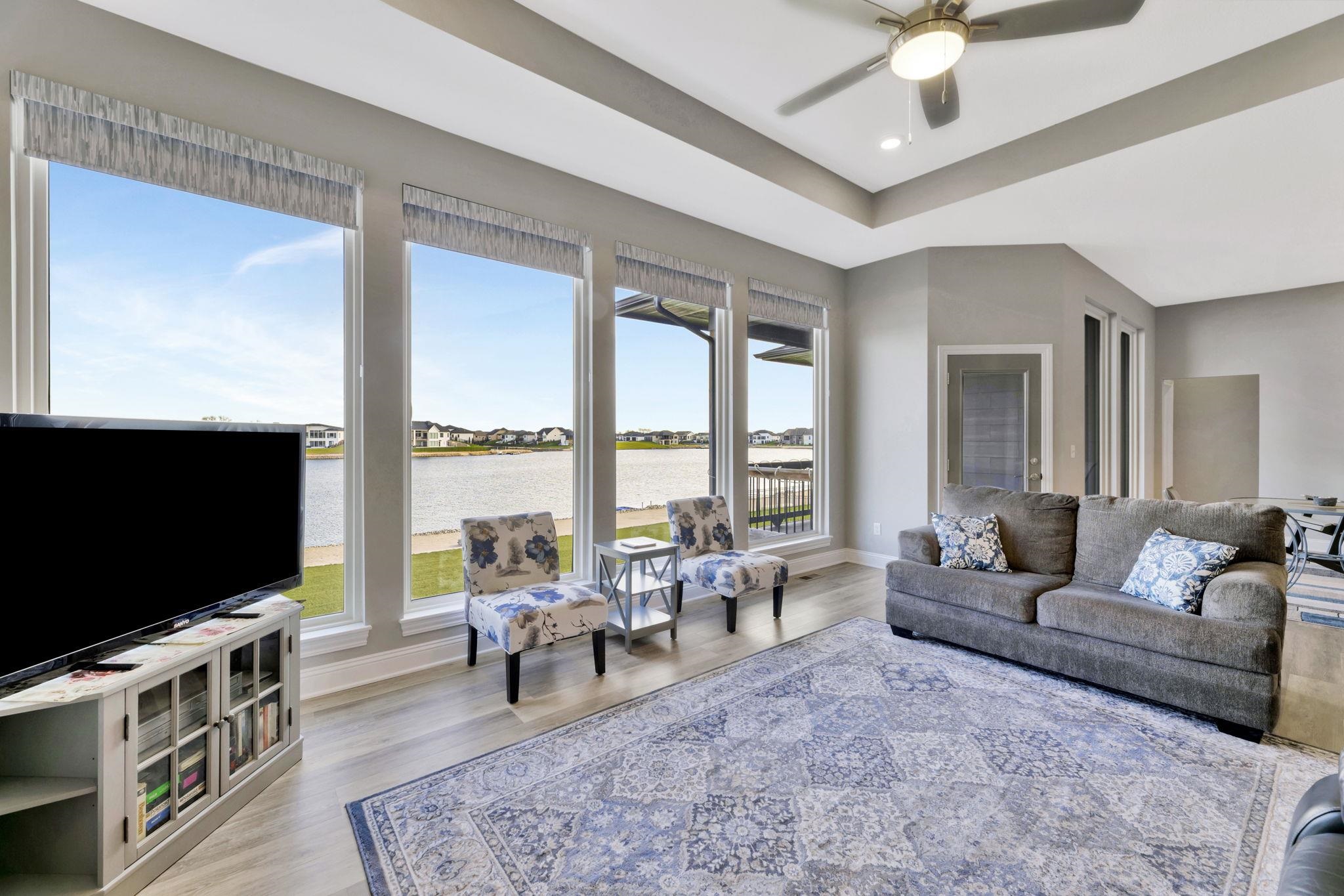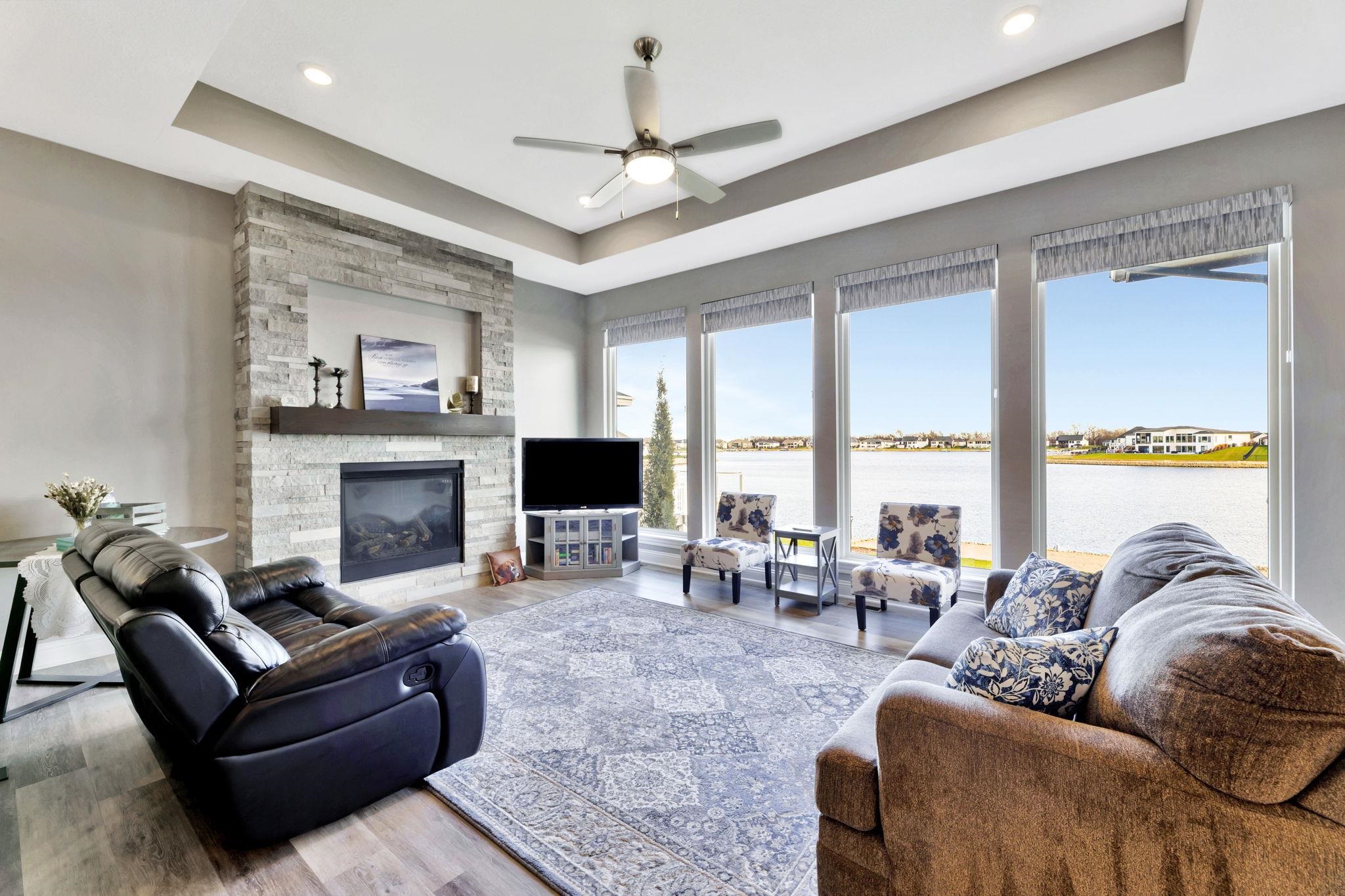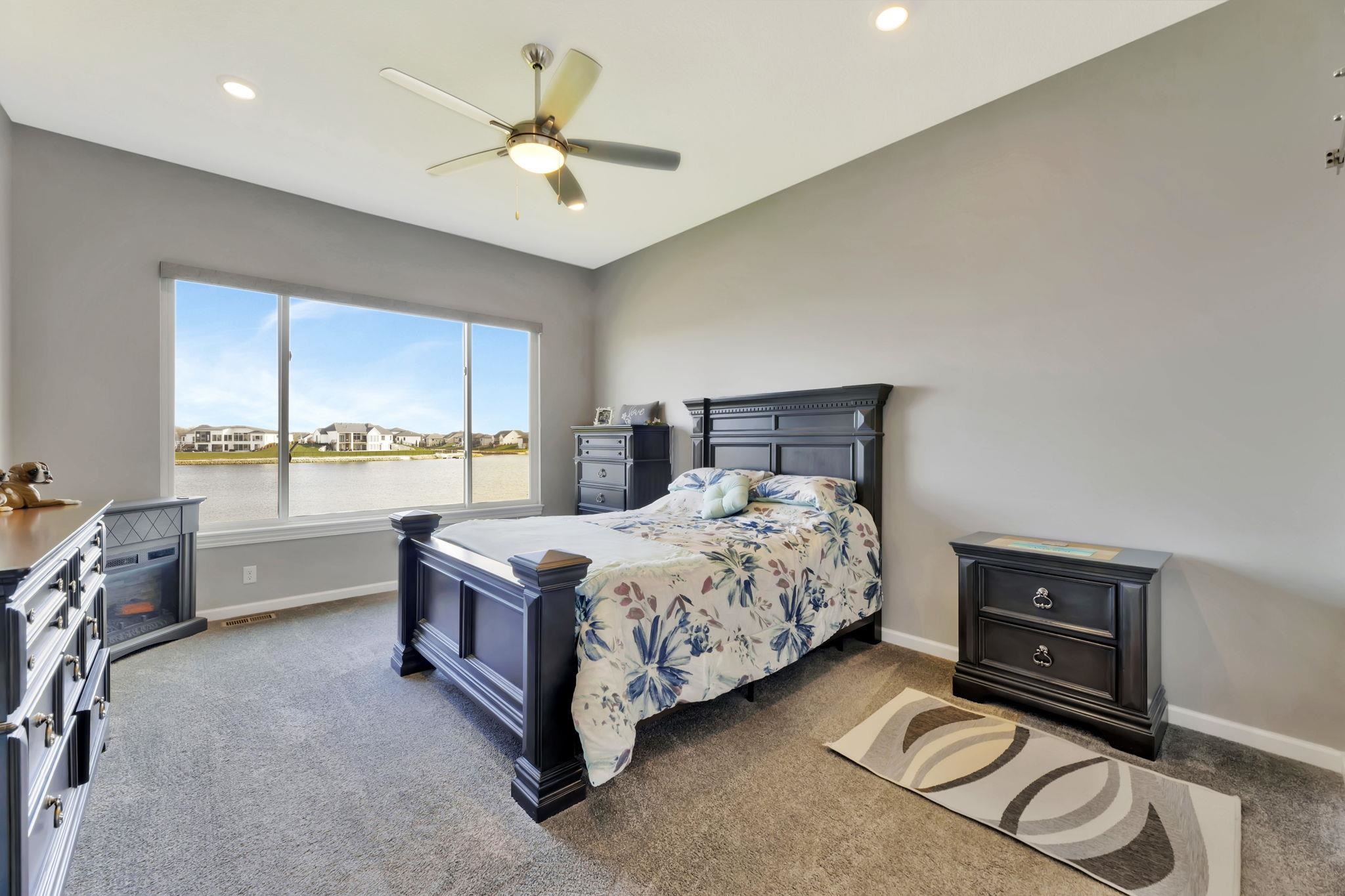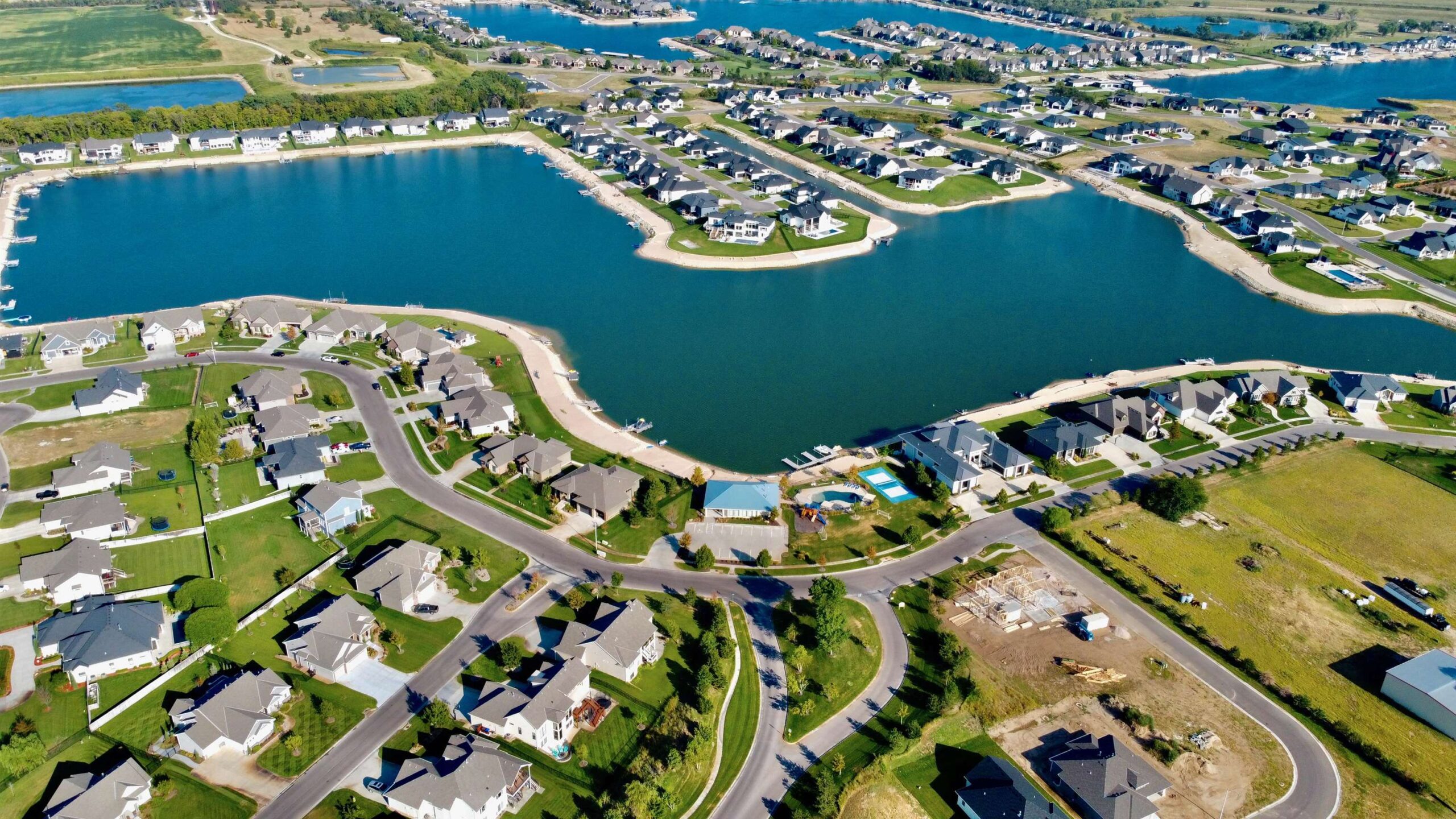 - Description: Experience luxury lakeside living at its finest in this meticulously maintained home on an extraordinary lake lot in Sandcrest. Perfectly positioned just a short walk from the lakefront clubhouse, resort-style pool, playground, soccer field, and pickleball court, this home blends incredible amenities with true modern elegance. A stunning mid-century modern elevation welcomes you inside, where the spacious living room features dramatic picture windows showcasing panoramic lake views and a gorgeous stone-surround gas fireplace. The rear-facing kitchen is a chef’s delight, offering granite countertops, abundant cabinetry, and a generous walk-in pantry. The adjoining dining room—also framed by expansive windows—opens directly to the covered deck, delivering some of the best vantage points in the neighborhood. Retreat to the luxurious master suite with a spacious bedroom, spa-inspired bath featuring dual granite-topped vanities and a full tile shower, and an impressive walk-in closet with direct access to the laundry room. A second main-floor bedroom, full hall bath, and a convenient front office complete the main level. The fully finished walk-out lower level continues to impress with a large family room highlighted by LVP flooring, a walk-out to the covered patio, and a stylish pub-style wet bar—ideal for entertaining. Three additional bedrooms and a full bath offer plenty of space for family and guests. Outside, the expansive backyard is your own private lakeside sanctuary. Enjoy a large beach area, included jet-ski dock, and ample room for a future pool. You can even add your own private boat dock along your beach frontage. Don’t miss this rare opportunity to own one of the prime lots in Sandcrest—one of Wichita’s premier lakeside communities and located within the Maize South school district. This home is the perfect blend of luxury, lifestyle, and breathtaking views. Come see it today! Some information may be estimated and is not guarnteed. Please verify schools with USD 266. Show all description