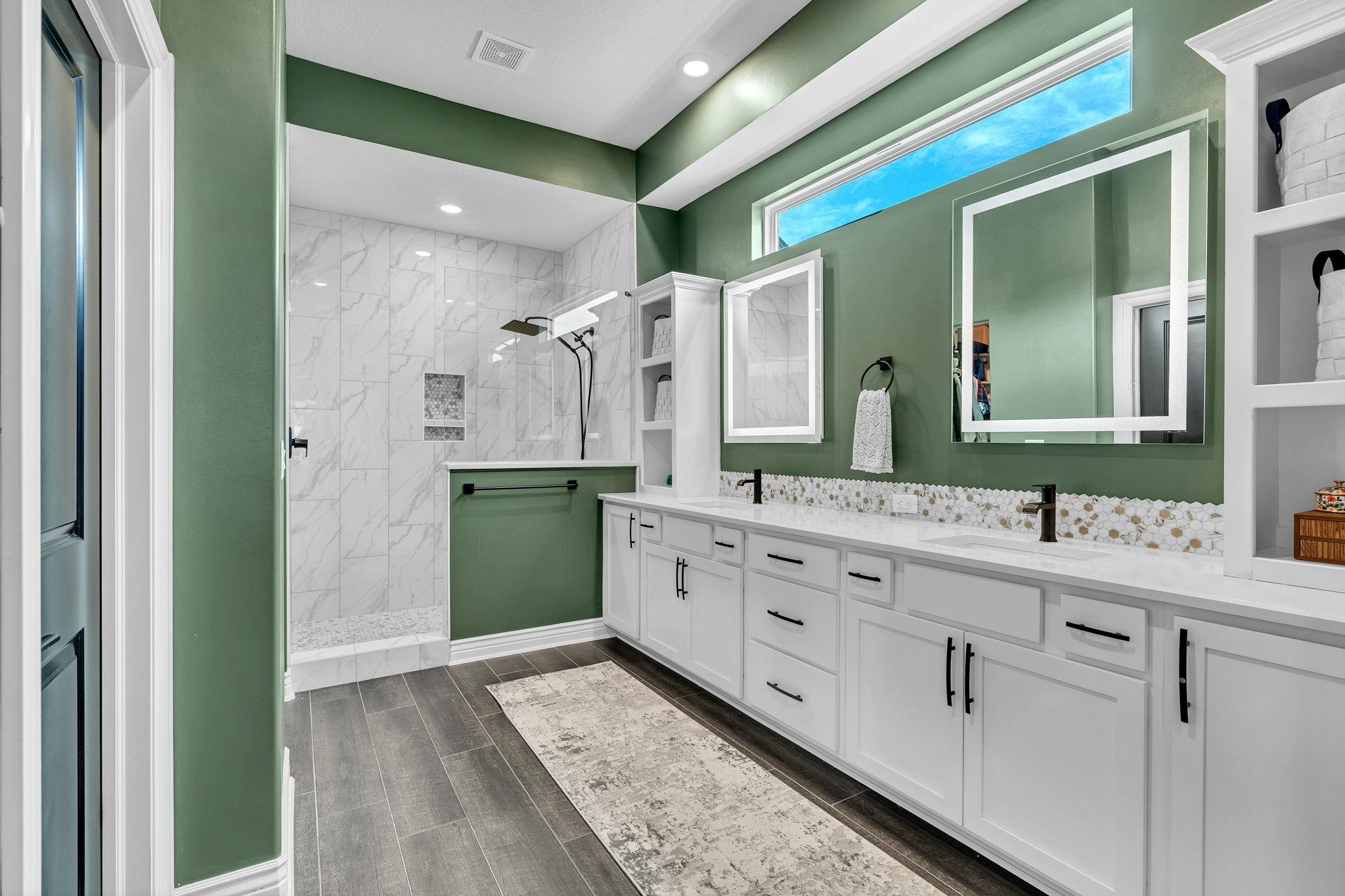 - Master Bedroom: Master Bdrm on Main Level, Split Bedroom Plan, Master Bedroom Bath, Shower/Master Bedroom, Two Sinks, Granite Counters, Water Closet
