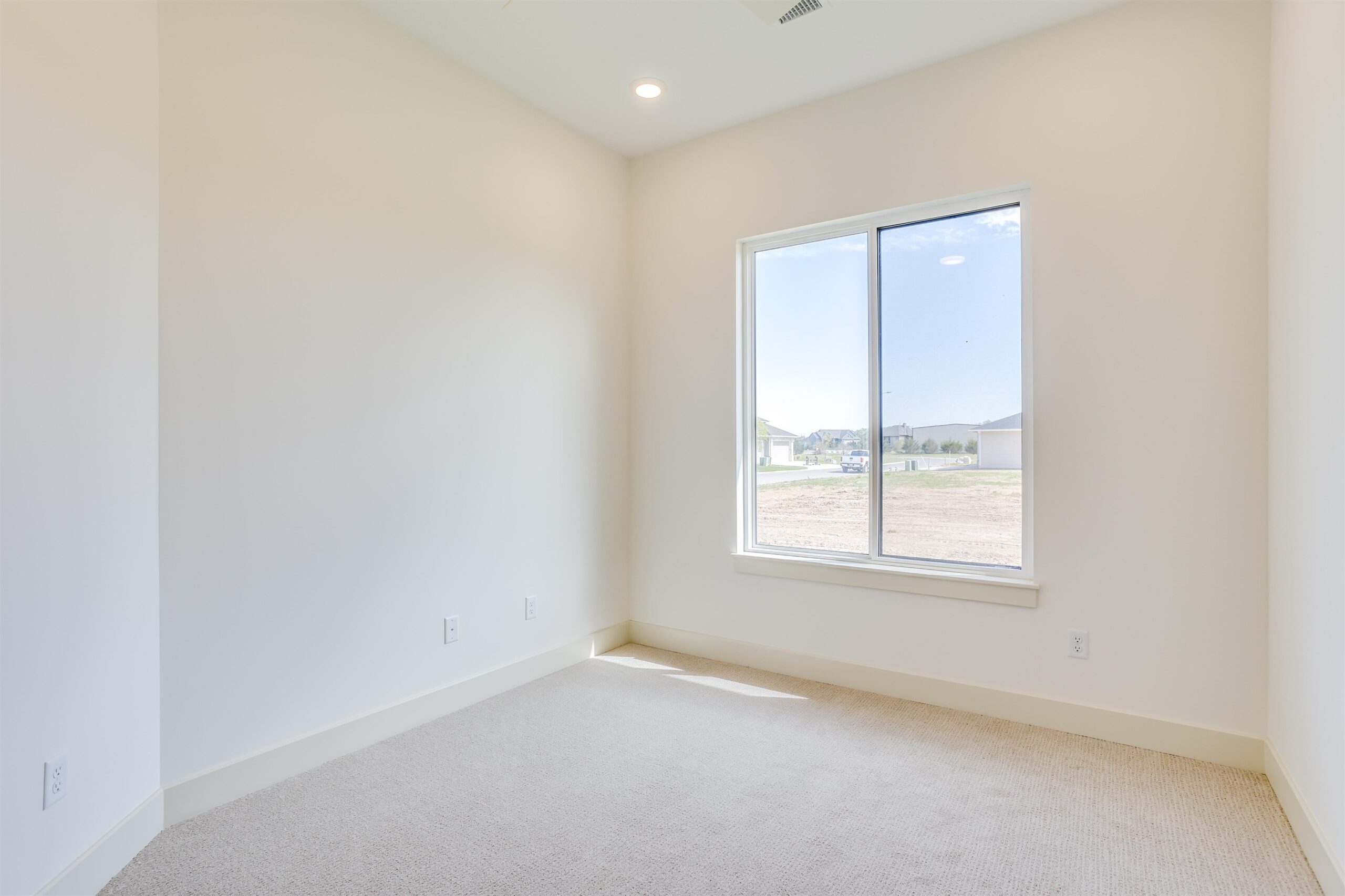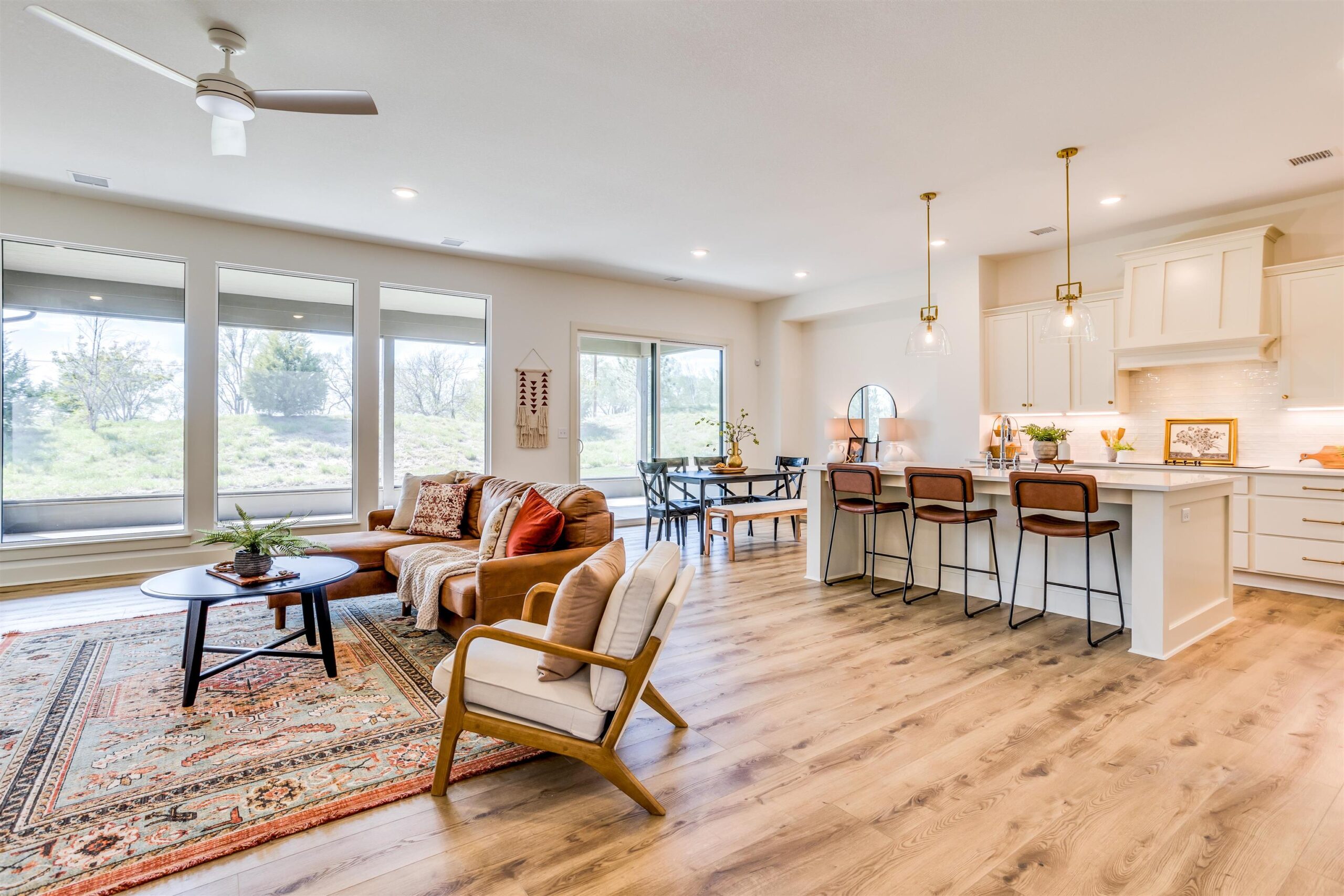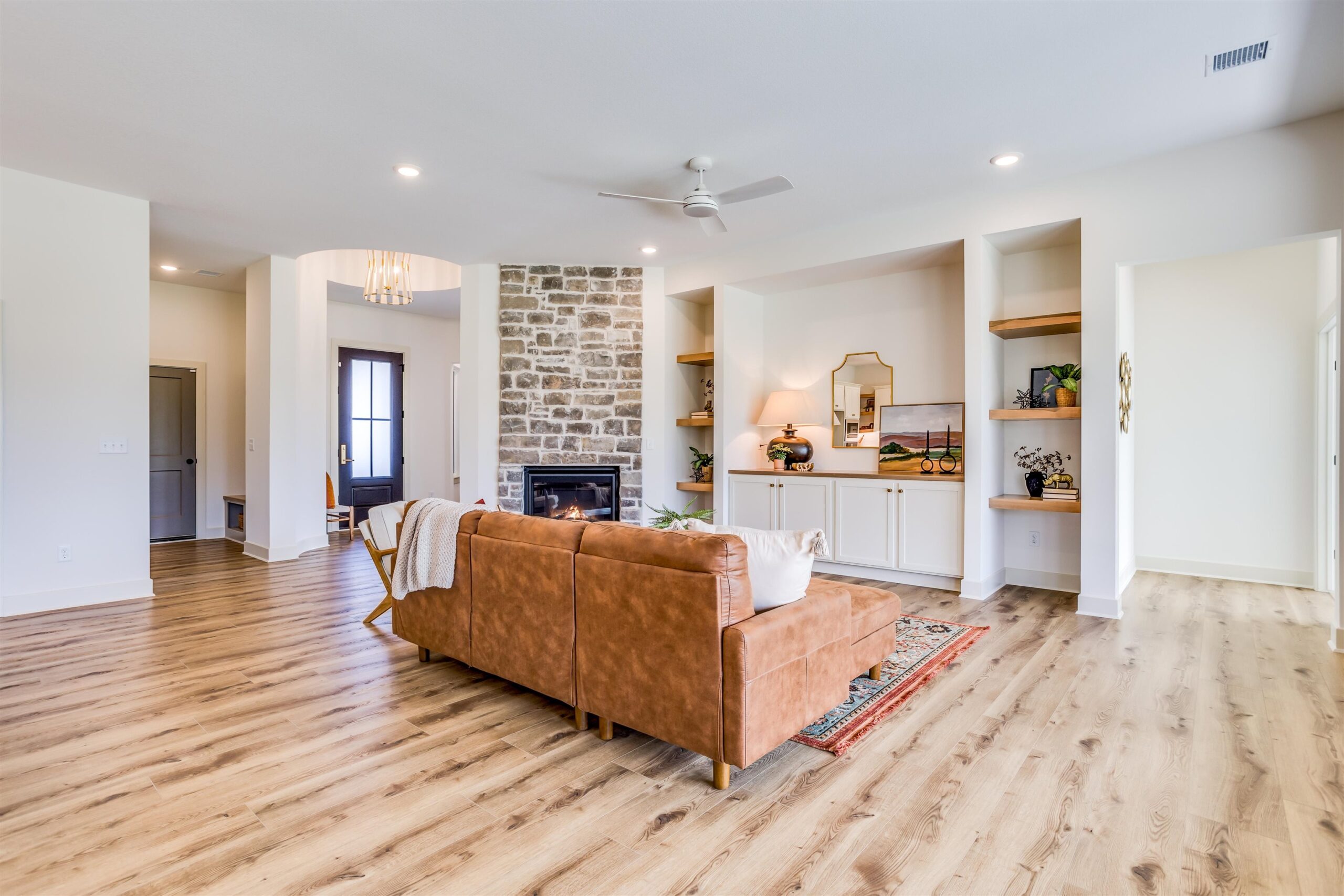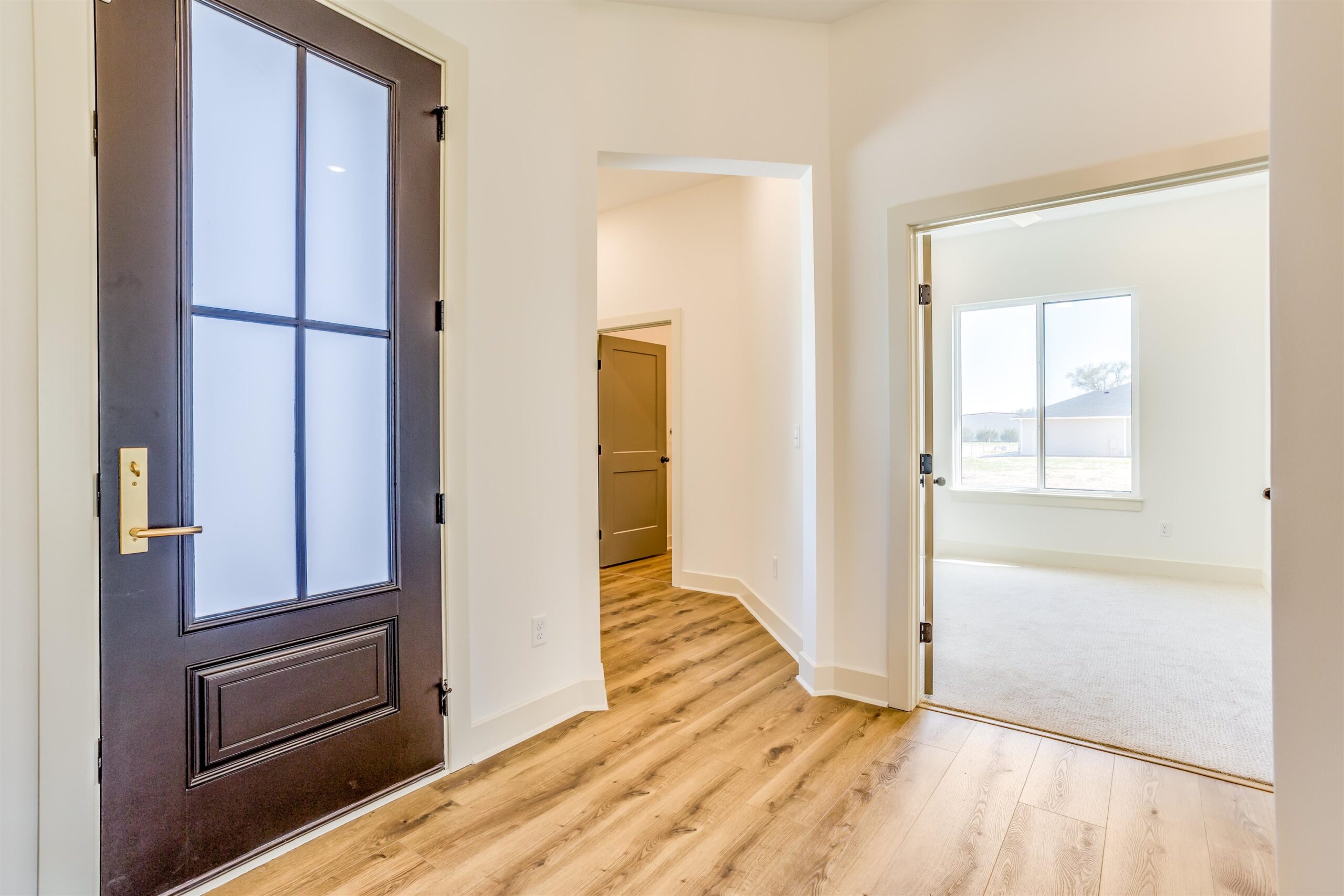 - Description: New zero entry home by Robl Building Co. You enter this home with a large covered porch, entry foyer with curved walls to the great room. The great room features a stone fireplace, built-in cabinets, luxury vinyl flooring and large windows overlooking the screened porch. This plan is open to the kitchen and dining. The kitchen features a center island, walk-in pantry, abundant counter space and cabinets. The primary bedroom has a decorative wood paneled wall, and the bath has a custom tile shower, water closet, large walk-in closet, and double vanities. The primary bedroom connects to the laundry room as does the other bedroom and office. Price includes a concrete safe room, large oversized three car garage, water well, sprinkler, lawn and landscaping. Don't miss out on this beautiful home. MOVE IN READY! Information deemed reliable but not guaranteed and may be changed without prior notice. Taxes estimated. Show all description