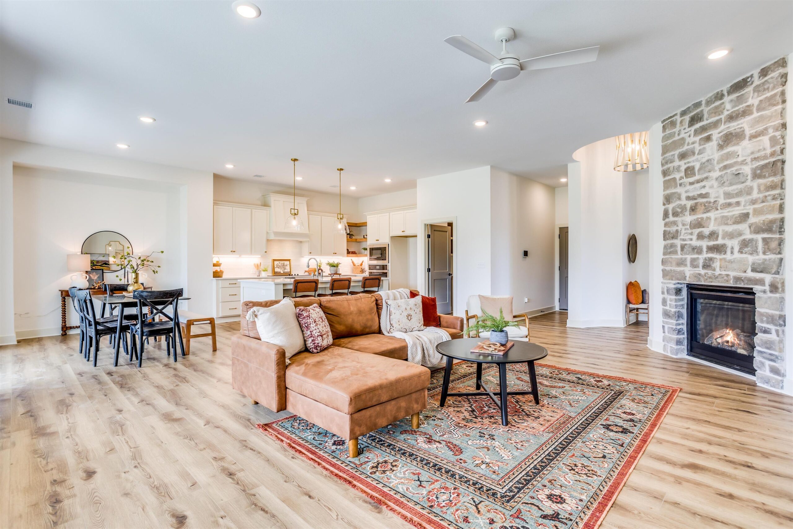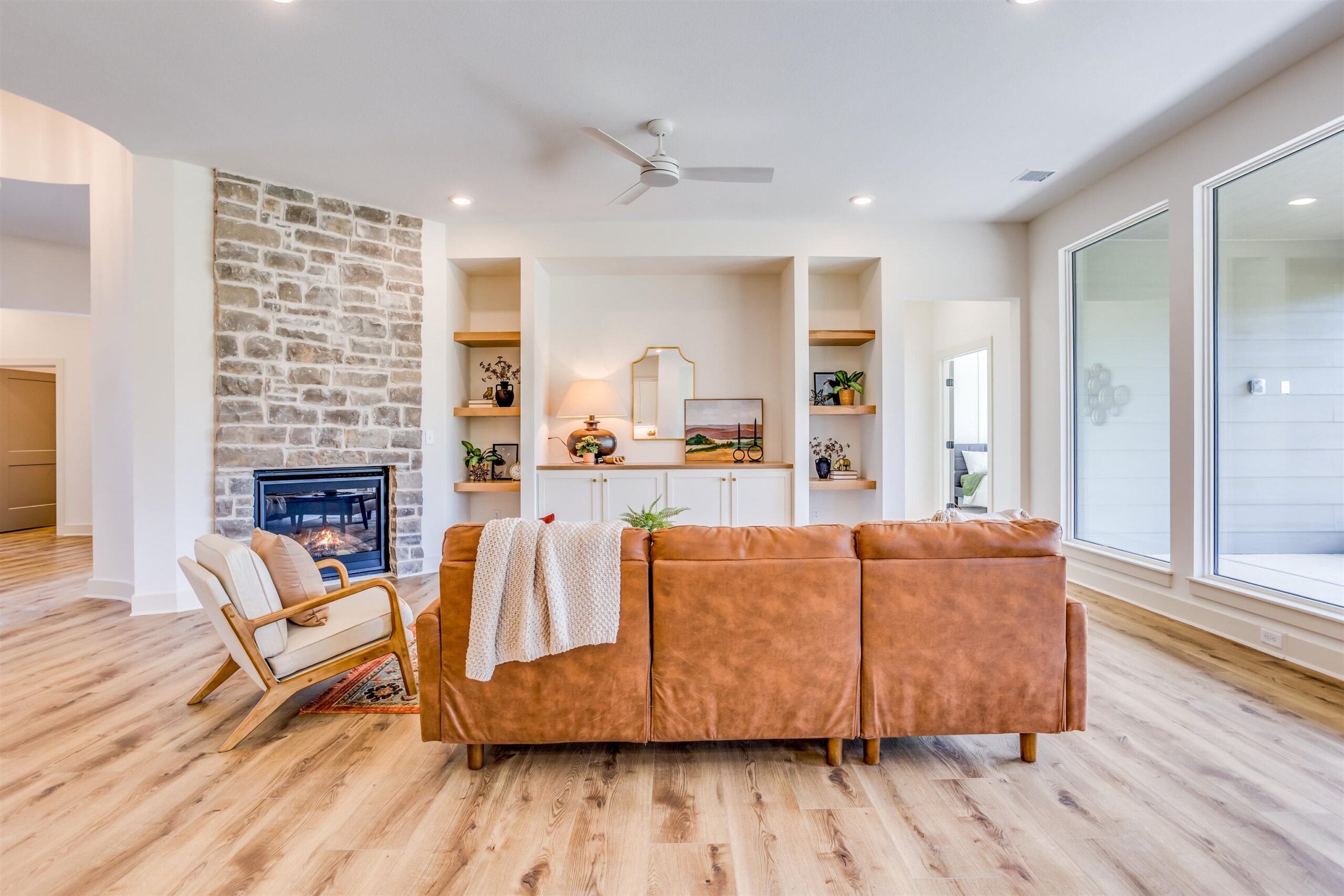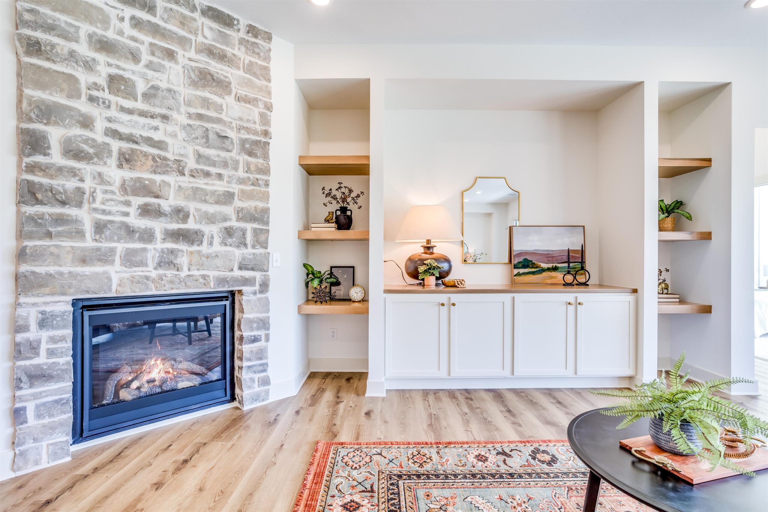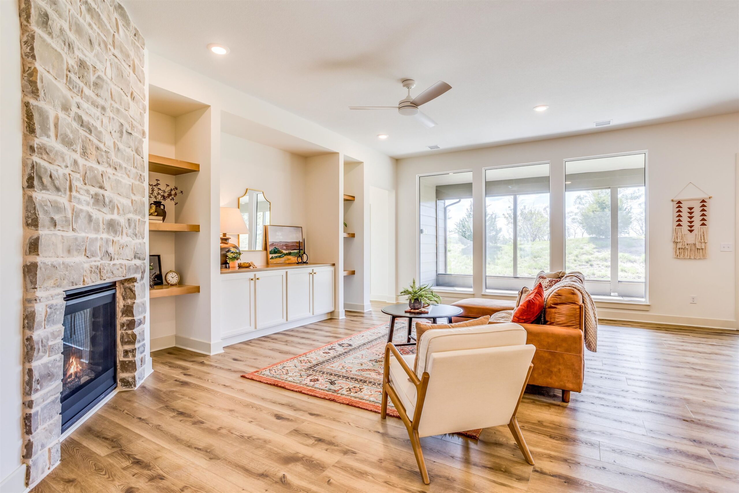 - Description: New zero entry home by Robl Building Co. You enter this home with a large covered porch, entry foyer with curved walls to the great room. The great room features a stone fireplace, built-in cabinets, luxury vinyl flooring and large windows overlooking the screened porch. This plan is open to the kitchen and dining. The kitchen features a center island, walk-in pantry, abundant counter space and cabinets. The primary bedroom has a decorative wood paneled wall, and the bath has a custom tile shower, water closet, large walk-in closet, and double vanities. The primary bedroom connects to the laundry room as does the other bedroom and office. Price includes a concrete safe room, large oversized three car garage, water well, sprinkler, lawn and landscaping. Don't miss out on this beautiful home. MOVE IN READY! Information deemed reliable but not guaranteed and may be changed without prior notice. Taxes estimated. Show all description