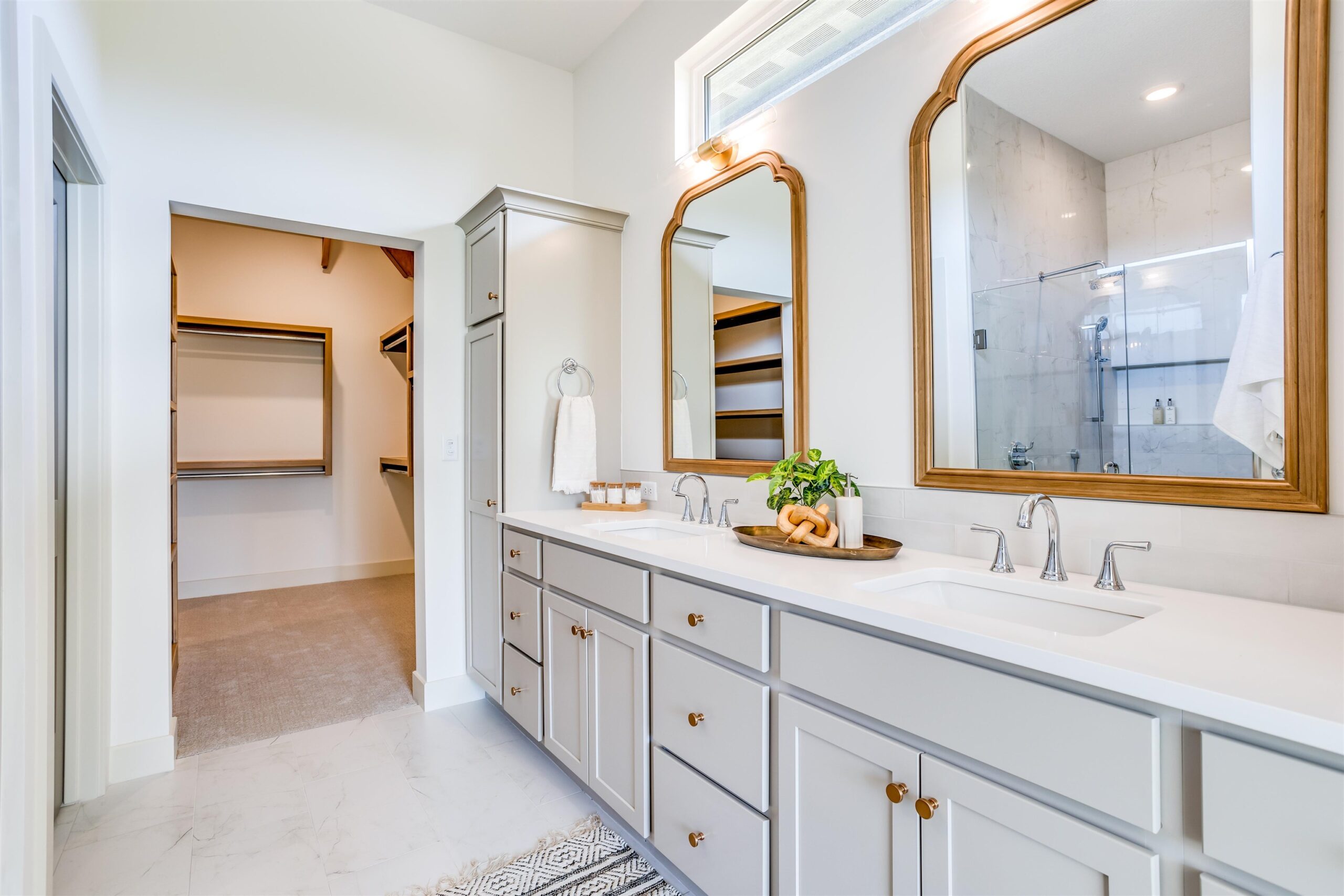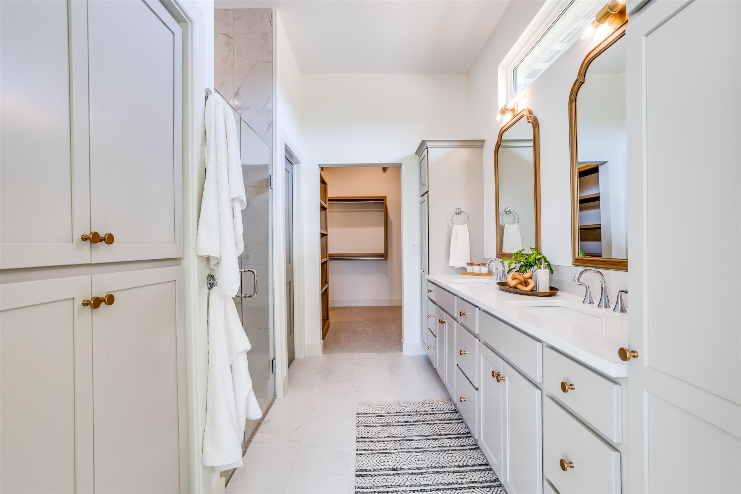 - Master Bedroom: Master Bdrm on Main Level, Split Bedroom Plan, Master Bedroom Bath, Shower/Master Bedroom, Two Sinks, Quartz Counters, Water Closet
