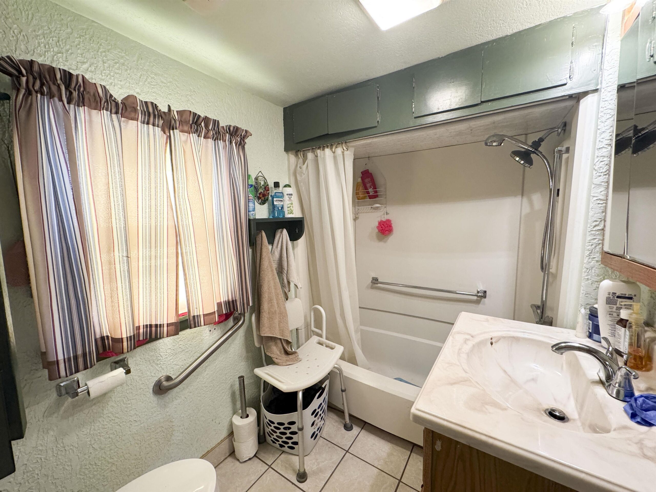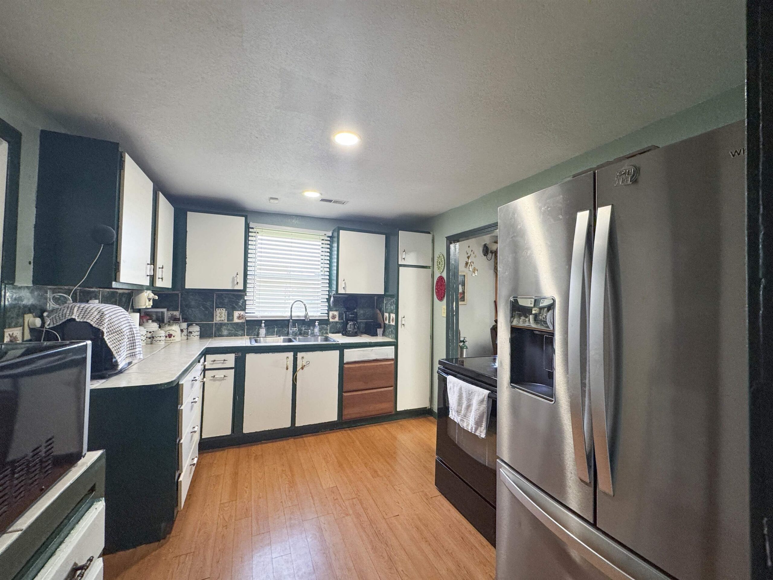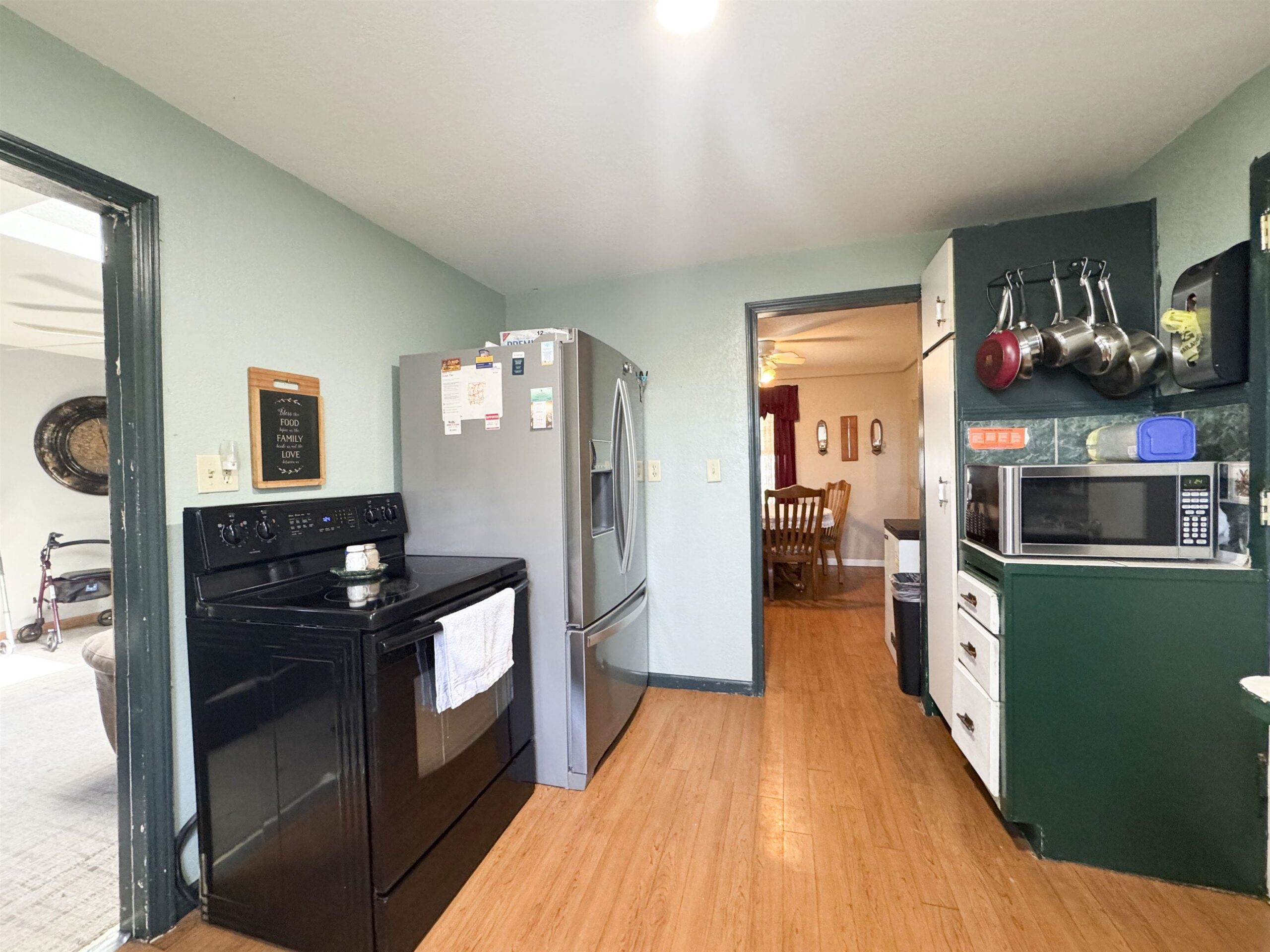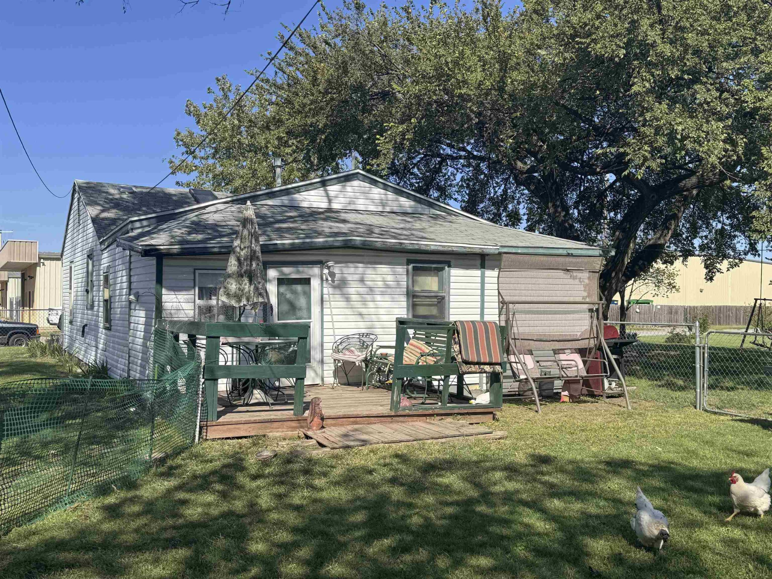 - Description: Charming 2-bedroom, 1.5-bath home with all living space on the main floor. The half bath also includes the laundry area for added convenience. Features a large living room, separate dining area, small entry area perfect for plants or small office. Kitchen includes a refrigerator, stove/oven, and garbage disposal. Vinyl siding for easy maintenance. Situated on a large lot with three parcels being sold together, offering plenty of room to park an RV, build a large garage, or add more structures. Includes a storm shelter for peace of mind and lots of potential to make it your own! *** All information deemed reliable but not guaranteed. Buyer agent to verify schools, taxes, measurements, and specials. *** Show all description