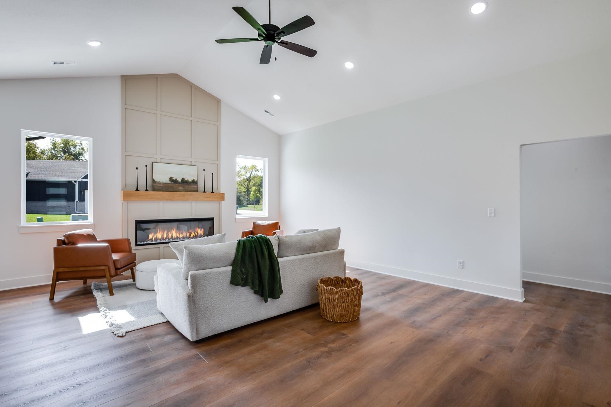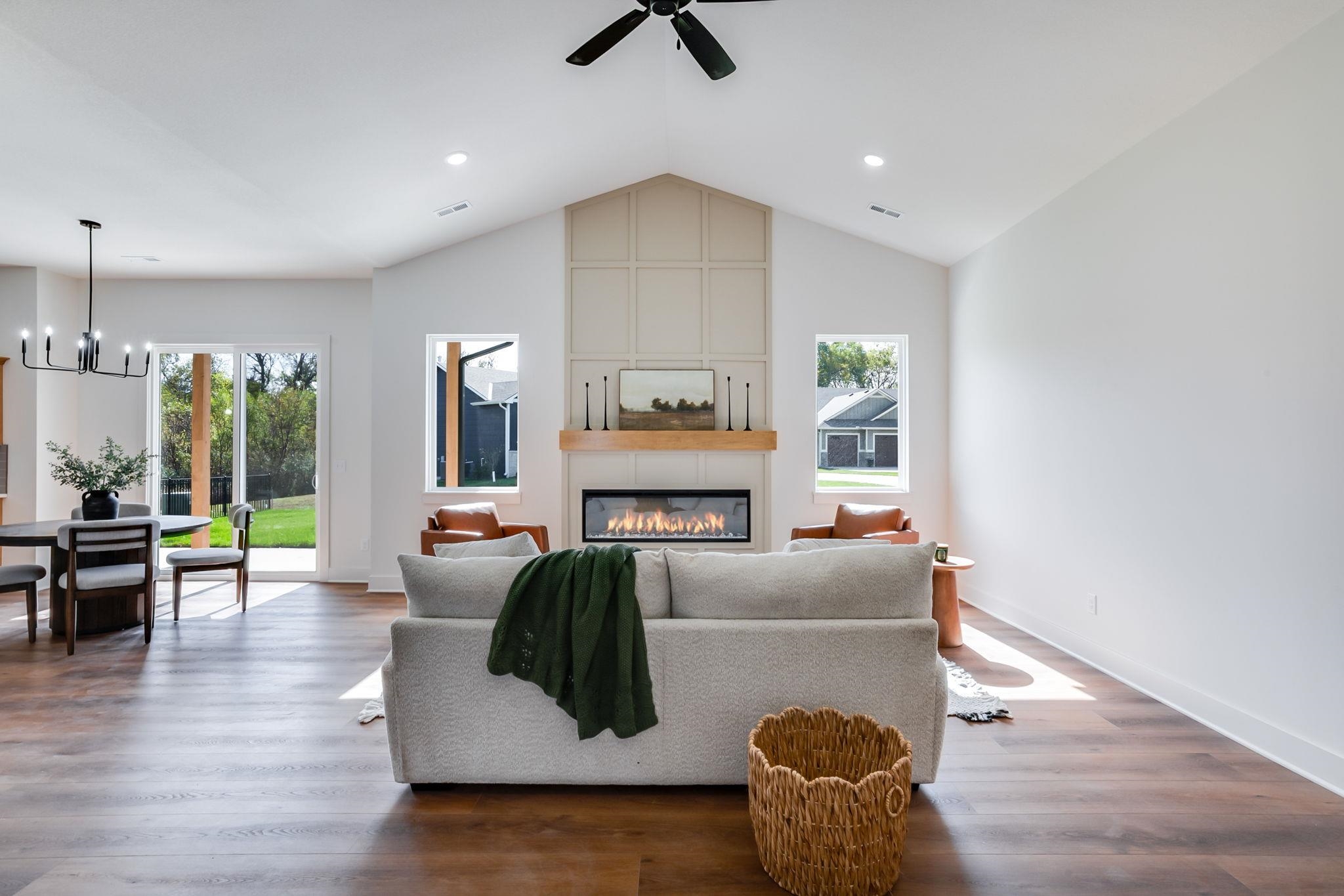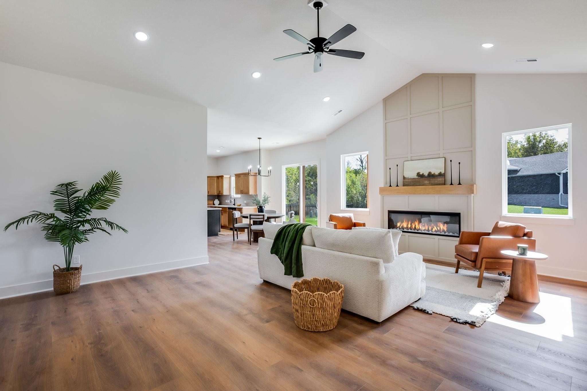 - Description: The Rowan floor plan is a great no step entry design located on a corner lot. this home offers 3 bedrooms, 2 baths, open great room/dining/kitchen area. There is also a decorative electric fireplace in the great room. The home has a U=shaped kitchen with center island, perfect for entertaining, large walk in pantry and covered patio. The Master suite includes double vanities, tiled shower and walk in closet. Perfect for the person that is tired of stairs with easy access to the entry, covered patio, garage etc. This home is under construction so subject to price change as the builder determines his finishes or if you have interest you might be able to make a few of the selections as well. Show all description