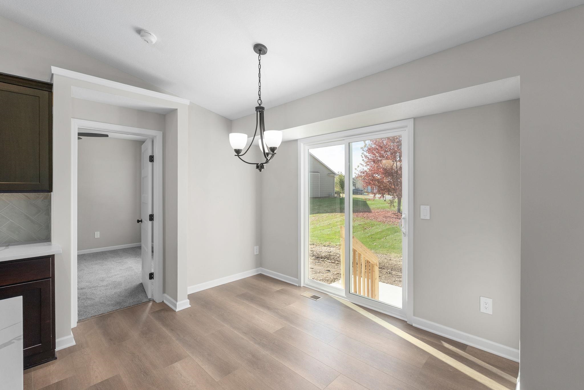 - Description: NEW HOME WITH NO SPECIAL TAXES! 5 Bedrooms, 3 Baths (Justin 1261 Floorplan) with Luxury Vinyl Plank Flooring, Quartz Countertops, Stainless Steel Appliances, Large Eating Bar, Walk-in Pantry, and Main Floor Laundry. Master Bedroom with Boxed Ceiling, Private Bath, Double Sinks and Walk-in Closet with access to Laundry Room. Full Daylight Basement with Finished 3rd Full Bath, Finished 4th & 5th Bedrooms, and Ready to Sheet Rock Family Room. Sprinkler, Sod & Fence to be installed prior to closing. All information deemed reliable but not guaranteed. General Taxes and Room Dimensions are estimated. Show all description