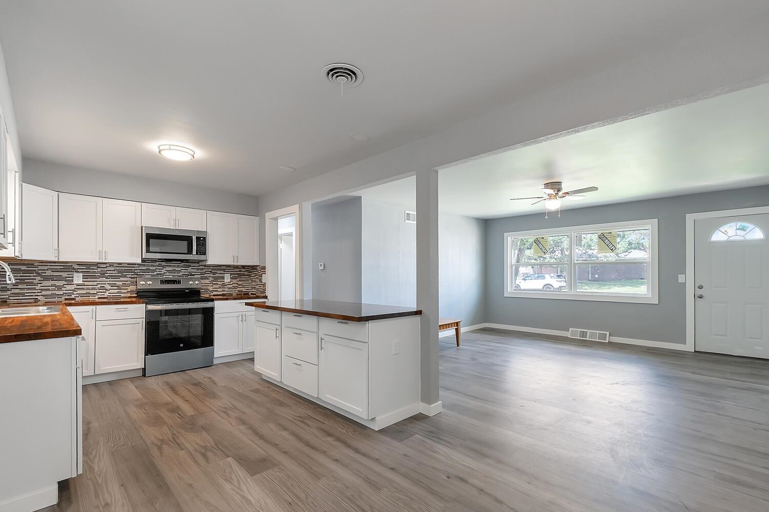 - Description: Fully Remodeled 4-Bedroom Home – Everything is Brand New! This beautifully updated 4-bedroom, 1-bathroom home has been completely remodeled from top to bottom and is ready for its new owner. Located just minutes from Wichita State University and close to Brooks Middle School, it’s a perfect fit for a college student, first-time homebuyer, or a great rental investment. Nearly every inch of this home is new, including the roof, siding, windows, flooring, air conditioner, kitchen cabinets, countertops, and open shelving. The bathroom has been fully renovated with a tiled shower, brand-new bathtub, updated vanity, and fixtures. Natural light pours in through the new windows, highlighting the home’s clean, modern finishes. Due to the full remodel, the home is being sold as-is. This move-in-ready property offers incredible value and low-maintenance living. Don’t miss out! Show all description