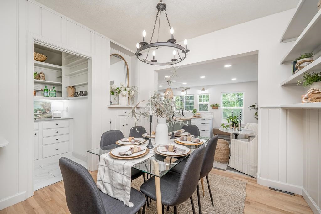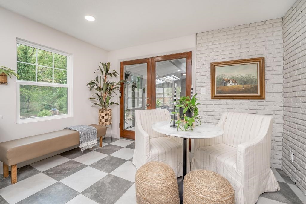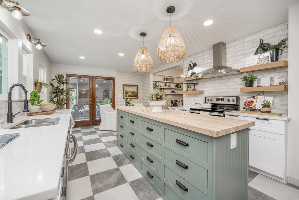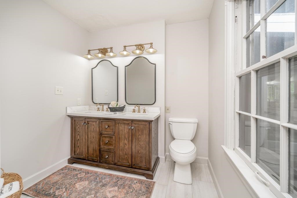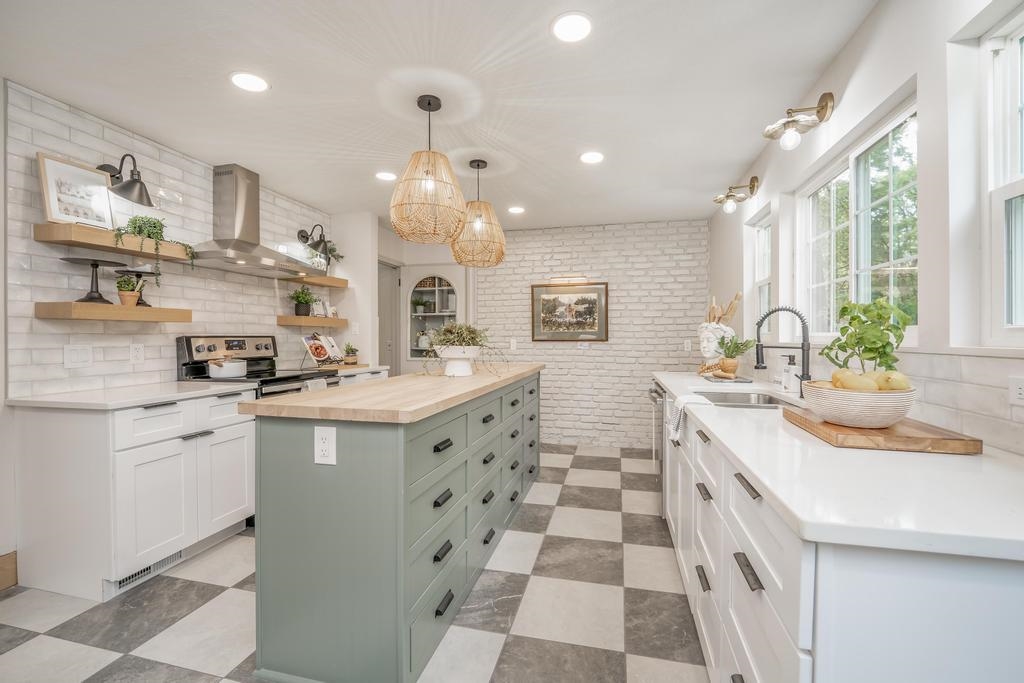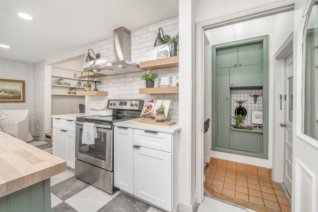 - Description: "Charming" describes this home to a t. I could stop there but the Seller would feel cheated considering all the work they have done to make it so. Three bedroom, two bath home on a .69 acre river-front lot has been completely renovated, giving this home an updated look while keeping enough original elements to retain it's 1930's charm. The exterior has been painted the most unique blue-green color, accented with white trim. The photos don't give the color the justice it deserves. The interior has also been completely repainted with neutral walls and just barely there grey trim. The original hardwood floors have been expertly restored to a beautiful, almost natural color. The kitchen, well, the kitchen, you won't find one like this! All new shaker style cabinets with pull out trash can and spice rack, oversized checkerboard tile floors, an eight foot long work island with butcher block counter top and quartz on the perimeter cabinets, open shelving and an expansive view from the kitchen sink into the wooded backyard space. The breakfast area gives a wonderful place to start your day while enjoying the view. French doors open to the screened patio that also gives access to the adventure that awaits in the backyard. There is a wood burning fireplace in the living room and a cute as a button, butler's pantry off the dining room. The carpeted master bedroom is abundantly sized with a walk-in closet and an updated master bath with a two sink vanity, shower and tile floors. The master bedroom opens to the screened in deck with an old fashioned swing over-looking the backyard. The other two bedrooms are also good sized, one with carpet, the other with original hardwood floors. Both have nice sized closets. Don't miss the upstairs hideaway at the end of the hall that provides a quiet retreat or play space. Downstairs a 200 square foot finished area gives extra living space. There is also a large laundry area and an unfinished space for storage. The expansive yard is covered by a sprinkler system on a private well. Put this one on your must-see list. You won't be disappointed. Show all description