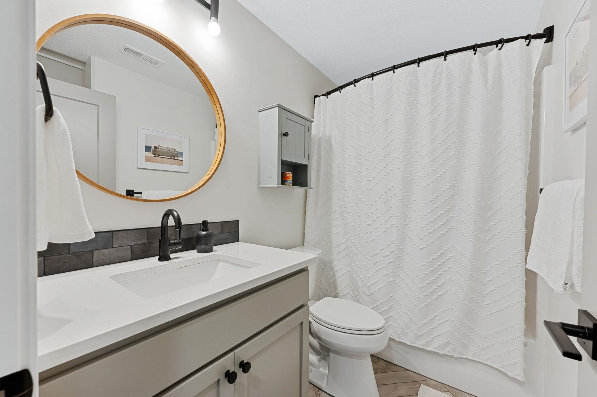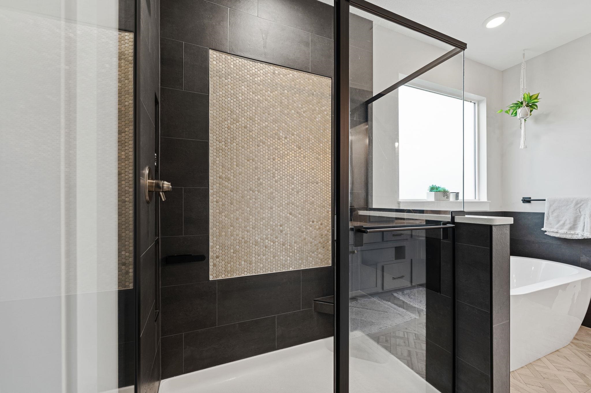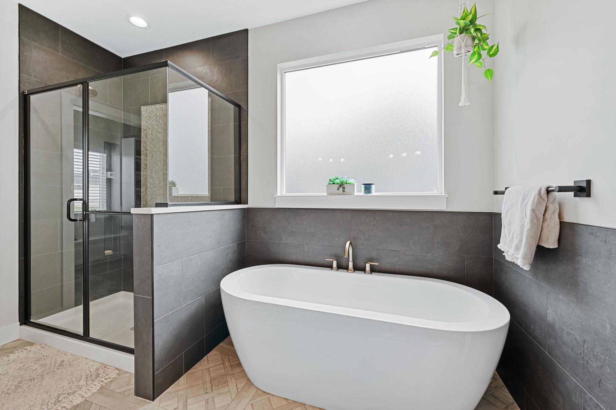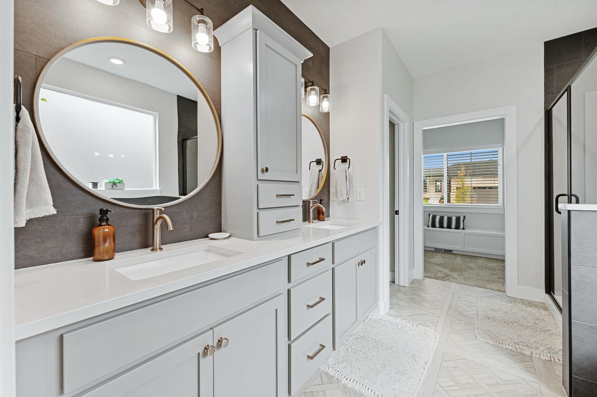 - Master Bedroom: Master Bdrm on Main Level, Split Bedroom Plan, Sep. Tub/Shower/Mstr Bdrm, Two Sinks, Quartz Counters