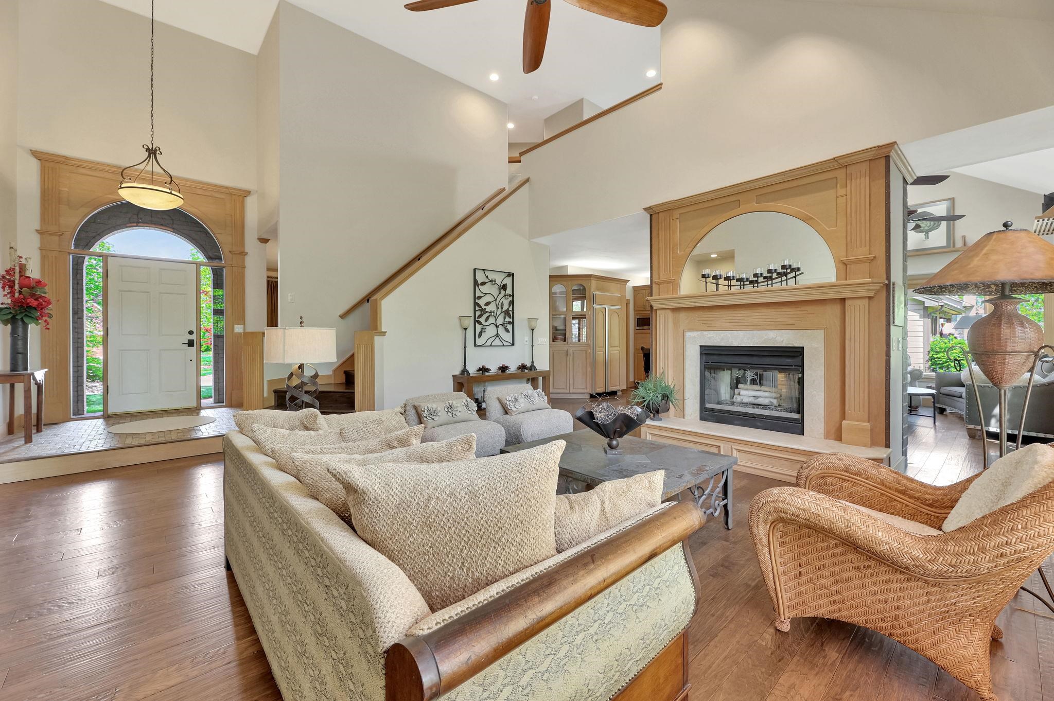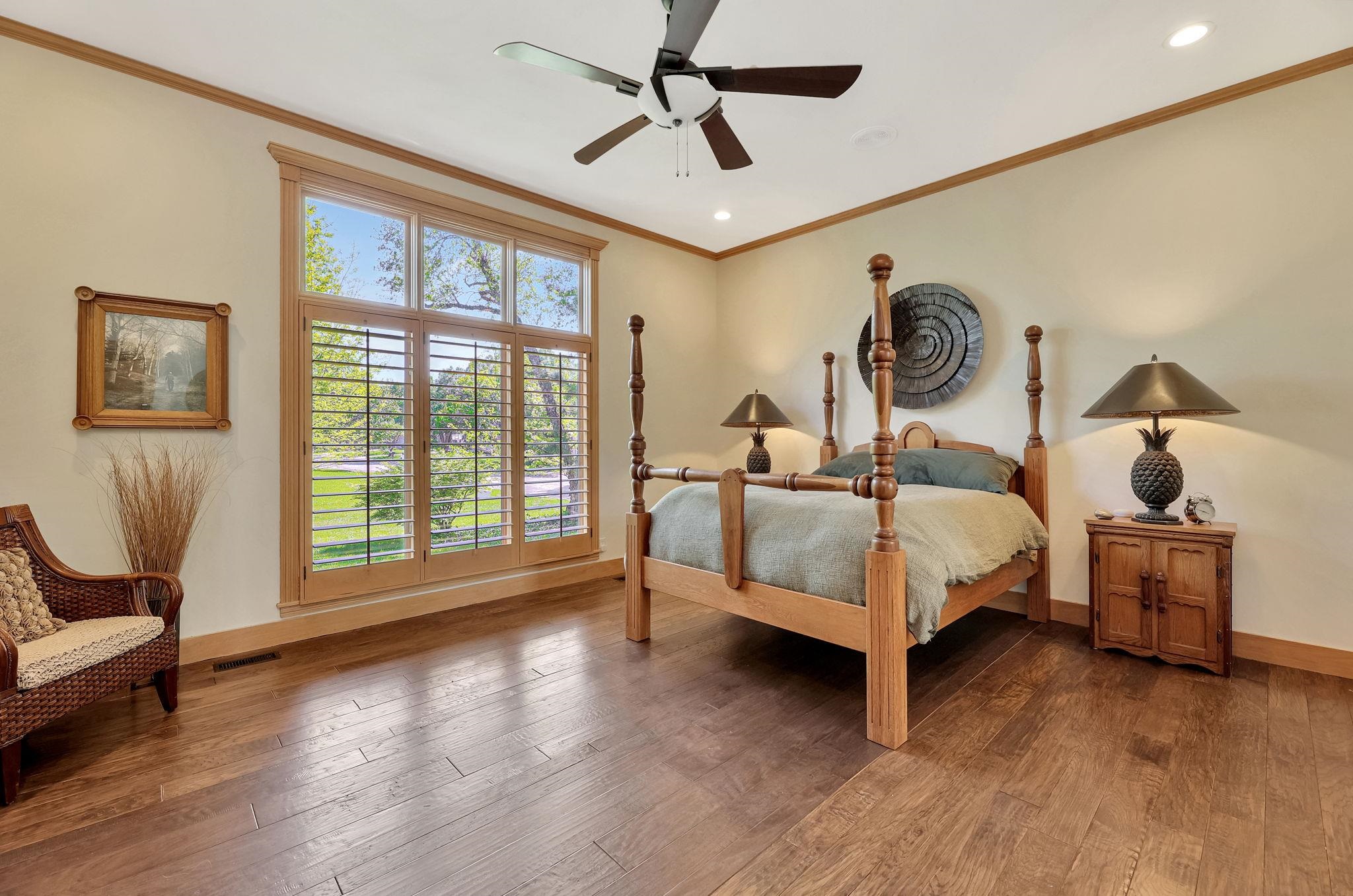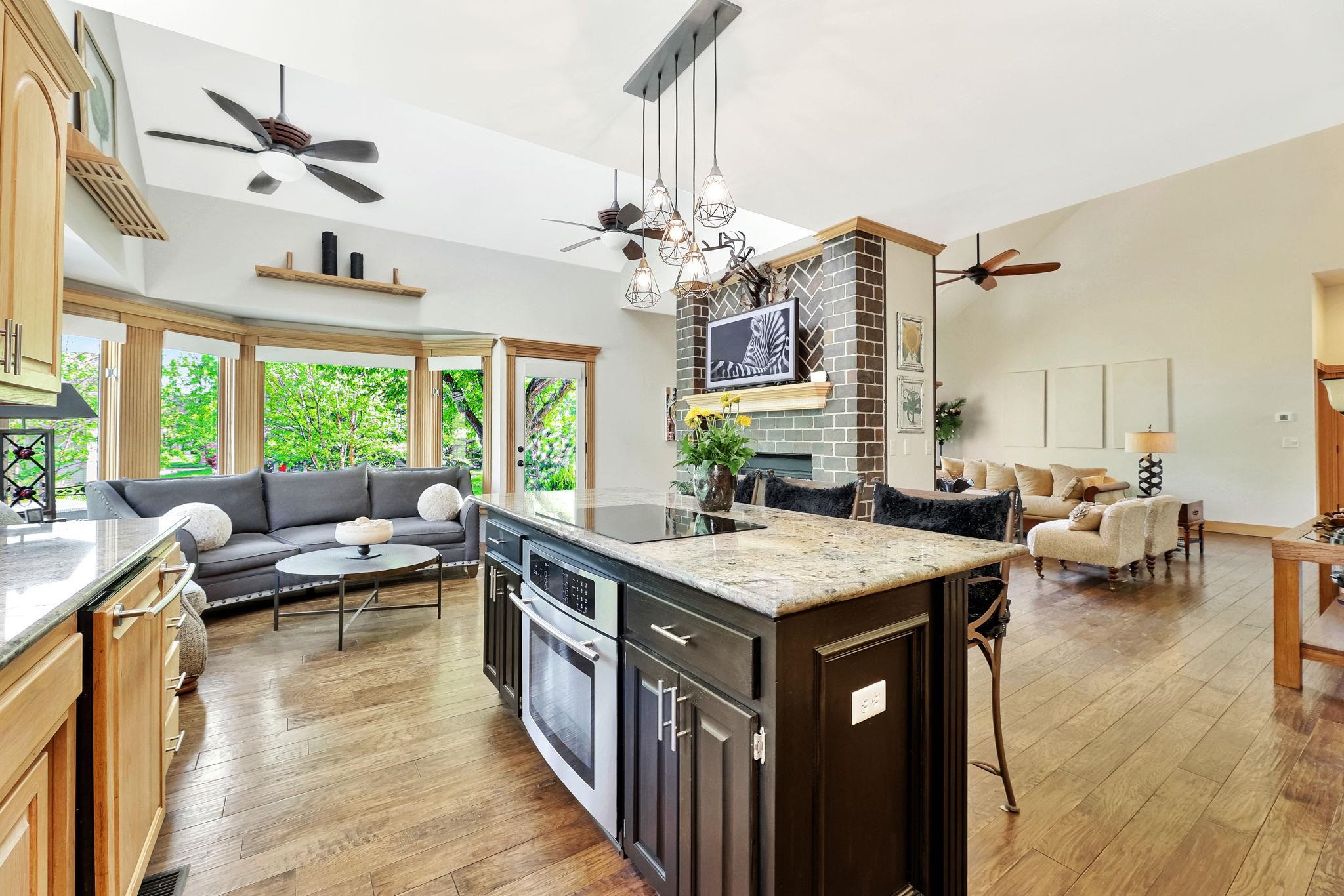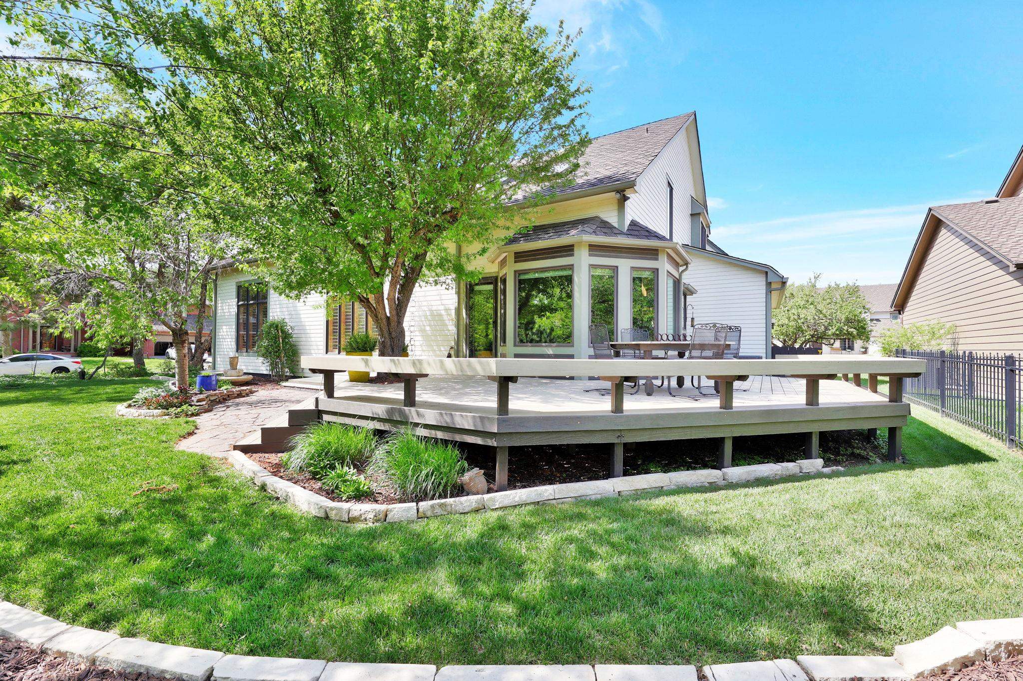 - Description: Welcome to this exquisite custom-built, one-owner home tucked on a quiet corner lot in the coveted Penstemon neighborhood. This immaculate 1-1/2 story home features a stunning white exterior, complemented by mature landscaping that adds charm and character to the property. Step inside to discover a pristine, move-in ready home with crisp white walls offering a blank canvas for any style. Exceptional millwork throughout the home showcases unmatched craftsmanship. The two-story living room boasts soaring 18' ceilings and is anchored by a striking two-way brick wood burning fireplace with a gas starter. The beautiful formal dining room is perfect for hosting dinner parties. Well-suited for any cook, the eat-in kitchen offers granite countertops, a center island/eating bar, panel-front appliances, an induction cooktop, a Subzero refrigerator, a Scotsman ice maker, and a convenient serving area that connects seamlessly to the formal dining room. The main floor primary suite provides a private retreat, featuring a spa-like bath with a luxurious walk-in tile shower framed by an elegant arched opening, a double vanity, a soaker tub, and two walk-in closets. Upstairs, you’ll find a cozy loft area, two additional bedrooms, and a full bath. The finished basement offers endless possibilities with a spacious family room, wet bar with a beverage cooler, a rec room ideal for hobbies or play, an exercise room, an additional bedroom, and a full bathroom. There is also plenty of storage to keep everything organized. Step outside to the beautifully landscaped yard, where a wrap-around composite deck with a built-in bench provides the perfect space to relax and entertain while surrounded by mature trees and greenery. The property is equipped with a sprinkler system for easy lawn maintenance. Additional features include an extra-wide garage, many windows replaced for energy efficiency, and an unbeatable location just minutes from shopping, dining, Central Christian Academy, and K-96 highway for easy commuting. This home is truly a rare find—stylish, impeccably maintained, and built with quality in mind. Don’t miss the opportunity to make it yours! Show all description