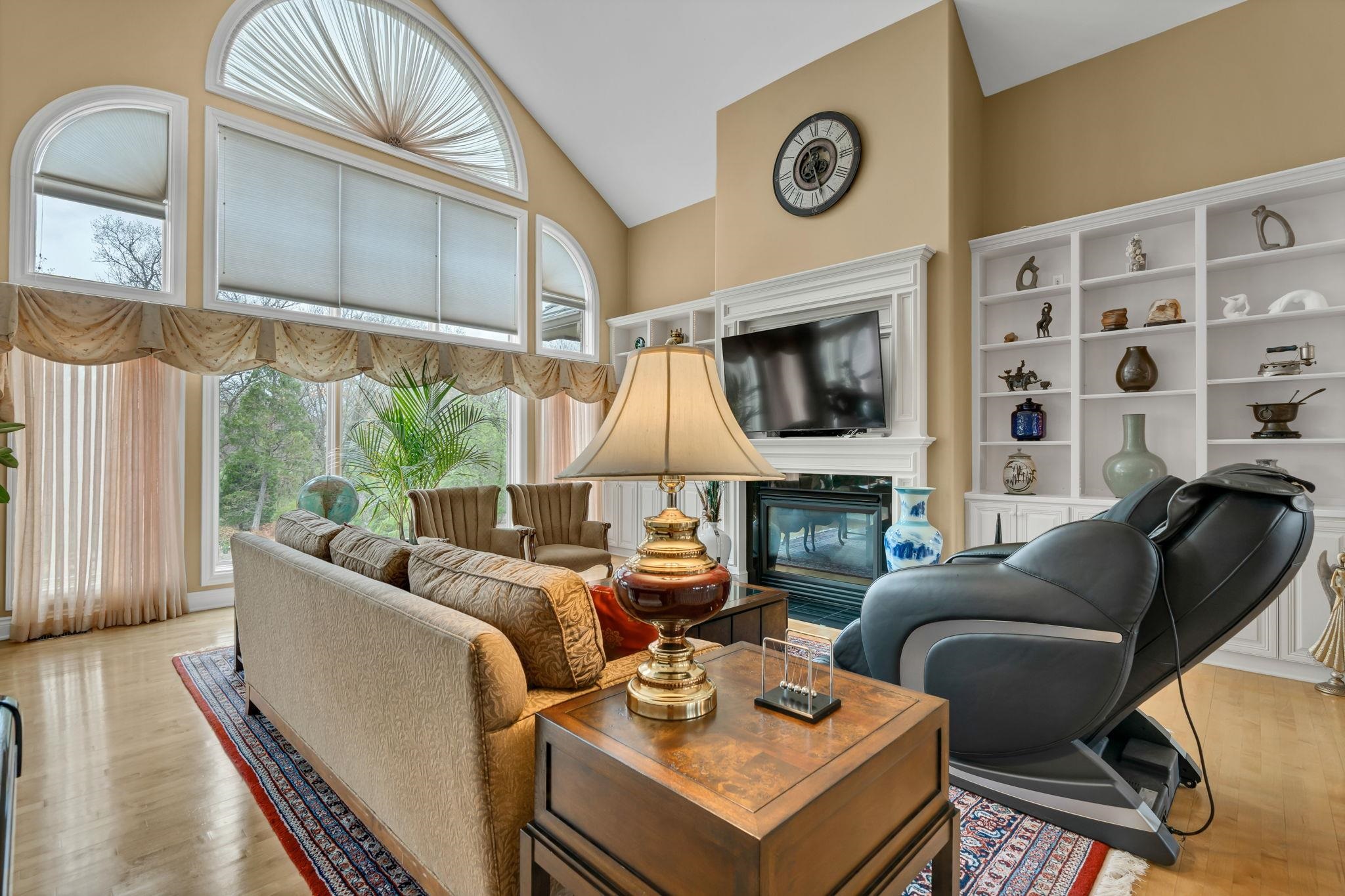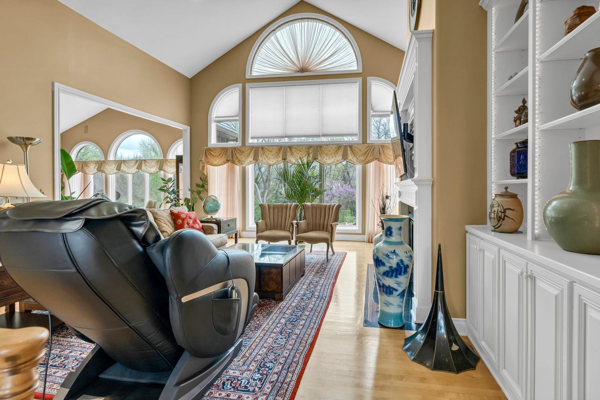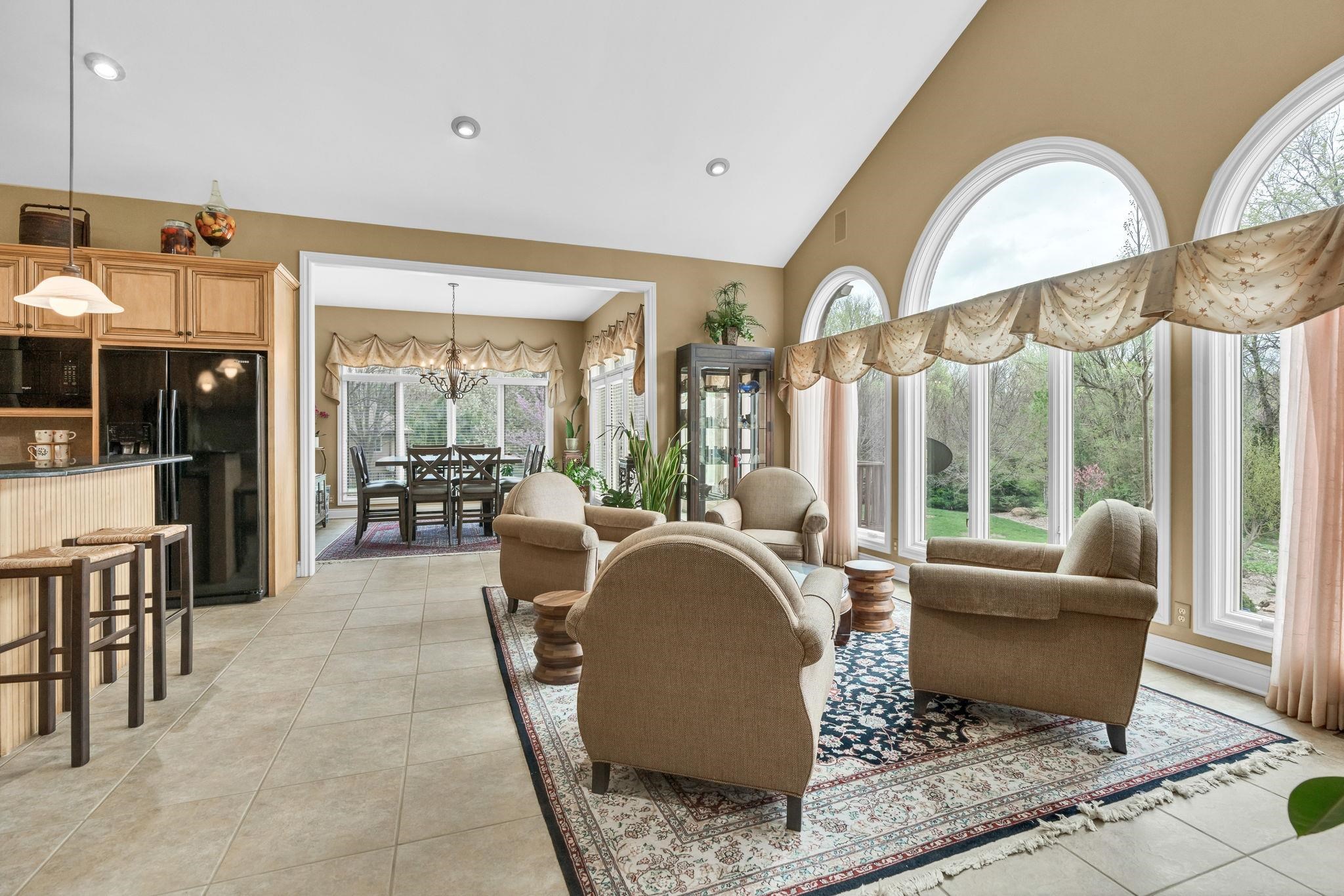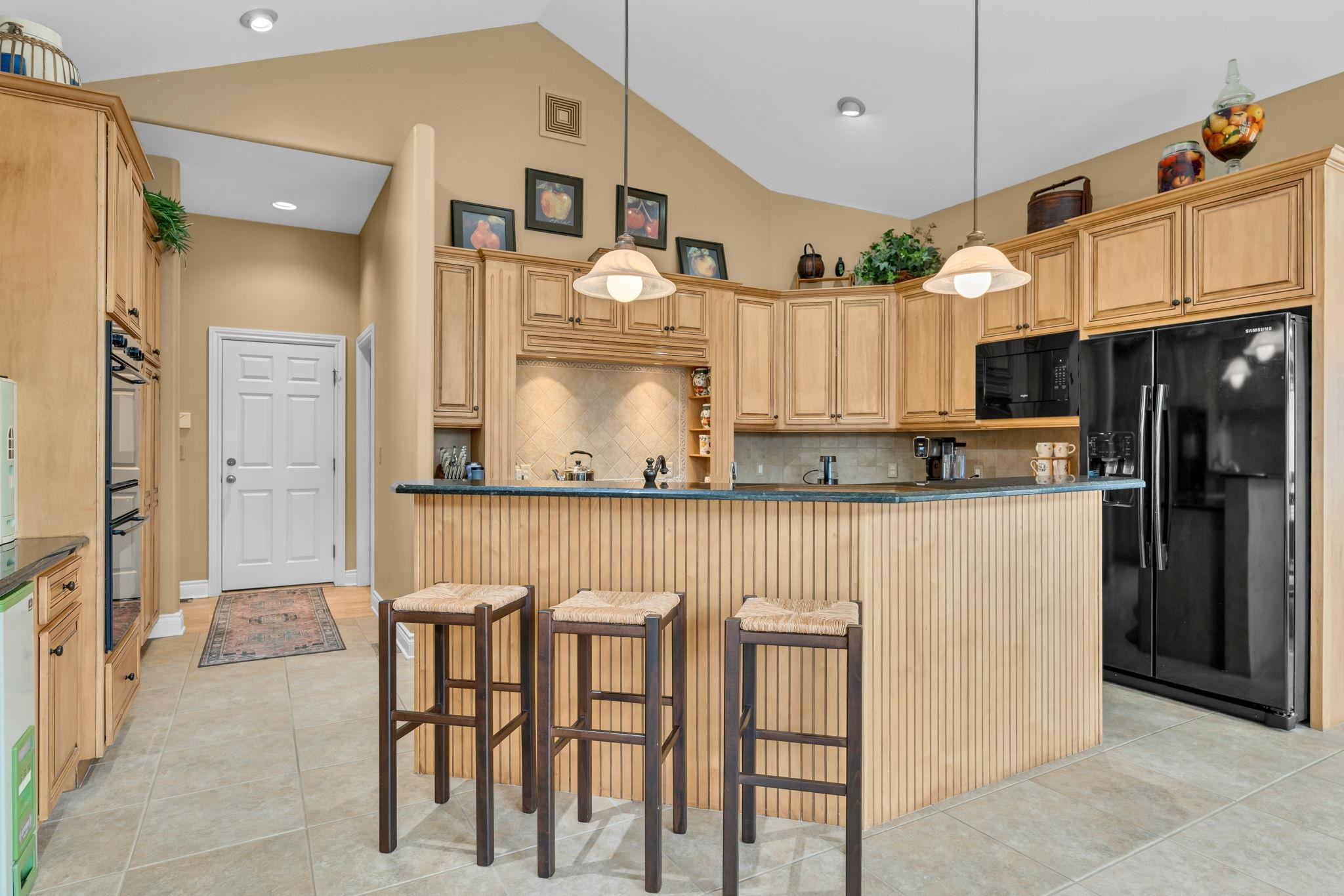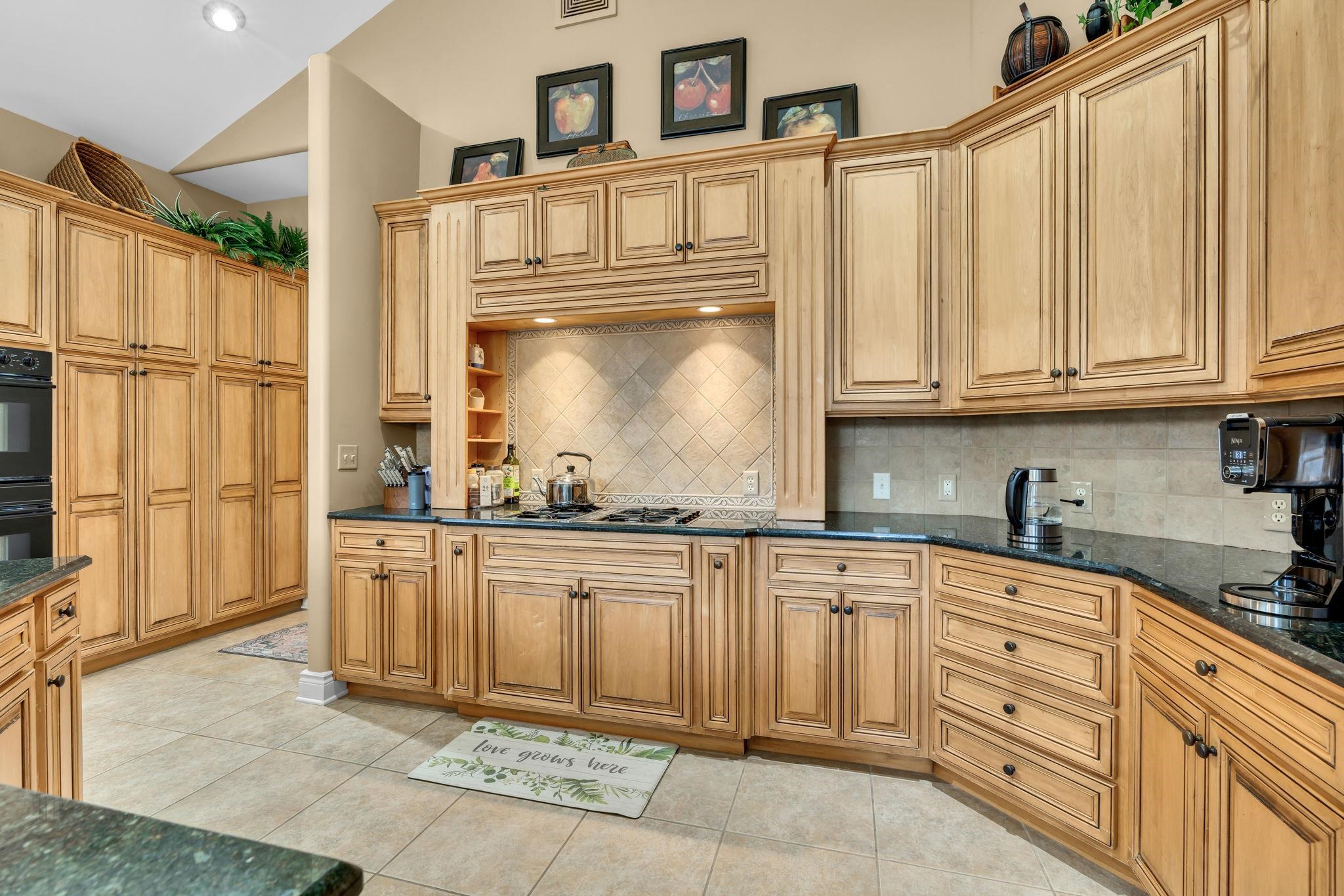 - Description: Welcome to 3 N. Stagecoach Ct.—where elegance meets everyday ease on a beautifully landscaped cul-de-sac lot. This refined ranch blends timeless design with thoughtful functionality, offering the perfect backdrop for both grand entertaining and quiet evenings at home. Step into the inviting living room, where hardwood floors, built-in speakers, vaulted ceilings, and a fireplace with tile surround create a warm, upscale ambiance. The gourmet granite kitchen is a culinary dream, featuring a professional-grade appliance suite, oversized island with breakfast bar, pull-out spice rack, and a pantry with pull-out shelving—all open to a cozy family room that frames views of the lush backyard. The serene primary suite is your personal retreat, complete with vaulted ceilings, private deck access, built-in speakers, and a spa-worthy bath with dual sinks, Corian counters, soaker tub, walk-in tile shower, and dual walk-in closets. A stylish main floor office with built-ins and French doors doubles as a potential extra bedroom. Downstairs, the walkout basement delivers on every level—offering a rec room with built-in entertainment center, game room with walk-in closet, wet bar, and three additional bedrooms, all generously sized with two full baths to match. Multiple deck and patio spaces invite you to relax outdoors, surrounded by tranquil landscaping, a koi pond, and the soothing sounds of a waterfall. This home is the total package—comfortable, luxurious, and crafted for the way you live. Show all description