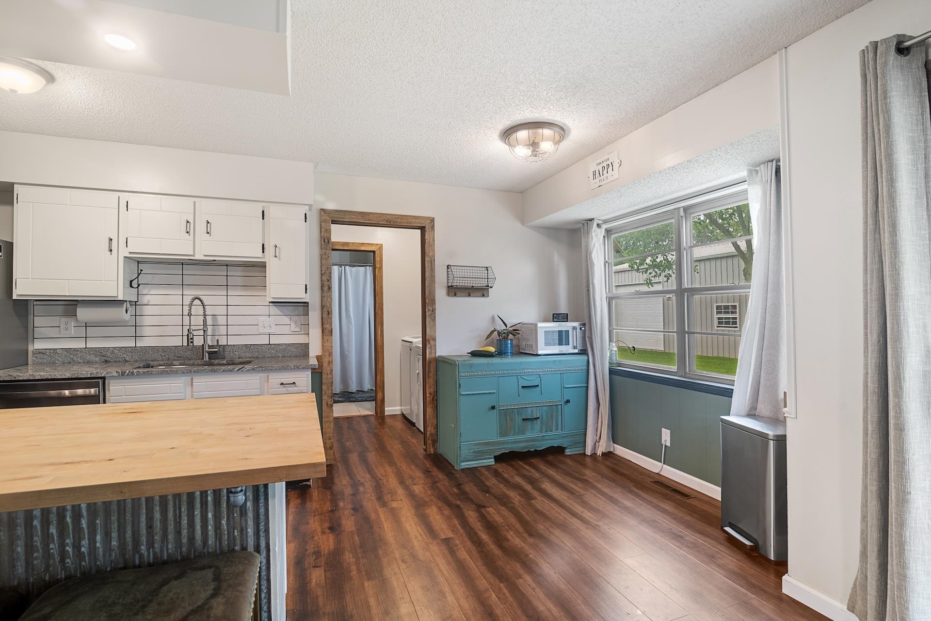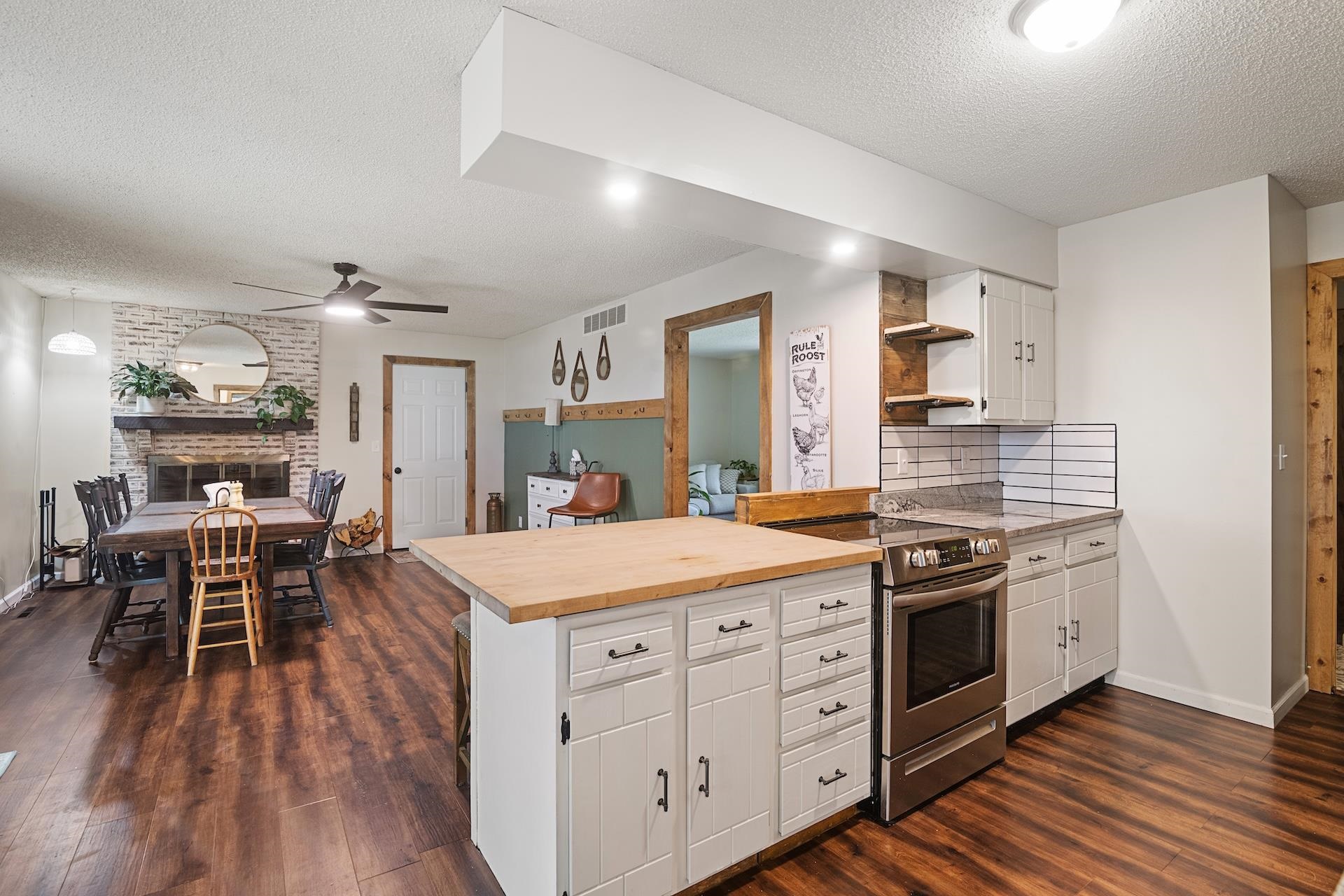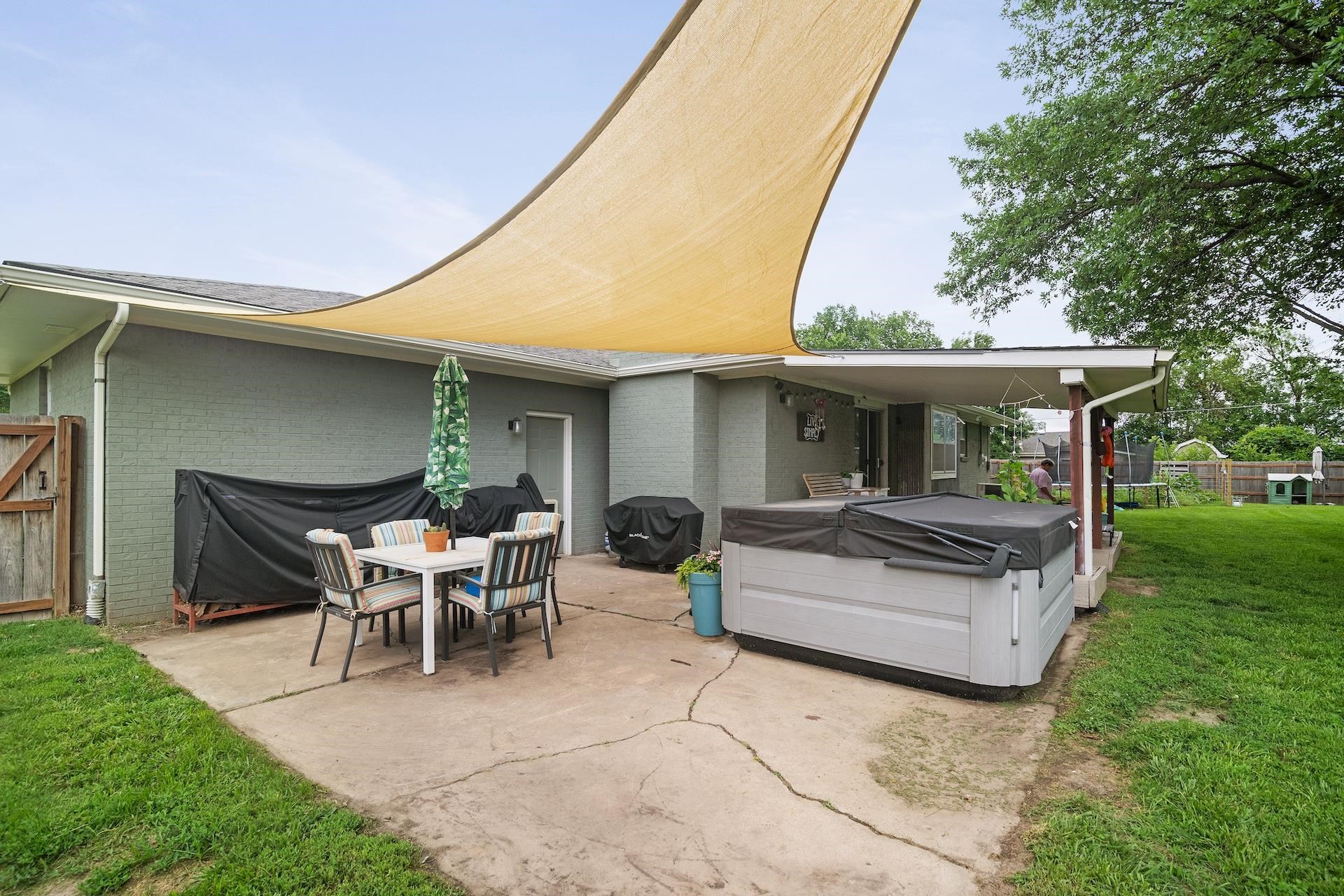 - Description: Welcome to your beautifully updated all-brick ranch on nearly half an acre—where modern style meets small-town charm. Nestled in the highly sought-after Goddard School District, this move-in ready 3-bedroom, 2-bath home offers an impressive 6-car garage capacity, including a newer 40x30 shop with concrete floors, dual overhead doors, and endless potential for car lovers, hobbyists, or anyone craving extra space. From the cozy front porch shaded by mature trees to the thoughtfully updated interior, every detail invites comfort and convenience. Step inside to find luxury vinyl plank flooring throughout the living, family, and kitchen areas. The spacious family room, featuring a classic wood-burning fireplace, flows seamlessly into a completely remodeled kitchen with granite and butcher block countertops, stylish tile backsplash, eating bar, and a full appliance suite. The primary suite is a relaxing retreat with a walk-in closet and a private en suite bath showcasing a sleek Onyx countertop and stand-alone shower. Two additional bedrooms, an updated hall bath, and main floor laundry round out the functional layout. Need more space? The finished basement offers a large rec/game room and a bonus area perfect for a home office, playroom, or creative studio. Outside, entertain with ease in the fully fenced backyard—complete with a covered deck, patio, garden beds, and even a chicken coop! Bonus features include a heated 2-car attached garage with insulated doors, no HOA, and quick access to schools, restaurants, churches, and US 400/Kellogg. Homes like this—with updates, space, and an incredible shop—are a rare find. Don’t miss your chance to make it yours! Show all description