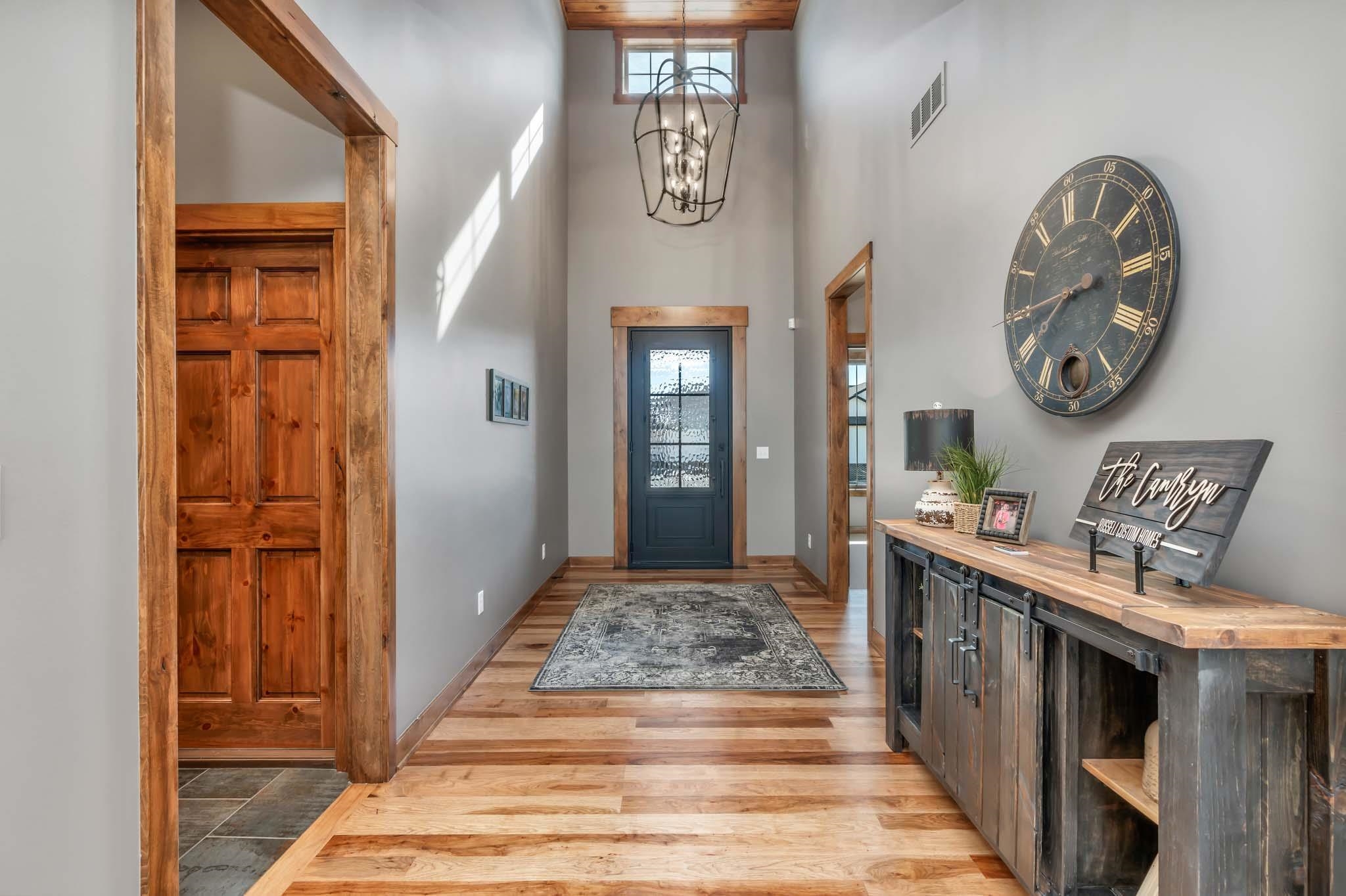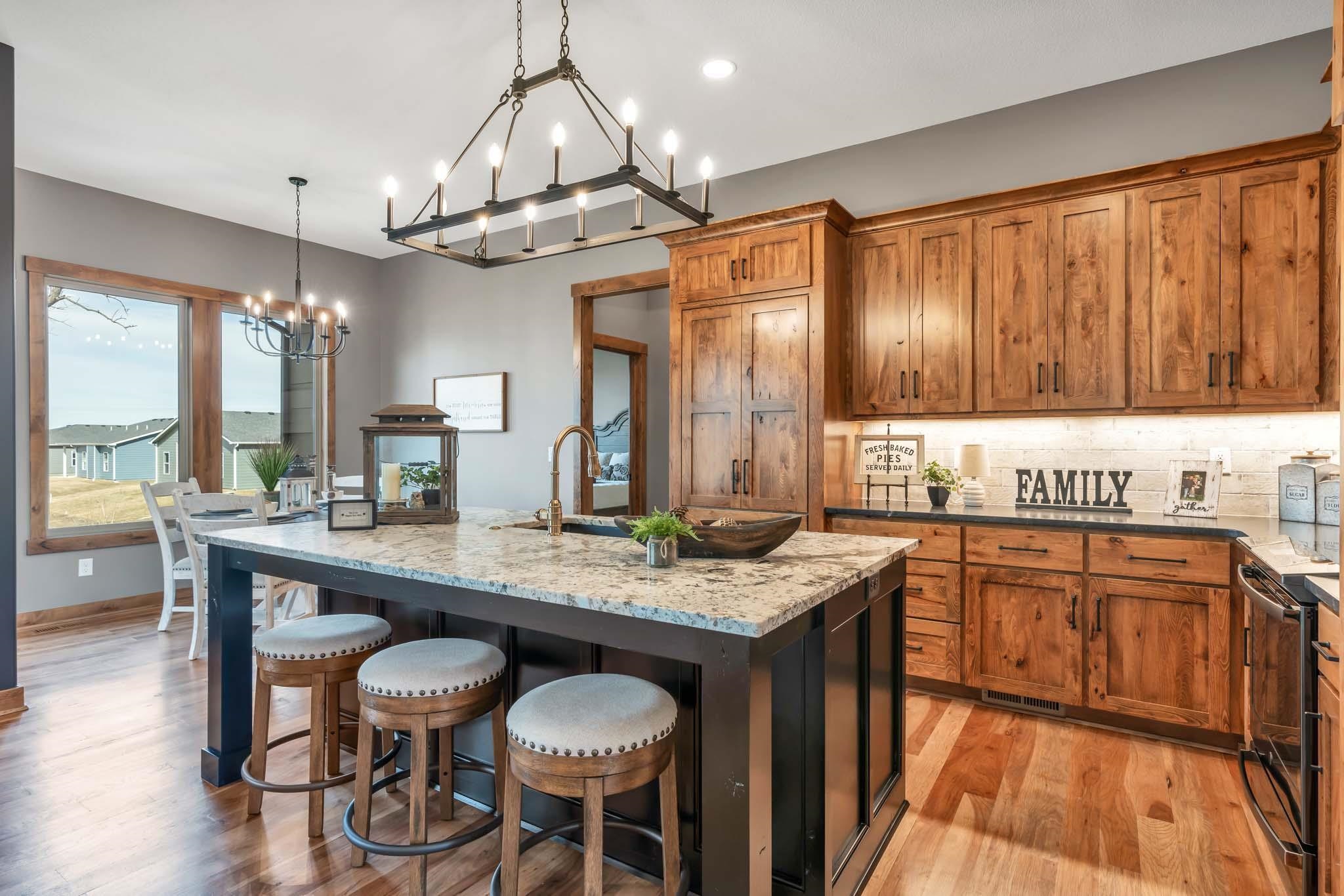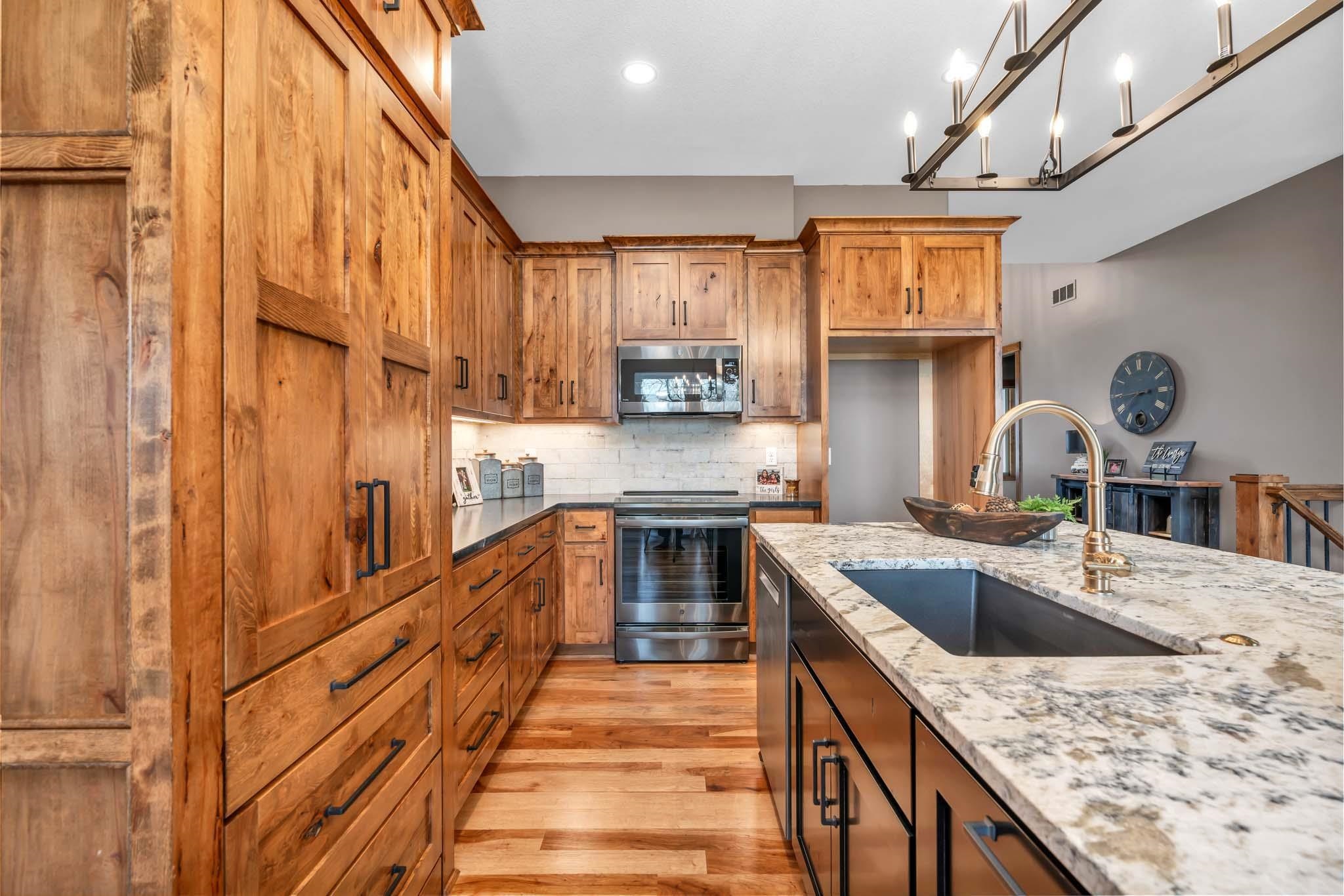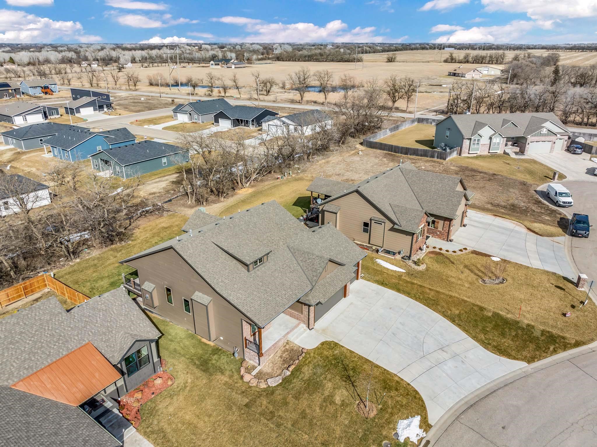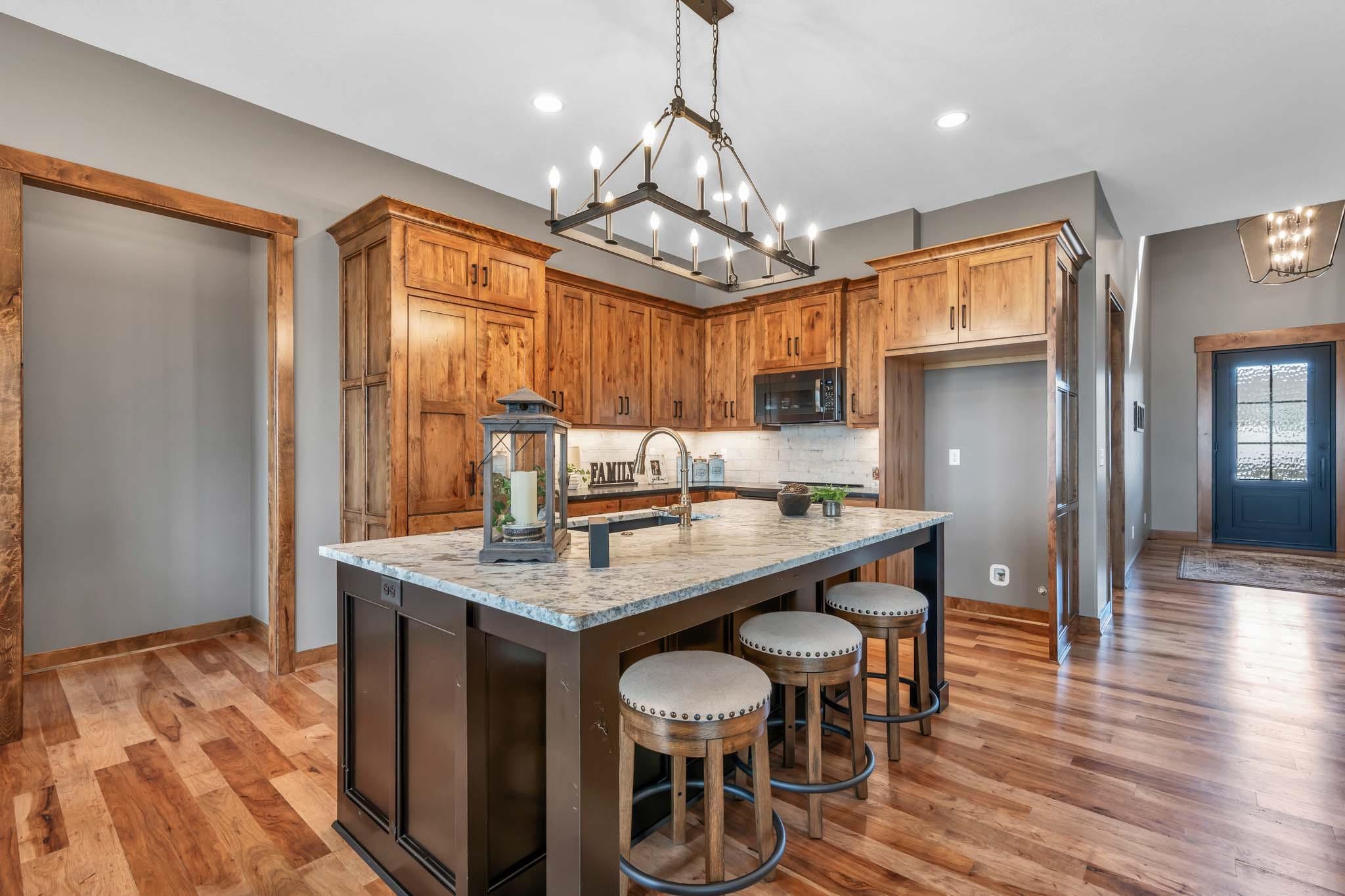 - Description: As you drive up to this beautiful home, you will immediately notice the attractive curb appeal with fresh sod, sprinklers and stone laid around the perimeter of large porch. As you enter this stunning craftsman, one-of-a-kind home, you are immediately captivated by the grandeur of the foyer, featuring soaring 18 -foot ceilings that create an expansive and airy atmosphere. The light pours in to illuminate the beautiful hickory wood floors that flow seamlessly throughout the main level. The heart of the home is undoubtedly the kitchen. It boasts stunning rustic beech cabinets that were built on-site ensuring a unique touch that perfectly complements the home and state of the art black stainless-steel appliances! The hidden pantry is a is a remarkable addition, allowing for a clutter-free and organized cooking space. The living area is cozy and inviting, centered around a gas fireplace that promises warmth and ambiance for those chilly nights. The adjacent dining room offers serene views of the tree-lined backyard. Easy access to your covered composite deck and oversized patio from your dining room offers easy entertaining! Retreat to your primary bedroom which offers a tranquil en-suite bath with shower, two sinks and must-have walk-in closet. The two secondary bedrooms share a beautifully appointed hall bath, complete with granite countertops and custom tile accents. Convenience meets functionality with separate main floor laundry and a drop zone located just off of the oversized three car garage that is partially insulated, and Sheet rock and builder has installed epoxy floors in garage and mechanical room! The home also features a newly finished basement complete with large family room, another area for theater or anything you wish, a custom wet bar featuring quartzite countertops on counters and island perfect for entertaining guests. Two bedrooms, a third bath and storage area with built-in-shelving and epoxy floors. The home is beautifully landscaped sitting on a tree lined lot with sprinklers and sod, creating a serene outdoor space for relaxation. Located in the desirable area of Cambridge Valley, this craftsman home offers a perfect blend of luxury, functionality and charm, making it a truly exceptional place to call home!! For those who appreciate quality and elegance in your living space, schedule your showing today and make this stunning home your own!! The builder has truly made this home turn-key ready!! Award winning Valley Center Schools & Low Specials. This home qualifies for the Park City New Home Buyer's Incentive. City will issue an annual reimbursement of 75% of the City's portion of the property taxes paid. The New Home Buyer will also receive up to $4000.00 from Park City. Certain terms and conditions apply see onsite agent for details. Show all description