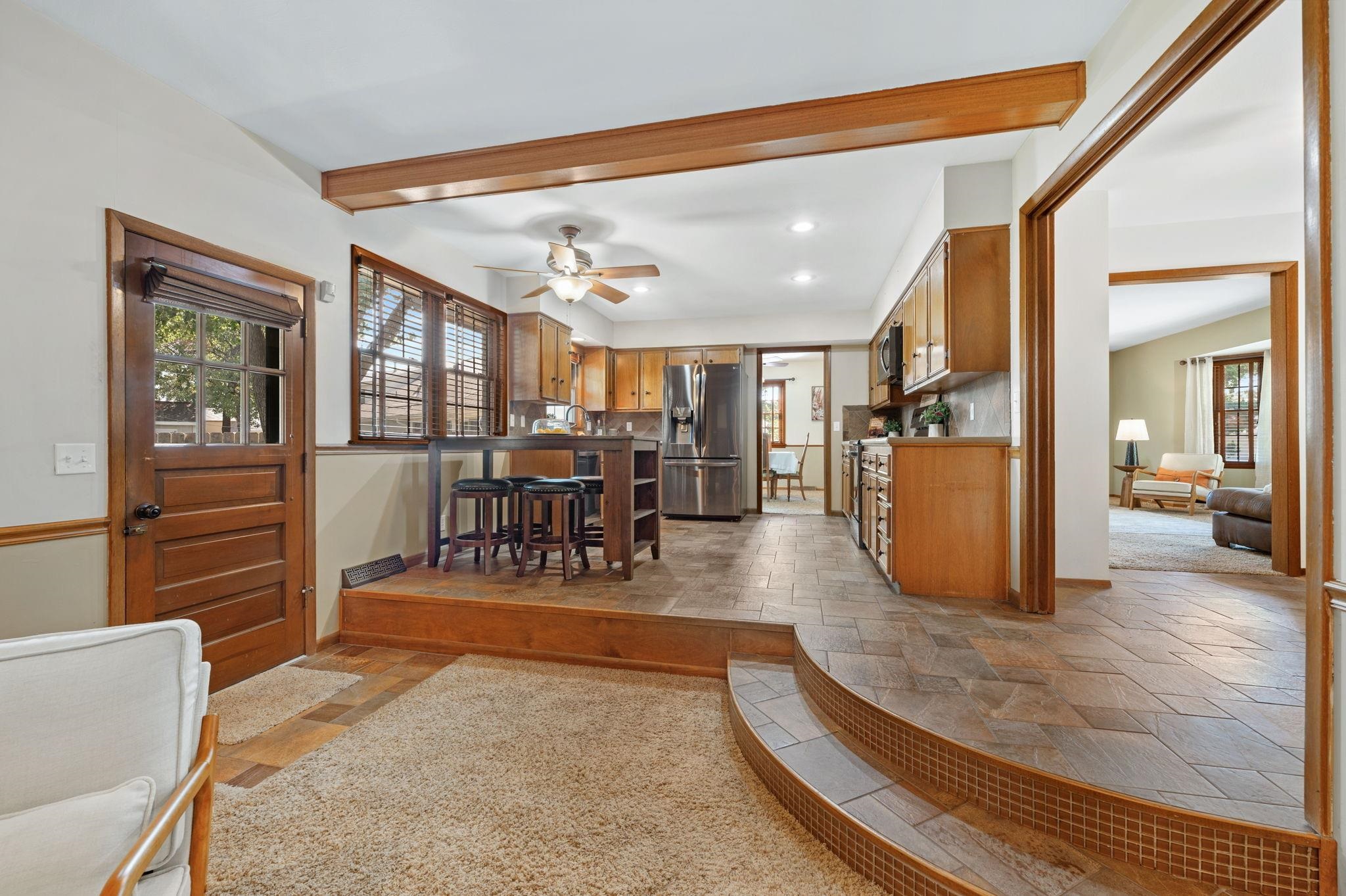 - Description: Check it out…reduced below recently appraised value! Wrapped in warmth and thoughtful design, this 3-bed, 3.5-bath home near Benjamin Hills offers timeless design, generous living spaces, and a location that blends peace with convenience. Already professionally evaluated through inspection and appraisal, it’s ready for a smooth, confident close—so you can focus on settling in, not sorting out details. The main floor welcomes you with a spacious front living room, a formal dining area, and an open kitchen that flows into the hearth-style family room, where wood beams and a cozy fireplace create a warm, inviting atmosphere. This central gathering space is ideal for everyday comfort and relaxed entertaining. Downstairs, a finished rec room adds versatility and charm, complete with a pool table that stays with the home. Dual laundry hookups on both the main level and basement offer added flexibility for modern living. Step outside to a covered patio with skylights, a generous stone terrace, and a powered shed (installed in 2018), all framed by mature trees and lush landscaping that provide privacy and year-round beauty. Located just steps from the scenic Arkansas River, this home offers easy access to outdoor recreation. Commuters will appreciate the quick connection to major highways, while shopping, dining, and daily essentials are just minutes away. Pet lovers will enjoy proximity to Meridian Dog Park, and recent updates to the roof, windows, and exterior paint offer added peace of mind. Move-in ready and rich with charm, this home offers comfort, character, and space to truly make home! Show all description