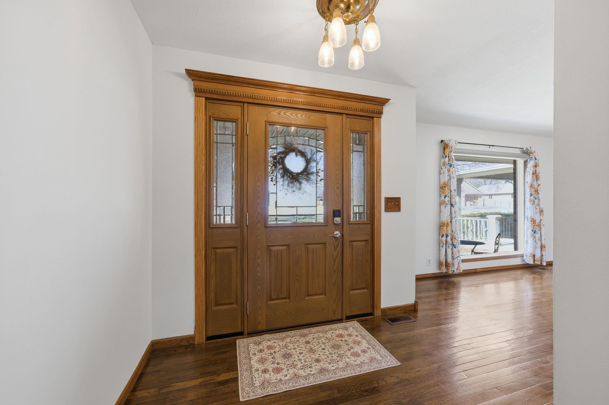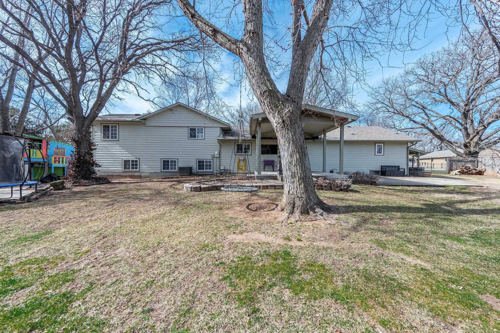 - Description: Beautifully updated and well-maintained move in ready home is located in the desired Callahan addition within the Goddard Eisenhower district. This floor plan offers wide open spaces with beautiful wood floors, huge dining room and even bigger living room with custom woodwork, huge mantle, entertainment center with tons of storage and complete with a custom bar. Main floor laundry and half bath located just off the living room. A dream kitchen awaits all your needs. Complete with a gas stove, marble tops and backsplash, under counter lighting, a pantry, tons of cabinets with pull out selves for your convenience. Upstairs you will find a HUGE primary bedroom suite and walk in closet with custom shelving and drawers. The primary bath has a separate shower and a jacuzzi tub, a built-in linen/glass shelved storage. Upstairs also has a bedroom that would be perfect for a nursery or home office. On the lower level you will find 2 bedrooms, nice size family room with a full bathroom. The basement has a bonus room and full third bathroom, as well as ample storage and a safe room. This home has a two-car attached garage and an oversized detached 1 car shop and garden shed that is heated and has electricity, perfect for storage/car hobbyist/mechanic or all the projects you could imagine. The home sits on almost a half-acre with mature trees, sprinkler system, privacy fenced yard, covered patio space in the front and back yard for all your entertainment needs. Don't miss your chance to see this beautiful home.... the possibilities here are endless! SELLERS ARE REQUESTING FINAL AND BEST BY NOON ON MONDAY 2/16!!! All information deemed reliable, but not guaranteed, call to verify school district. Show all description