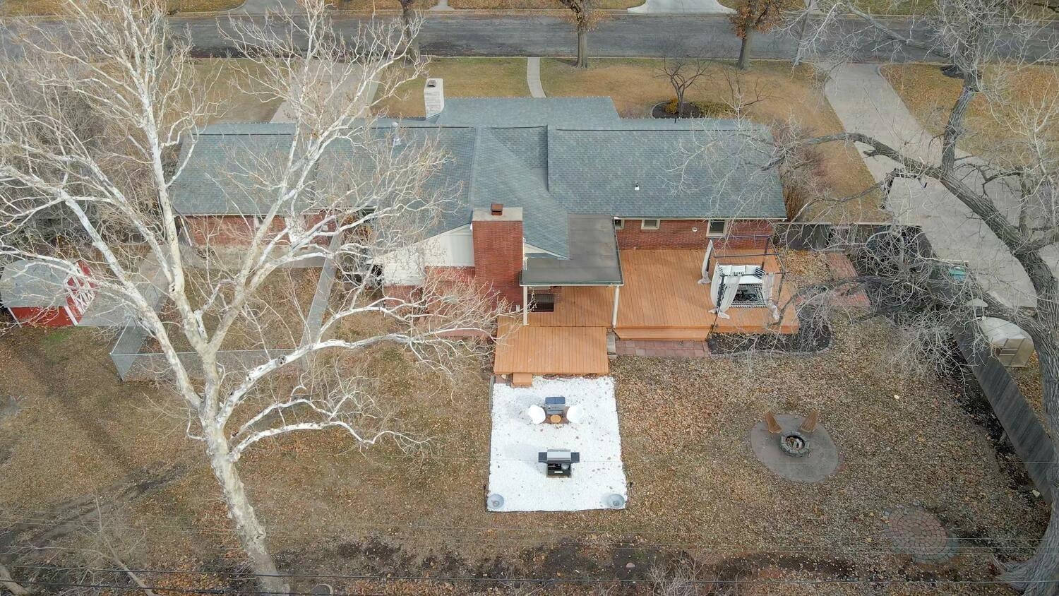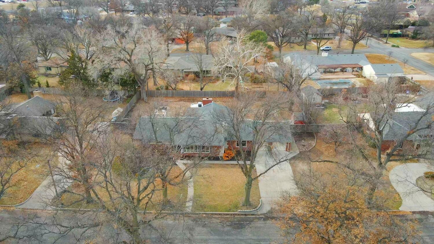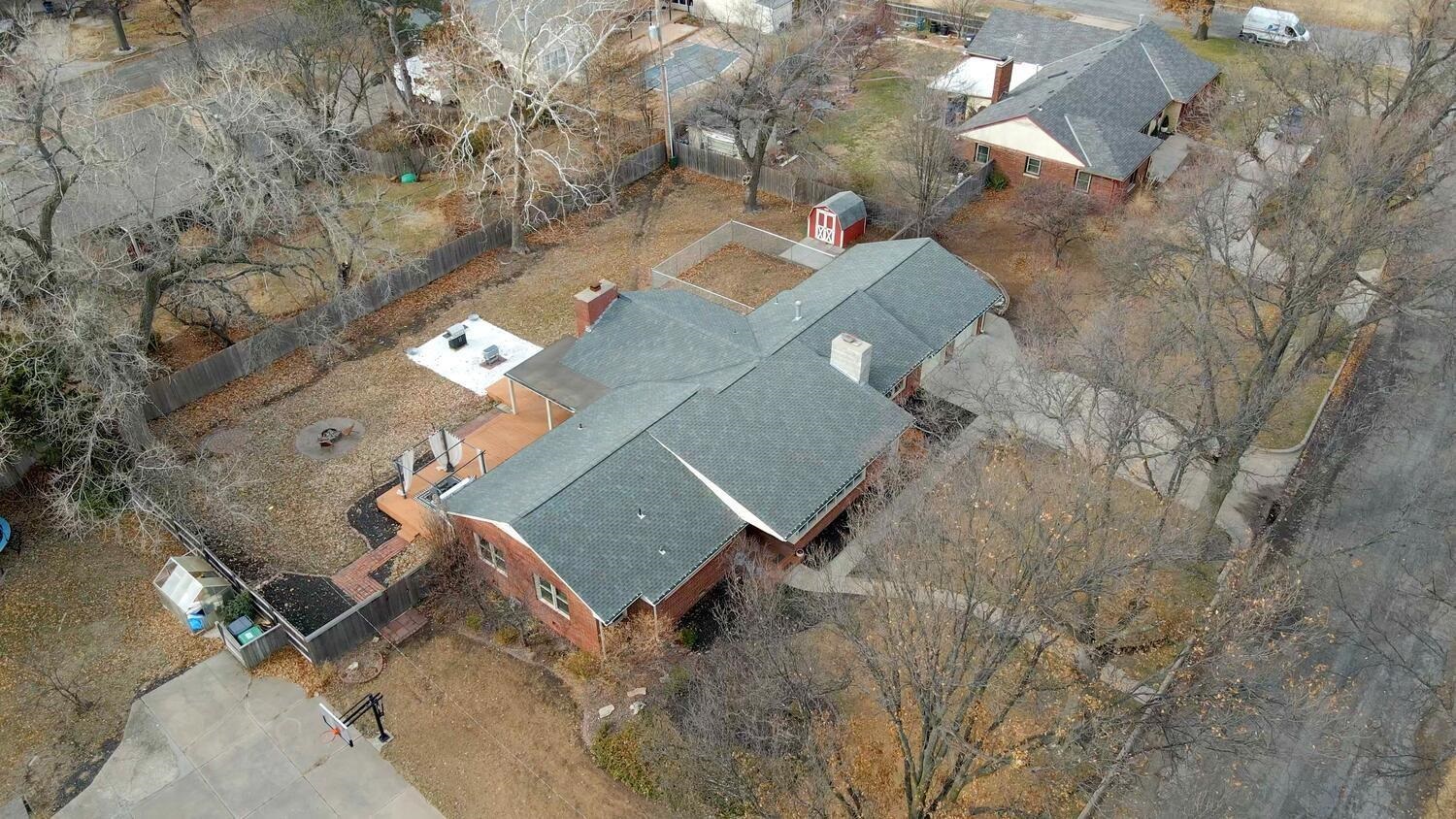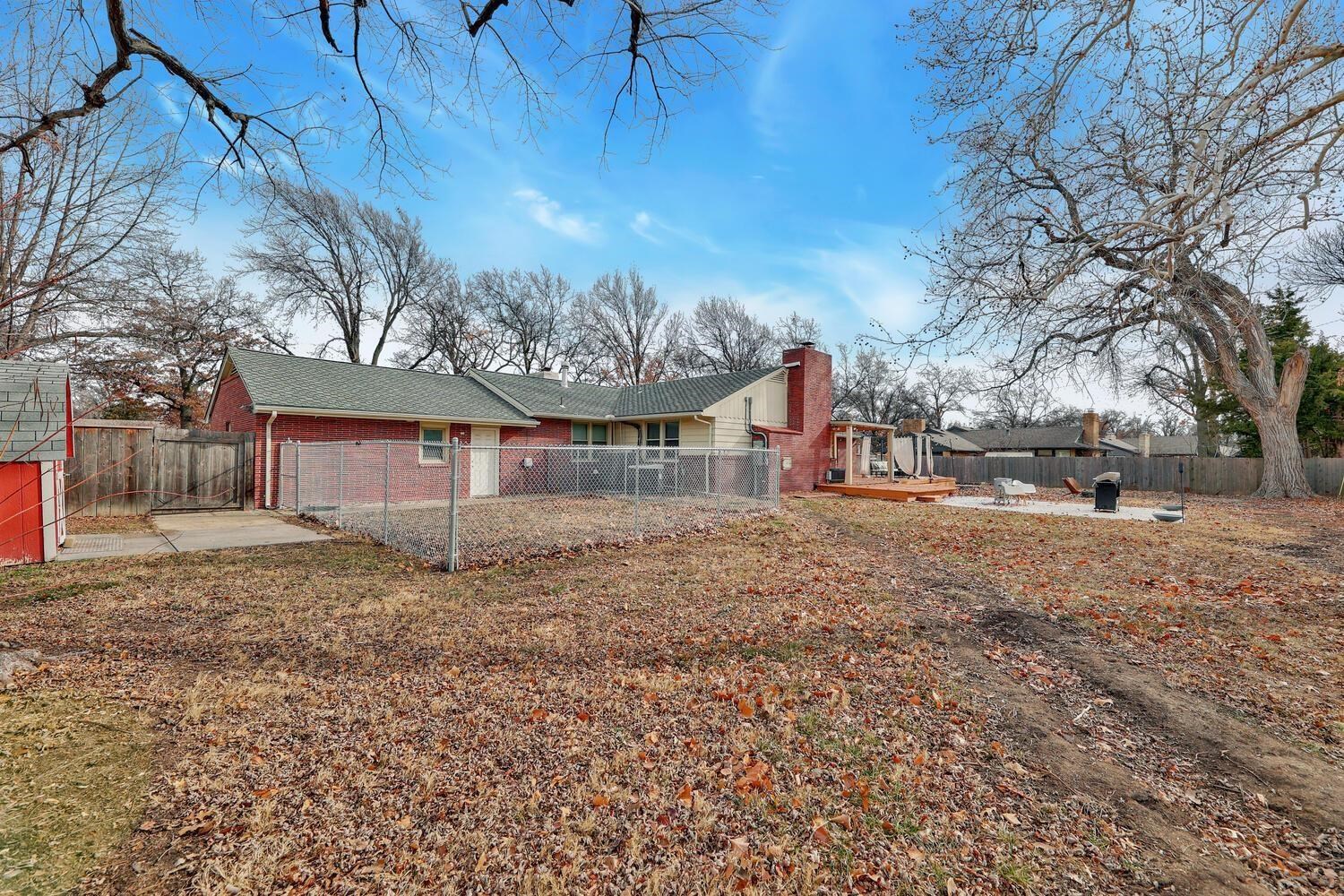 - Description: Spacious Mid-Century ranch on large lot in The Village! Welcome home to this sprawling ranch in the heart of Wichita, offering timeless charm and thoughtful updates throughout. Situated on a large, tree-lined lot, this mid-century gem features wood floors, abundant natural light, and two inviting living areas perfect for entertaining. The spacious living room greets you with a stone fireplace, custom wood mantle, and flows seamlessly into the formal dining area with updated lighting and picturesque front yard views. The centrally located kitchen boasts granite countertops, an eating bar, luxury vinyl flooring, a built-in desk, and ample cabinet space with pull-outs for added functionality. (Gas stove new in 5/22 and refrigerator new in 5/21.) Adjacent to the kitchen is a large family room with a brick fireplace, informal dining space, and direct access to the backyard's covered deck. Main floor laundry is conveniently located near the garage entry and doubles as a mudroom, complete with extra storage and a half bath. All bedrooms feature wood flooring and generous closets. The primary suite includes designer lighting and a private bath with a tile shower and pedestal sink. The hall bath was fully updated in 8/22 with a new tub and surround, granite counters, and updated lighting. Enjoy outdoor living with a covered and open deck, gazebo with lighting, fire pit, storage shed, and additional fenced area – all within a fully privacy-fenced yard with sprinkler system. Mature trees offer shade and serenity. Additional highlights include: New roof and sewer line (2023), newer AC unit/heat pump, air handler, three newer thermostats (two smart), oversized garage with built-in shelving and extended driveway for ample parking. Don't miss your chance to own this beautifully maintained and move-in ready home in a sought-after neighborhood! Show all description