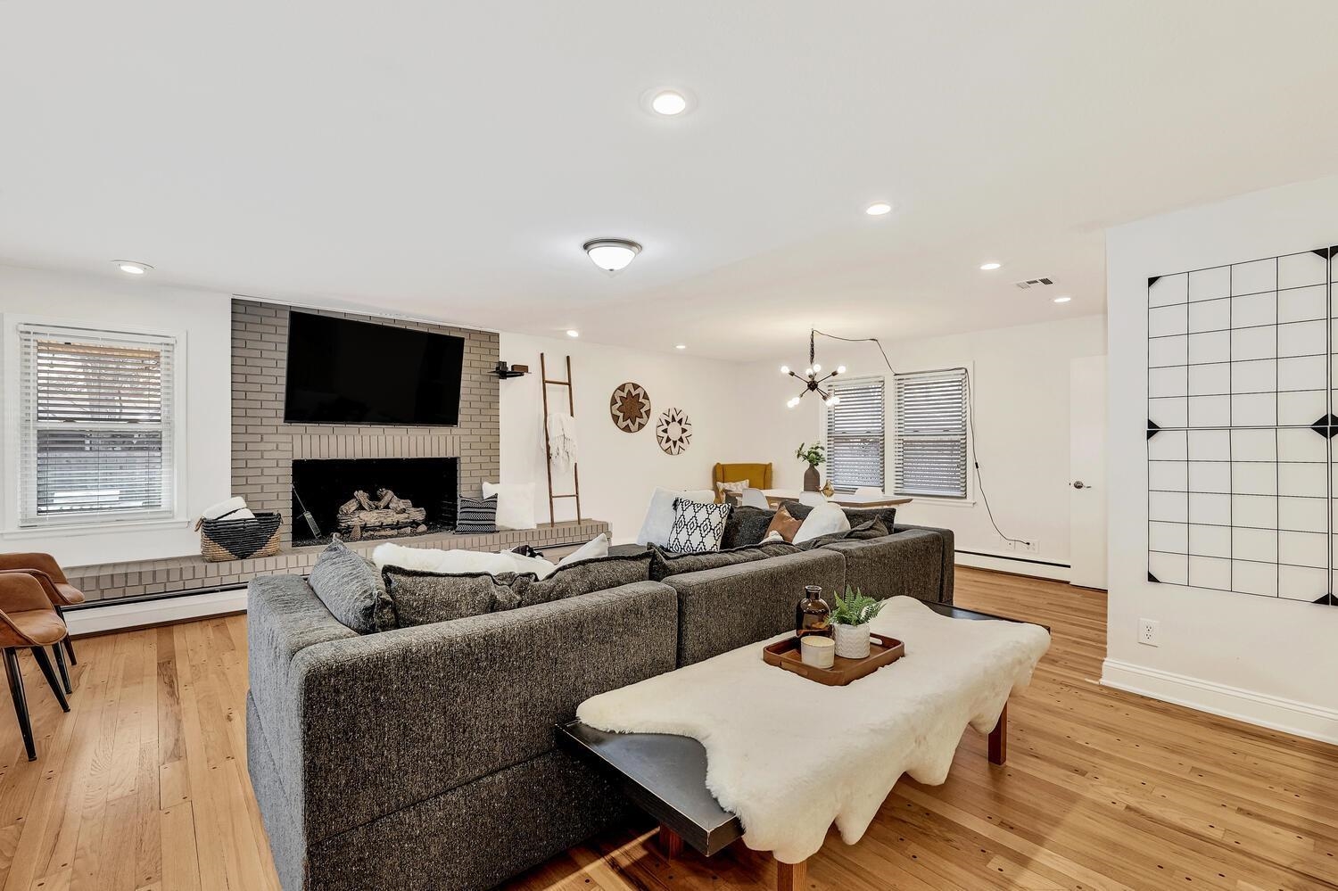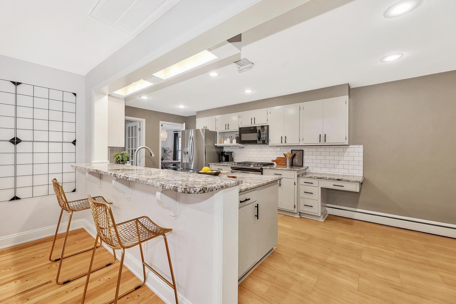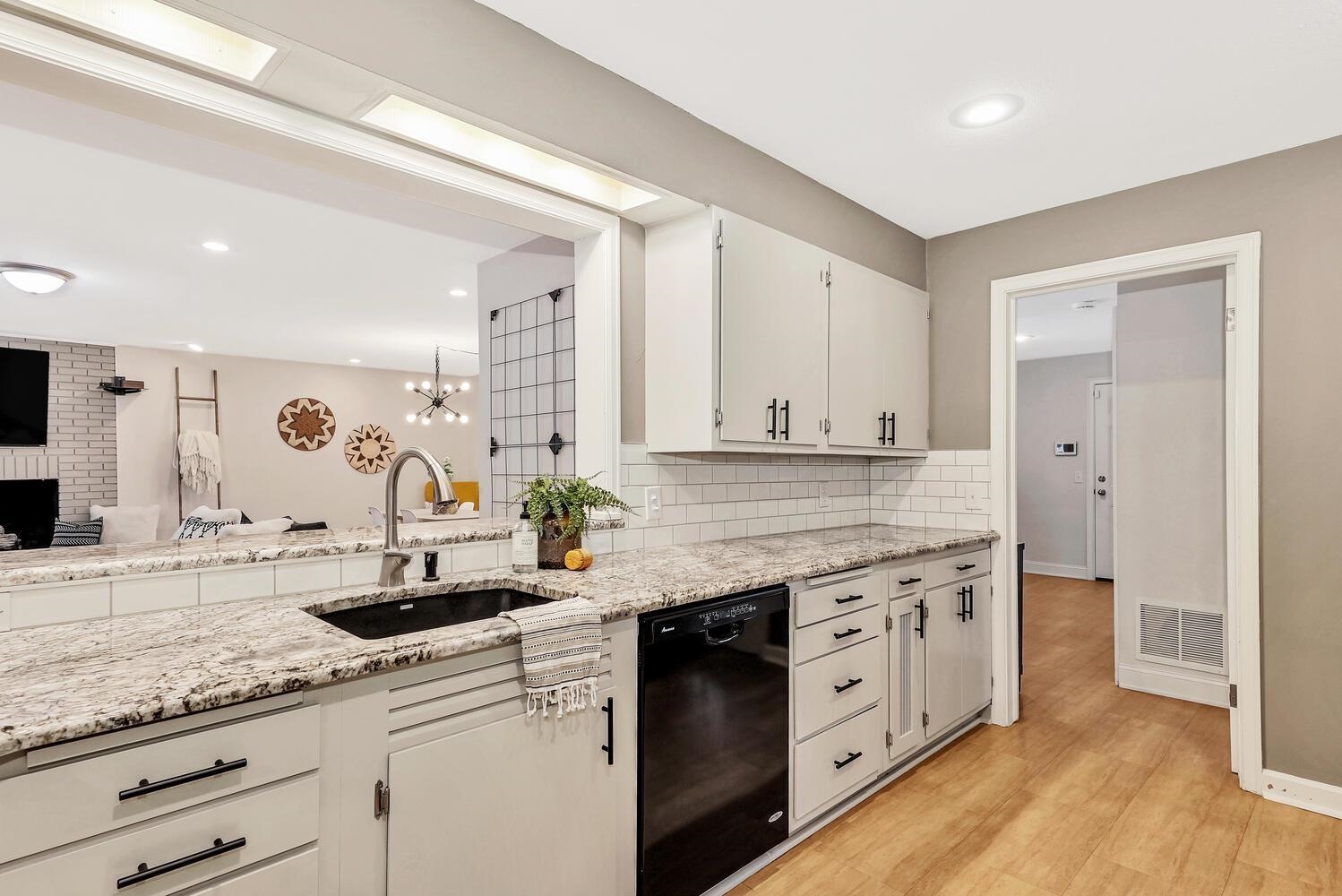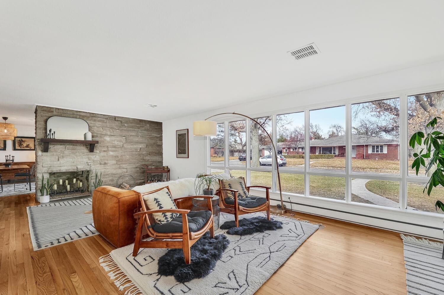 - Description: Spacious Mid-Century ranch on large lot in The Village! Welcome home to this sprawling ranch in the heart of Wichita, offering timeless charm and thoughtful updates throughout. Situated on a large, tree-lined lot, this mid-century gem features wood floors, abundant natural light, and two inviting living areas perfect for entertaining. The spacious living room greets you with a stone fireplace, custom wood mantle, and flows seamlessly into the formal dining area with updated lighting and picturesque front yard views. The centrally located kitchen boasts granite countertops, an eating bar, luxury vinyl flooring, a built-in desk, and ample cabinet space with pull-outs for added functionality. (Gas stove new in 5/22 and refrigerator new in 5/21.) Adjacent to the kitchen is a large family room with a brick fireplace, informal dining space, and direct access to the backyard's covered deck. Main floor laundry is conveniently located near the garage entry and doubles as a mudroom, complete with extra storage and a half bath. All bedrooms feature wood flooring and generous closets. The primary suite includes designer lighting and a private bath with a tile shower and pedestal sink. The hall bath was fully updated in 8/22 with a new tub and surround, granite counters, and updated lighting. Enjoy outdoor living with a covered and open deck, gazebo with lighting, fire pit, storage shed, and additional fenced area – all within a fully privacy-fenced yard with sprinkler system. Mature trees offer shade and serenity. Additional highlights include: New roof and sewer line (2023), newer AC unit/heat pump, air handler, three newer thermostats (two smart), oversized garage with built-in shelving and extended driveway for ample parking. Don't miss your chance to own this beautifully maintained and move-in ready home in a sought-after neighborhood! Show all description