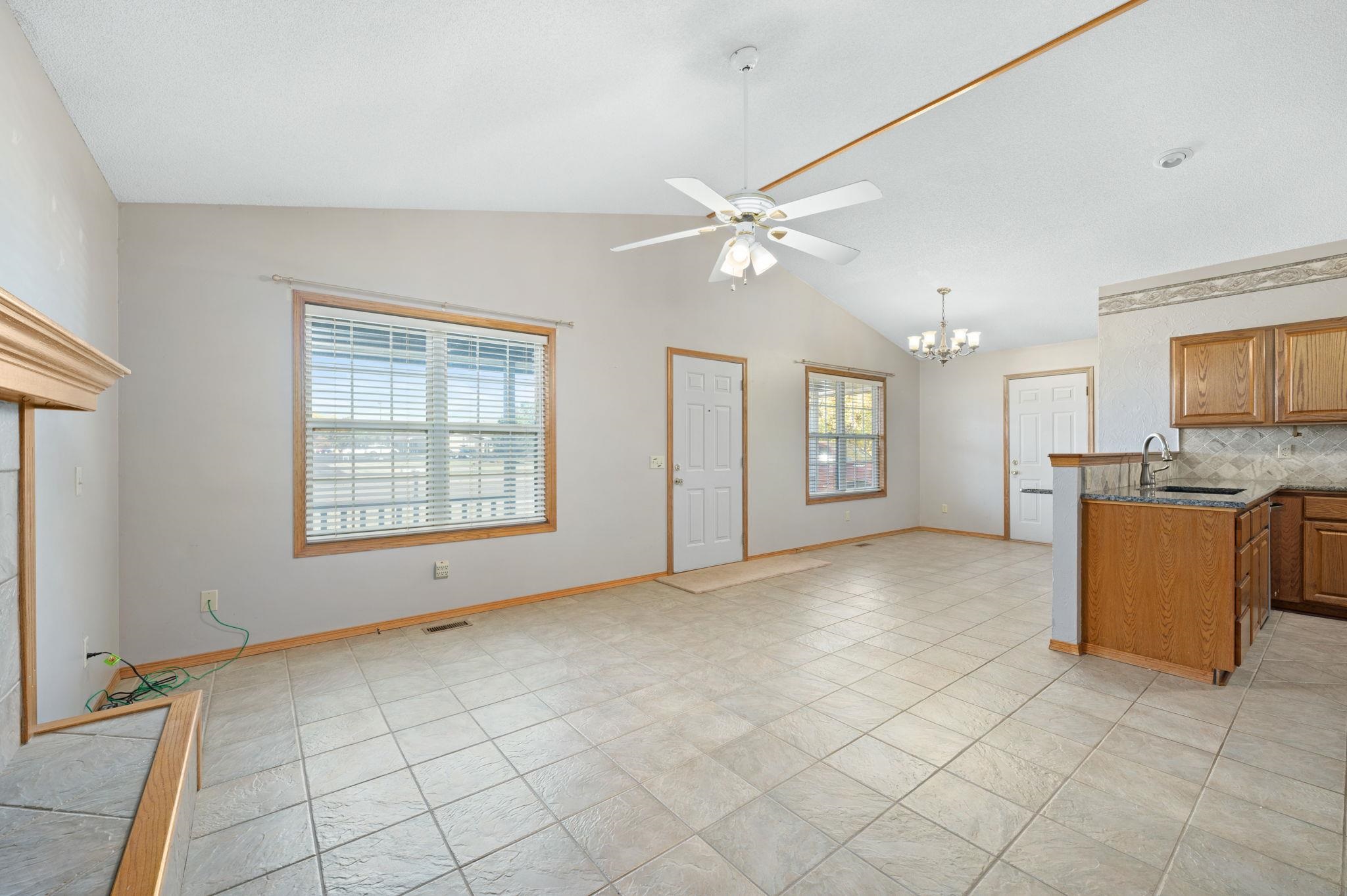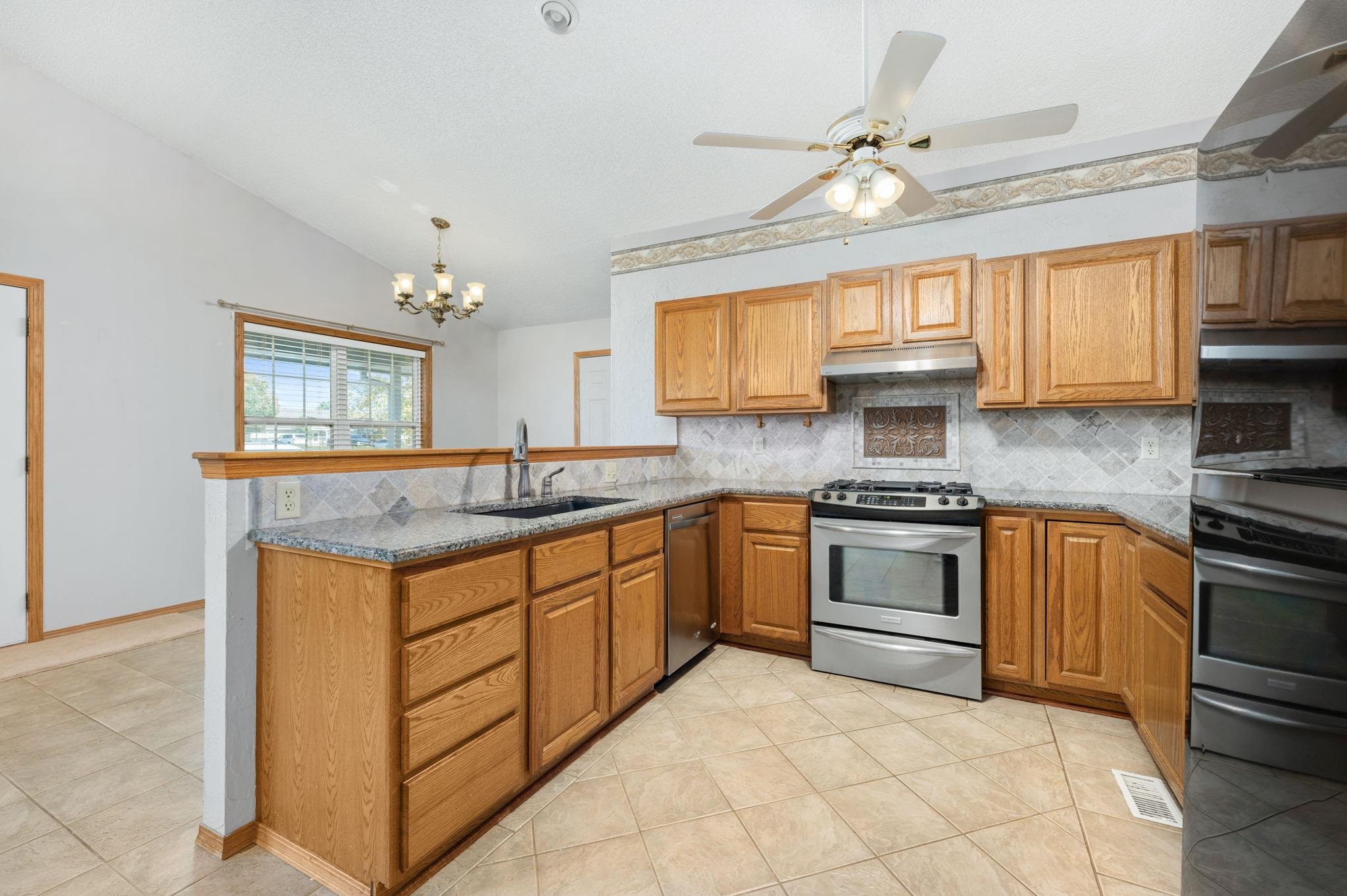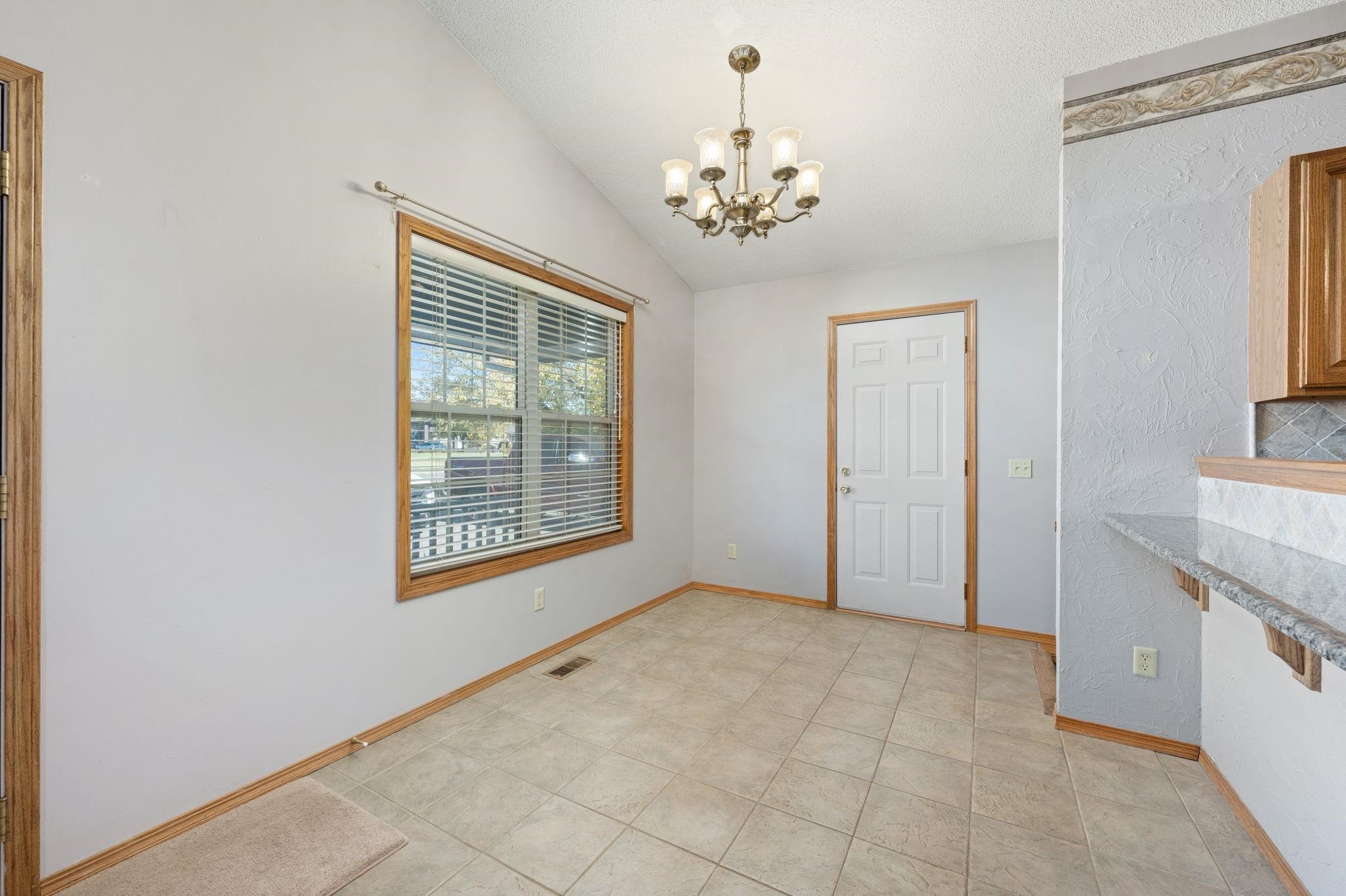 - Description: This beautiful home sits on an oversized lot in the highly desirable Andover School District, offering both space and comfort for your family. Featuring a fantastic open floor plan, this home provides a seamless flow between the kitchen, living room, and dining areas. The spacious kitchen boasts a large eating bar, granite countertops, a gas oven range, as well as a refrigerator and dishwasher. With plenty of cabinetry, this kitchen is perfect for meal prep and storage. Relax in the cozy living room, complete with a charming fireplace, or entertain guests in the adjoining dining space. The main floor also features a convenient laundry area with washer and dryer included. The master bedroom is a true retreat, featuring its own private bath and direct access to the covered patio in the back. Two additional bedrooms and a hall bath complete the main level, offering plenty of room for family or guests. Downstairs, the full basement is a standout, with two huge bedrooms, each with expansive 5x8 walk-in closets. The large bathroom includes a luxurious jacuzzi tub—perfect for unwinding after a long day. Outside, enjoy the large covered front porch—ideal for sipping your morning coffee or relaxing in the evening. The back offers a covered patio, perfect for entertaining, along with a garden area and a fenced-in space for pets. The roof is being replaced before closing. This home is ready for you to move in and make it your own—don’t miss out on this incredible opportunity! Show all description