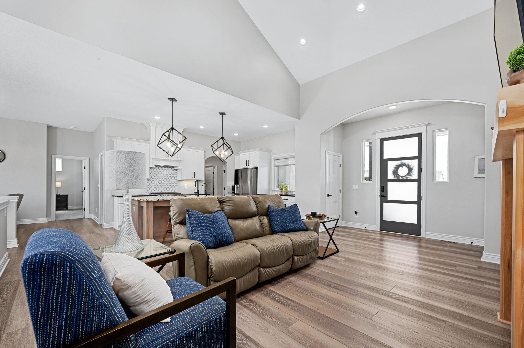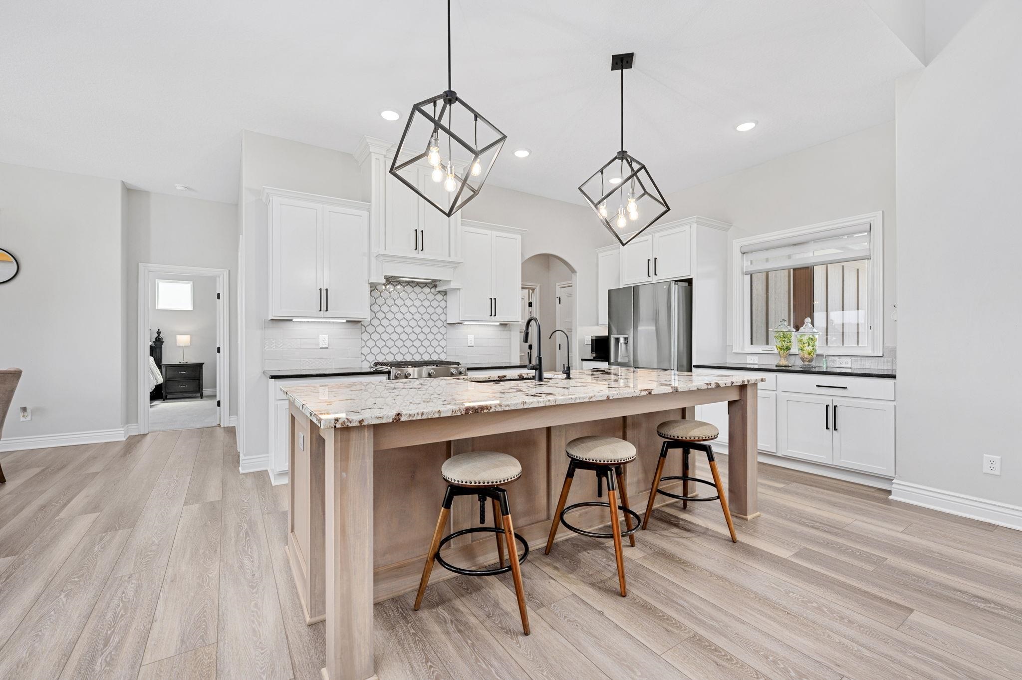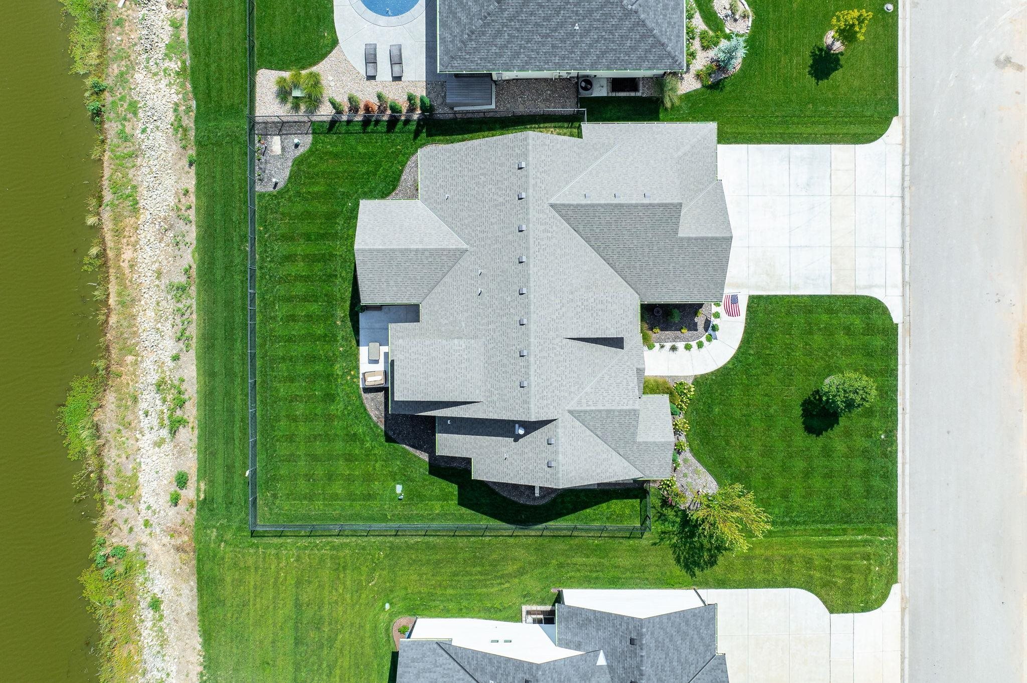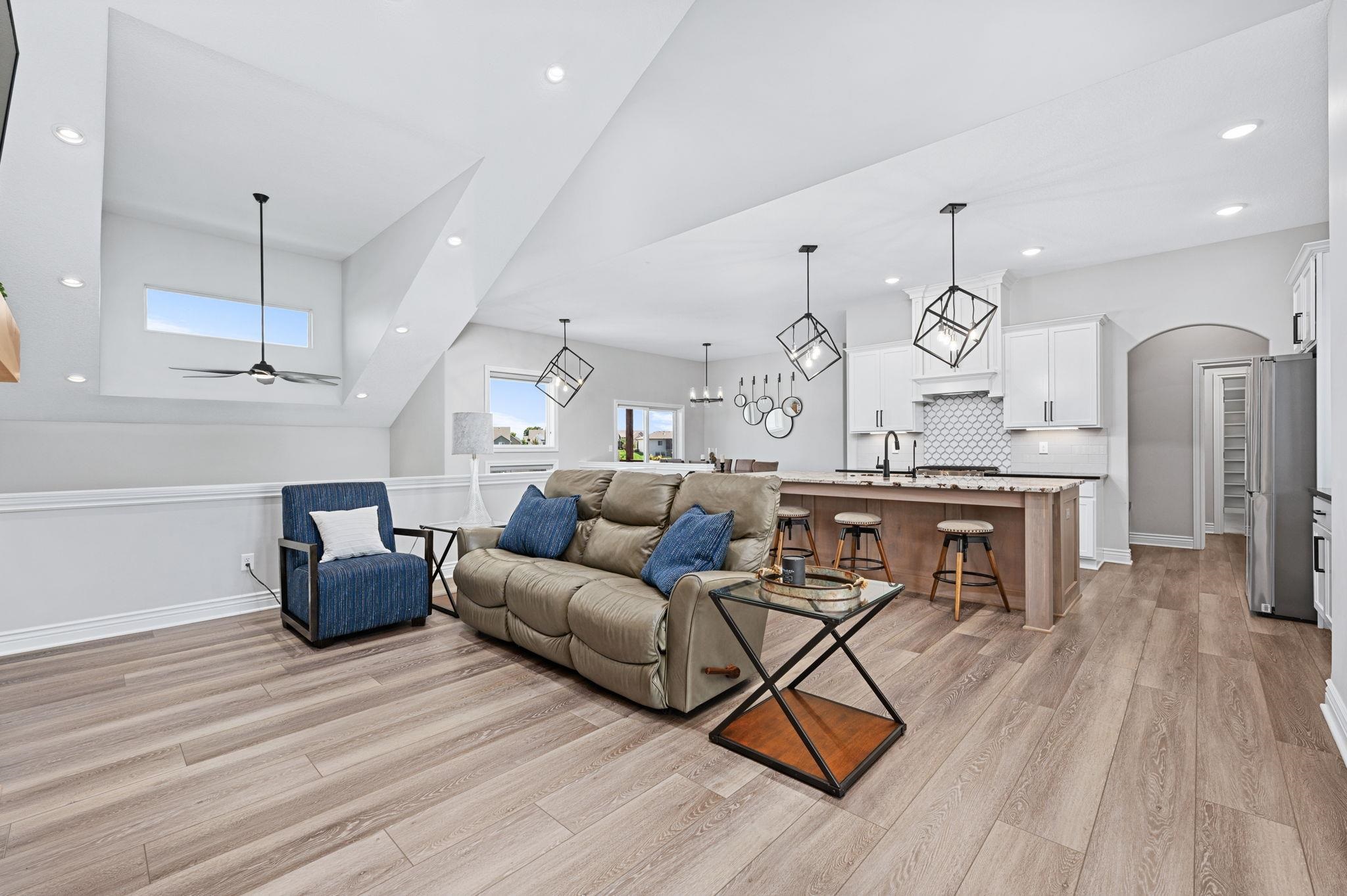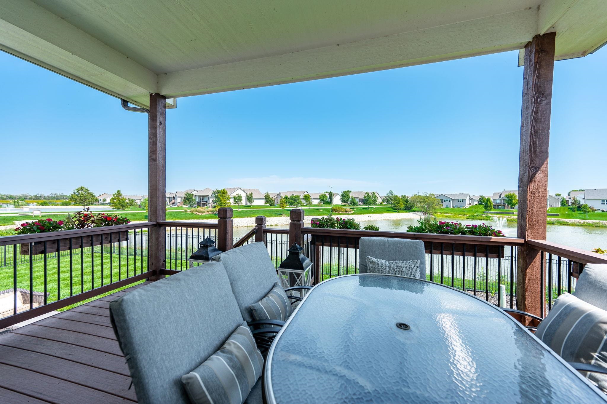 - Description: Welcome to this stunning home built in 2022, where modern luxury meets thoughtful design. This beautifully crafted home offers a spacious and inviting split-floor plan, featuring 3 generously sized bedrooms and 2 elegant baths on the main floor. As you step from the front porch and through the beautiful front door, you'll be greeted by soaring vaulted ceilings that create an open and airy atmosphere, complemented by the abundance of natural light that floods the living spaces.The heart of the home is the expansive living room, where a cozy fireplace adds warmth and charm, perfect for gathering with family and friends. Adjacent to the living area, the dining room seamlessly flows out to a covered wood deck, offering breathtaking views of a serene lake—ideal for enjoying morning coffee watching the sun rise.The chef's kitchen is a true delight, with a huge island with bar seating, granite counters, gas range, coffee bar, soft close cabinets/drawers and a large walk-in pantry. There is a convenient drop zone right off the garage, making everyday living effortless. The luxurious master suite is a private retreat, featuring a spa-like bathroom with a huge walk-in shower, double vanities with quartz counters, separate water closet with extra linen cabinets and an adjacent laundry room directly off the spacious master closet. The laundry room has a sink and extra cabinet storage. On the opposite side of the house from the master, you'll find two other bedrooms, a hall bathroom, a coat closet and 2 linen closets. A versatile flex room has limitless options for use - perfect for a home office, play room, or exercise room. The flex room has a powder bath with a linen closet. It has a walkout door to a large patio and the beautifully landscaped, fenced backyard. You will love that the yard has a sprinkler system on an irrigation well, and there is an oversized 3 car garage. Back inside, the viewout basement extends the living space, offering a cozy family room with a second fireplace, two additional bedrooms, a full bathroom, and a large wet bar. There is also a linen closet, closet under the stairs and large storage room in the basement. Fontana is conveniently located one mile from the restaurants and retail of New Market Square, but off 119th avoiding the busy traffic and noise. Fontana has a neighborhood pool and playground, and is located in the Maize School District. This property is the epitome of modern living, with every detail carefully considered for comfort, convenience, and style. Don’t miss the opportunity to make this wonderful house your forever home. Show all description