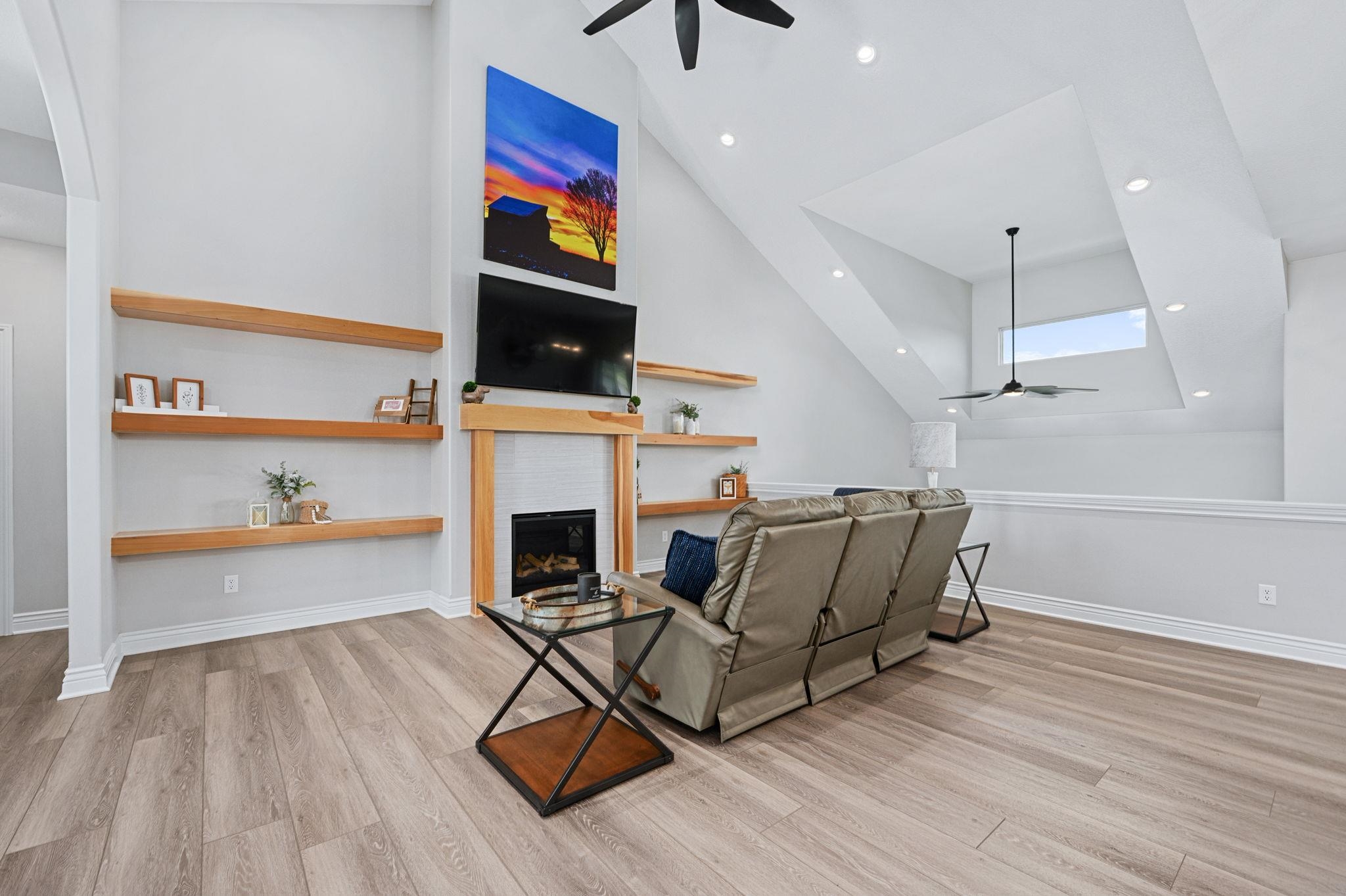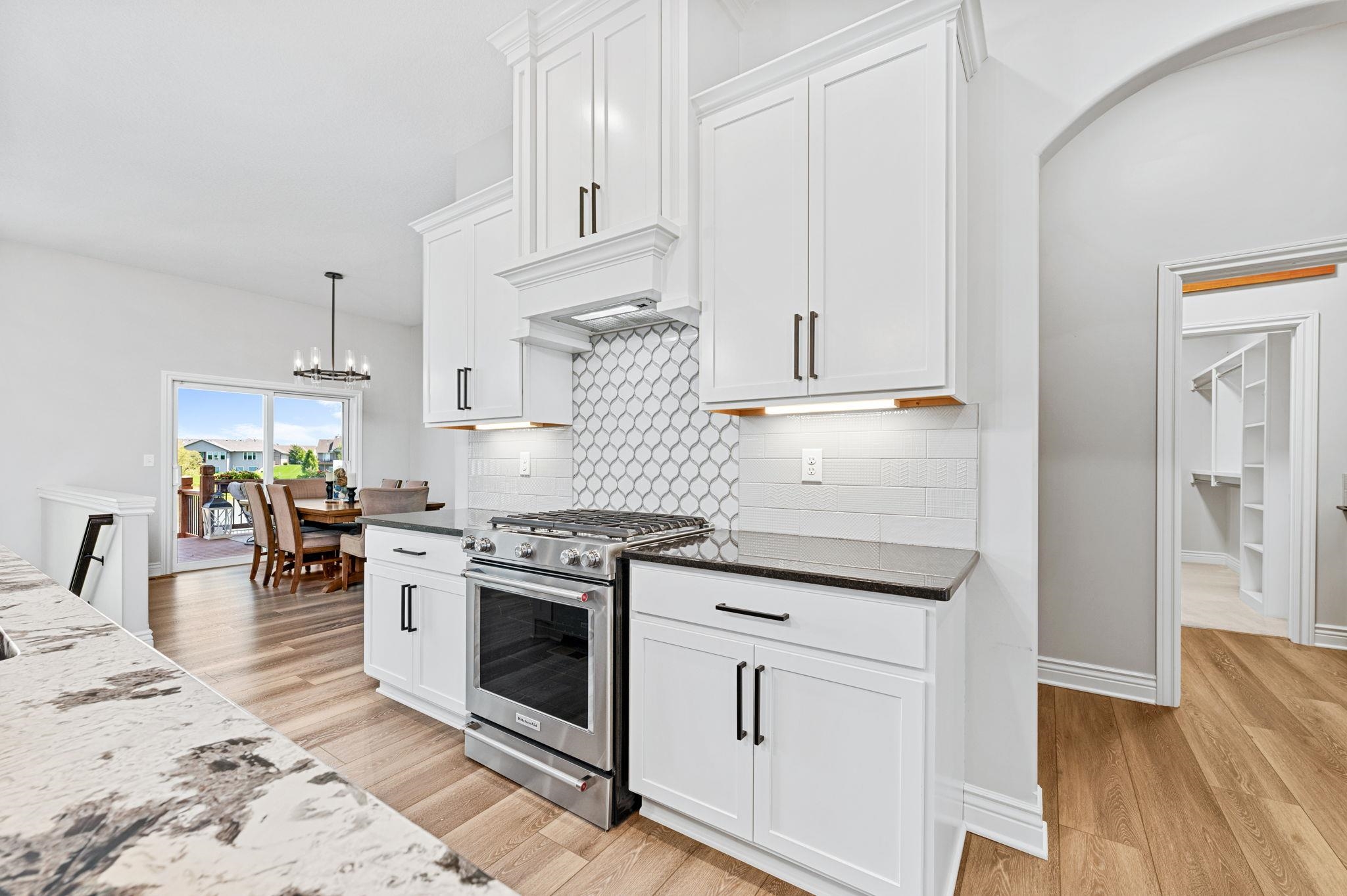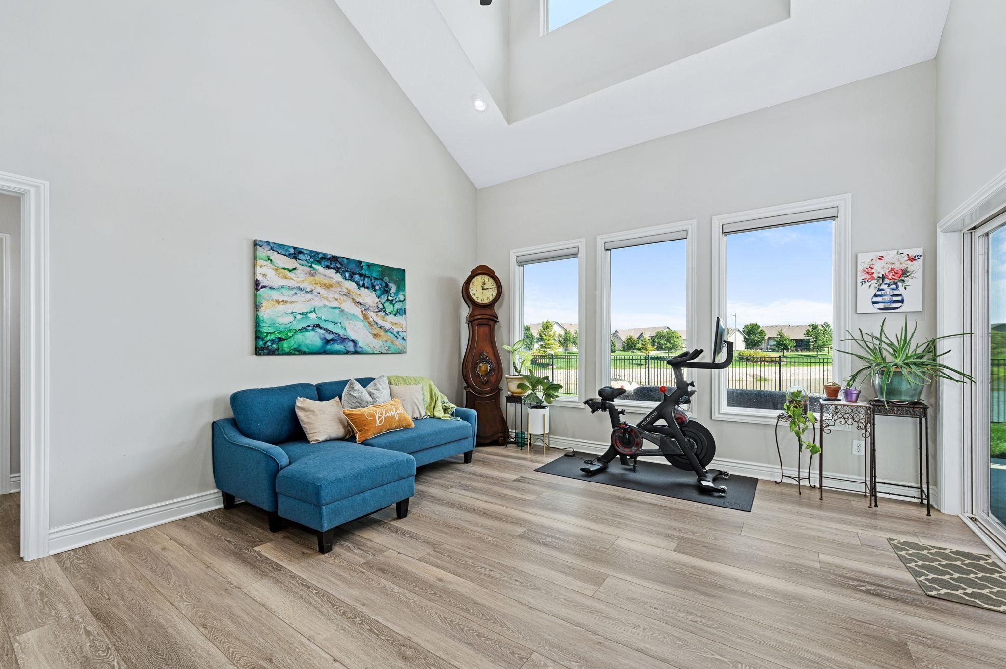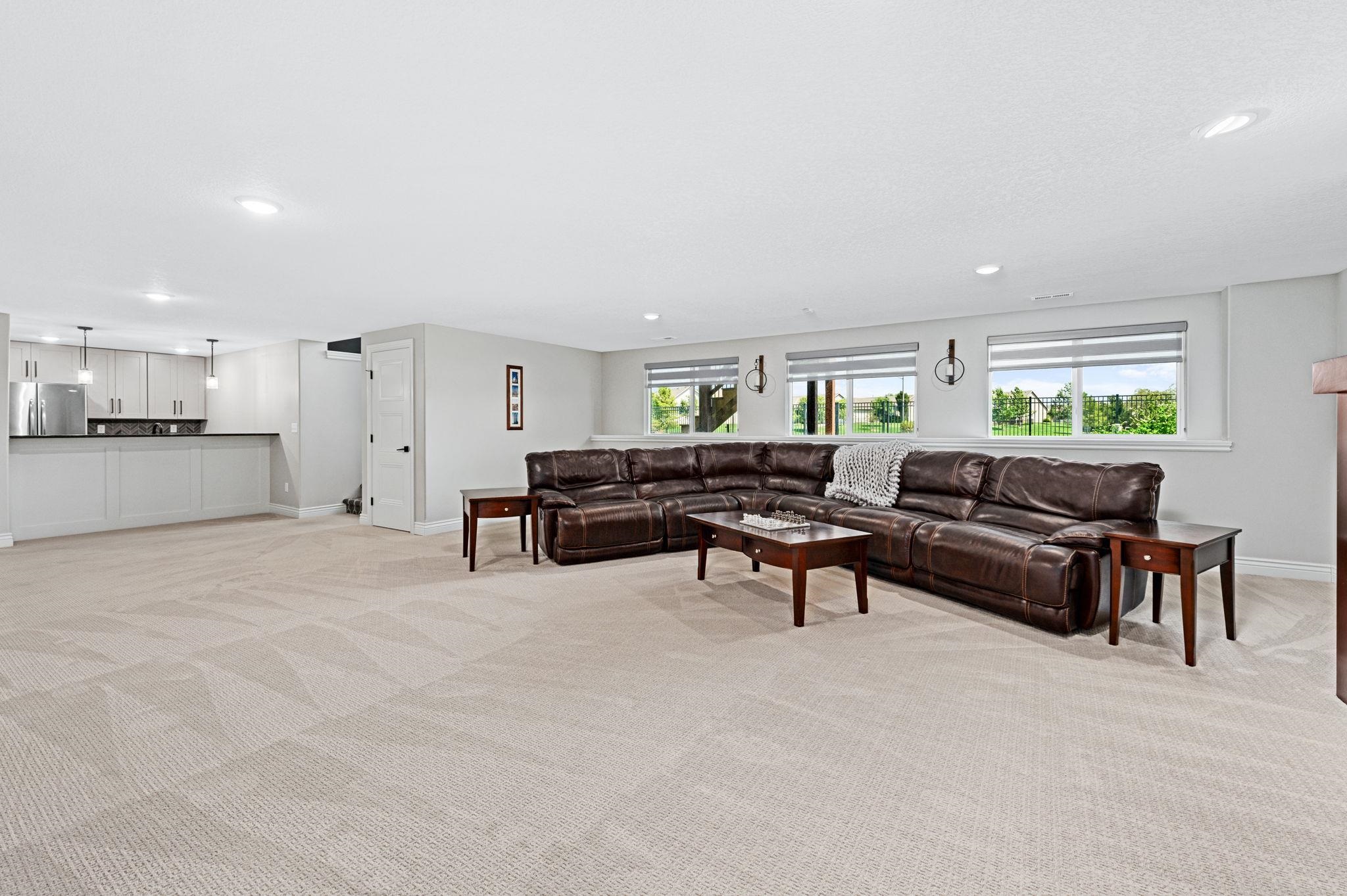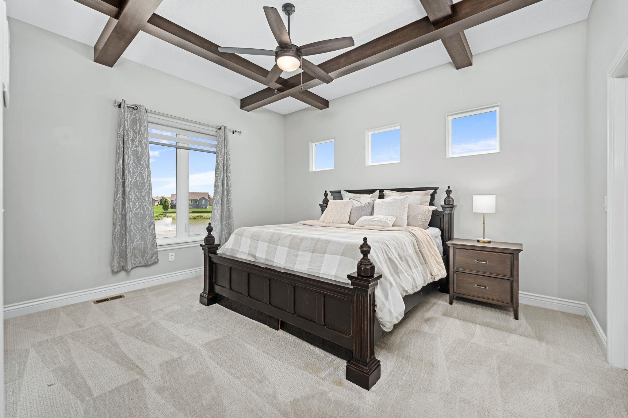 - Description: Welcome to this stunning home built in 2022, where modern luxury meets thoughtful design. This beautifully crafted home offers a spacious and inviting split-floor plan, featuring 3 generously sized bedrooms and 2 elegant baths on the main floor. As you step from the front porch and through the beautiful front door, you'll be greeted by soaring vaulted ceilings that create an open and airy atmosphere, complemented by the abundance of natural light that floods the living spaces.The heart of the home is the expansive living room, where a cozy fireplace adds warmth and charm, perfect for gathering with family and friends. Adjacent to the living area, the dining room seamlessly flows out to a covered wood deck, offering breathtaking views of a serene lake—ideal for enjoying morning coffee watching the sun rise.The chef's kitchen is a true delight, with a huge island with bar seating, granite counters, gas range, coffee bar, soft close cabinets/drawers and a large walk-in pantry. There is a convenient drop zone right off the garage, making everyday living effortless. The luxurious master suite is a private retreat, featuring a spa-like bathroom with a huge walk-in shower, double vanities with quartz counters, separate water closet with extra linen cabinets and an adjacent laundry room directly off the spacious master closet. The laundry room has a sink and extra cabinet storage. On the opposite side of the house from the master, you'll find two other bedrooms, a hall bathroom, a coat closet and 2 linen closets. A versatile flex room has limitless options for use - perfect for a home office, play room, or exercise room. The flex room has a powder bath with a linen closet. It has a walkout door to a large patio and the beautifully landscaped, fenced backyard. You will love that the yard has a sprinkler system on an irrigation well, and there is an oversized 3 car garage. Back inside, the viewout basement extends the living space, offering a cozy family room with a second fireplace, two additional bedrooms, a full bathroom, and a large wet bar. There is also a linen closet, closet under the stairs and large storage room in the basement. Fontana is conveniently located one mile from the restaurants and retail of New Market Square, but off 119th avoiding the busy traffic and noise. Fontana has a neighborhood pool and playground, and is located in the Maize School District. This property is the epitome of modern living, with every detail carefully considered for comfort, convenience, and style. Don’t miss the opportunity to make this wonderful house your forever home. Show all description