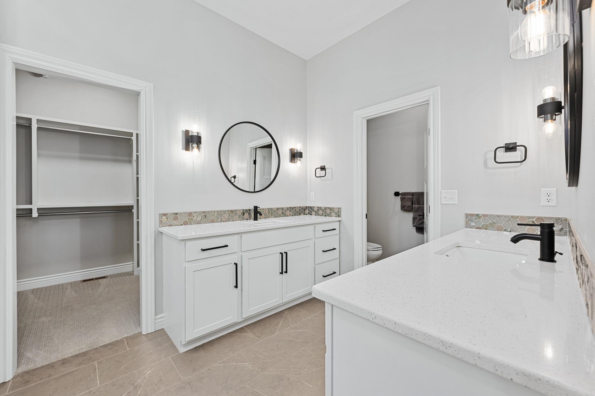 - Master Bedroom: Master Bdrm on Main Level, Split Bedroom Plan, Master Bedroom Bath, Shower/Master Bedroom, Two Sinks, Granite Counters, Water Closet