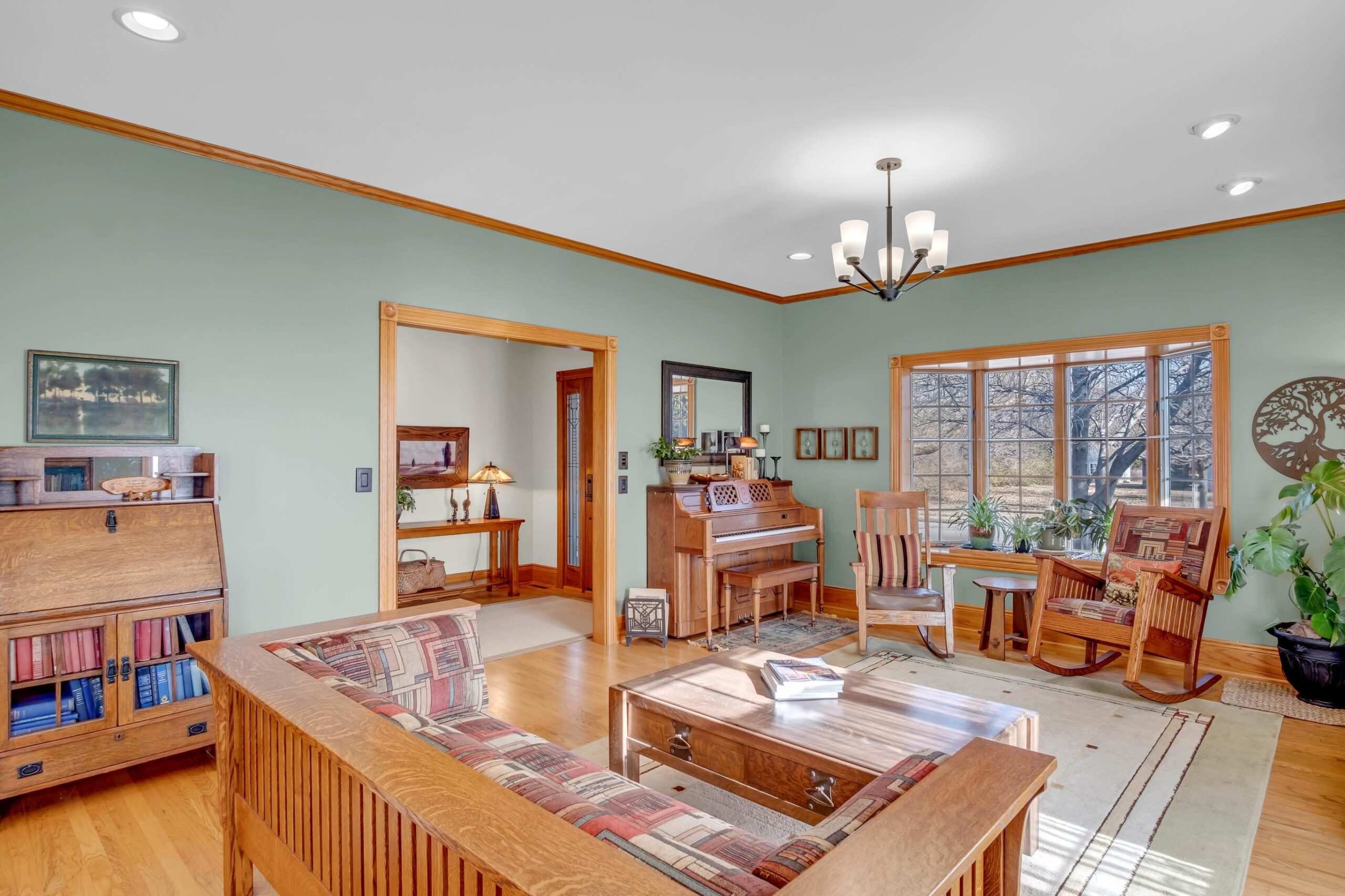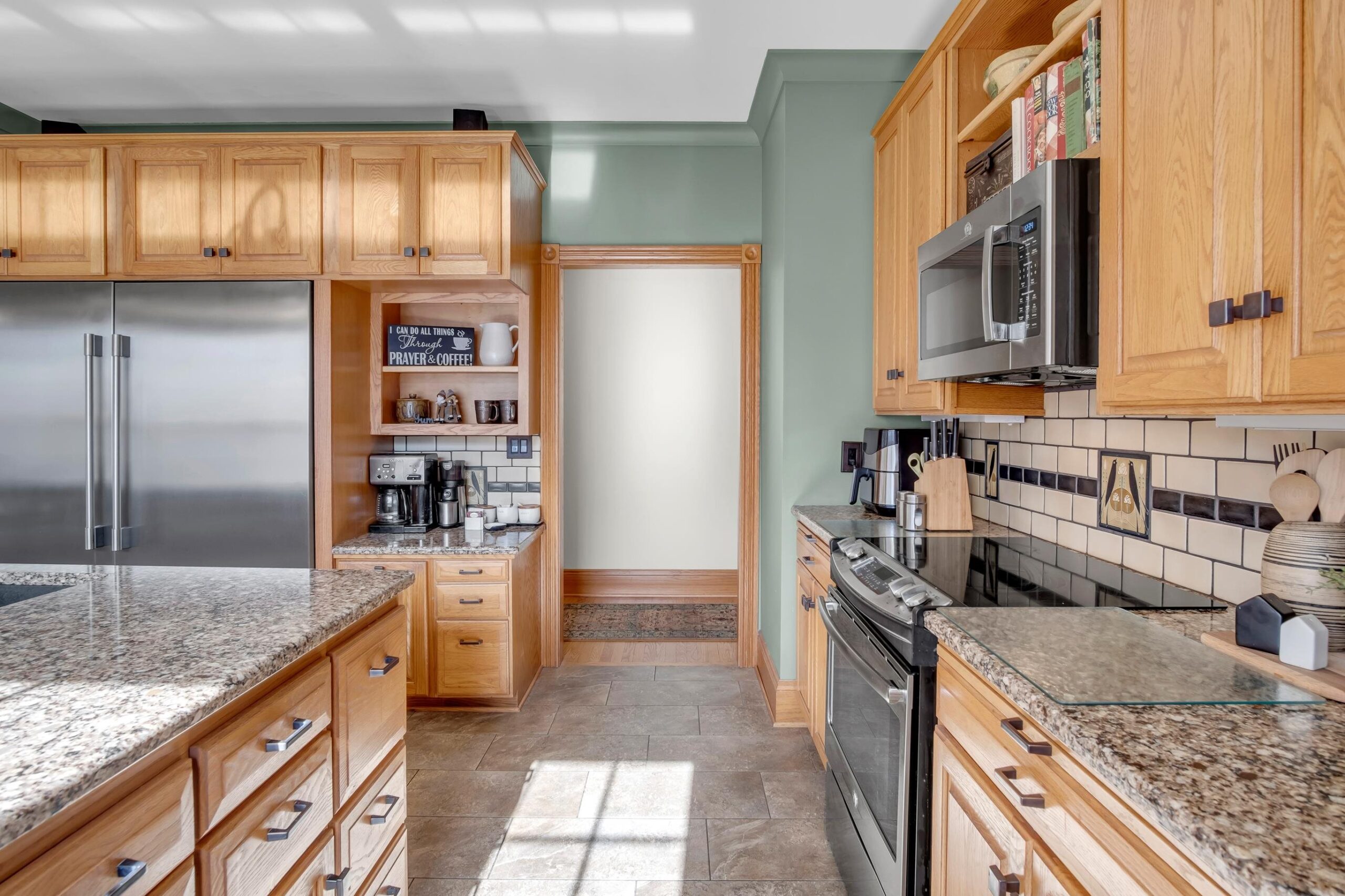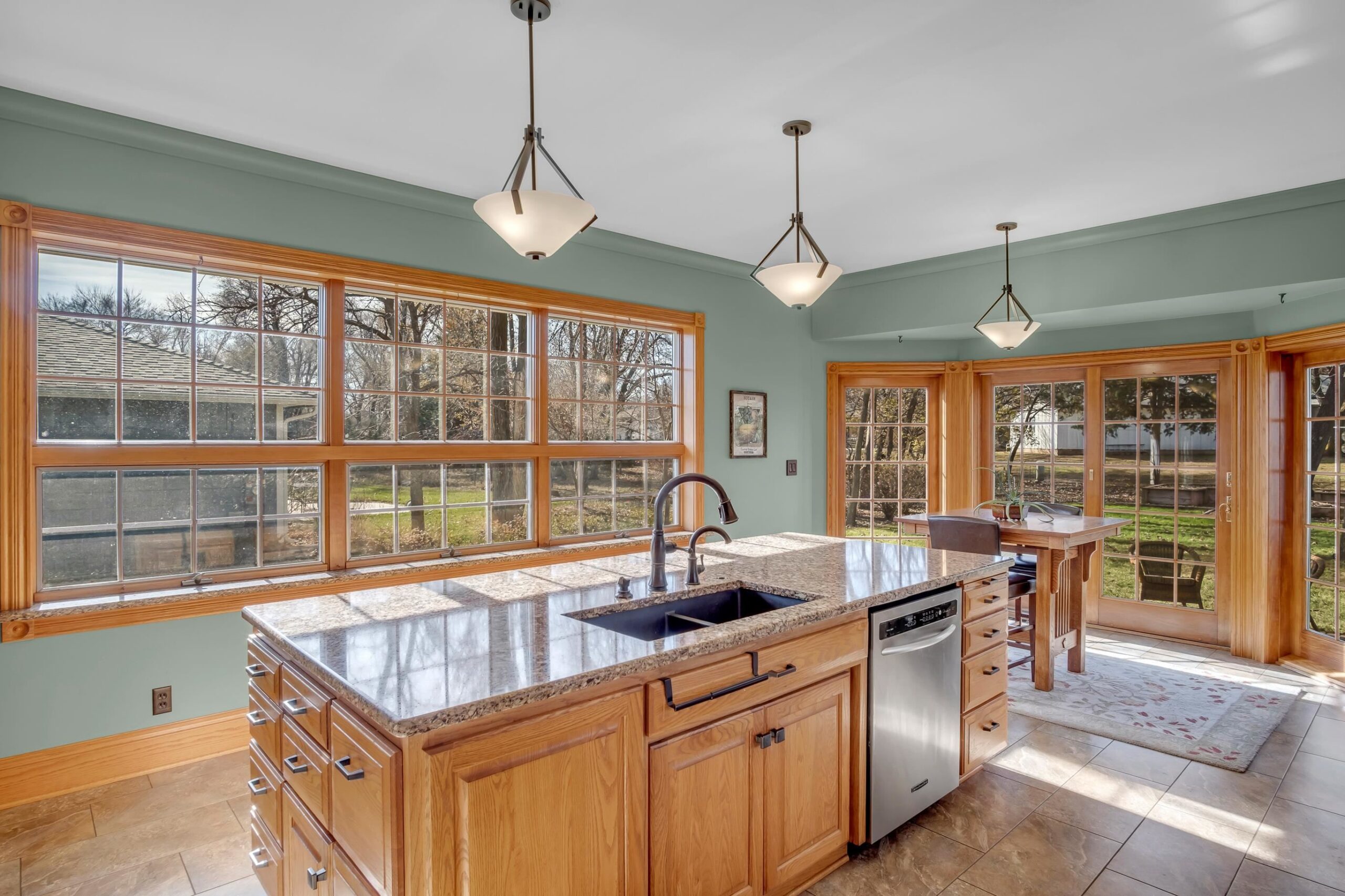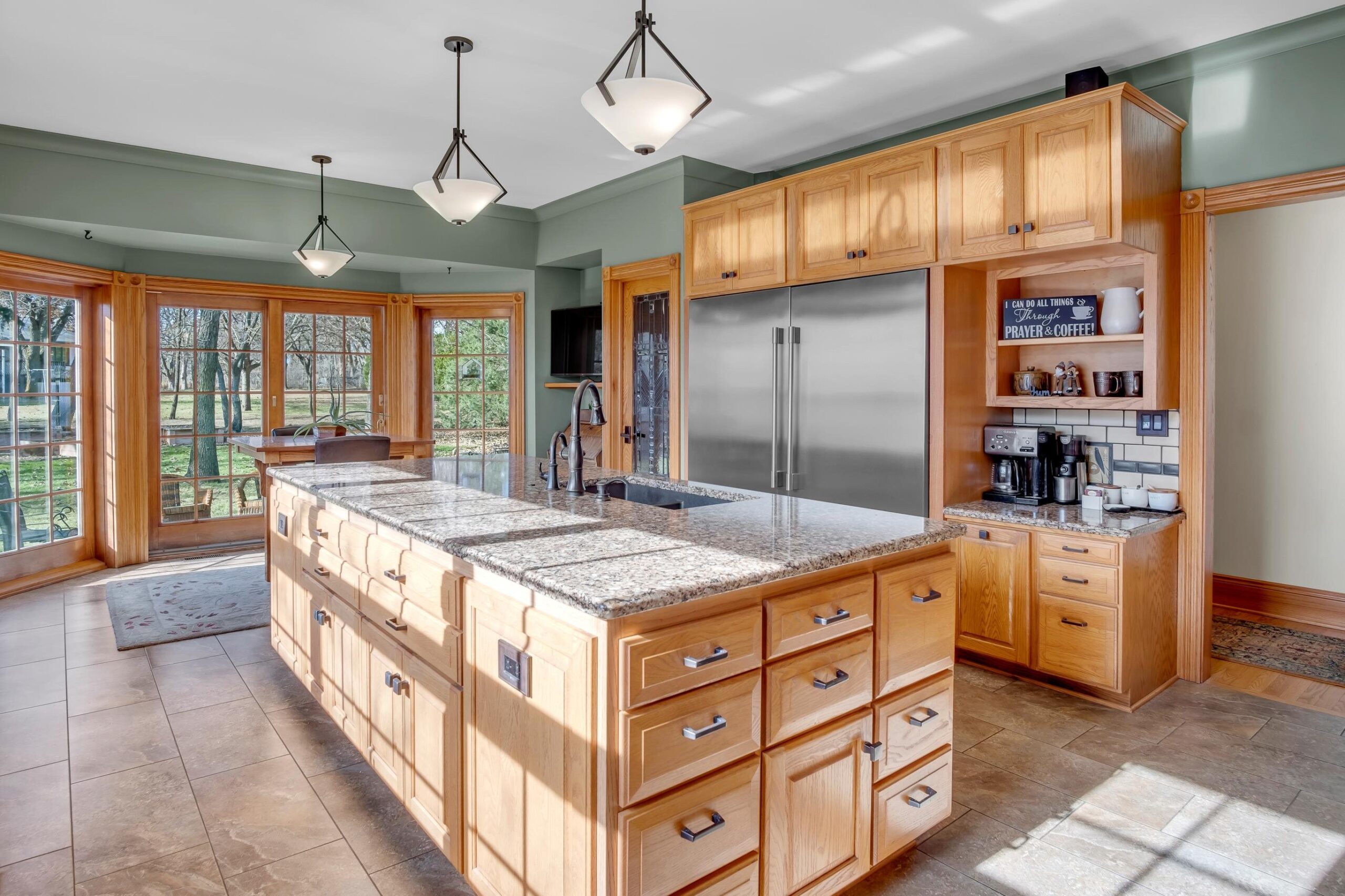 - Description: Stunning, iconic Craftsman-style home in North Newton—perfectly situated near the walking path and Bethel College campus. This beautiful property sits on a wooded lot and features raised garden beds, a brick patio, sprinkler system, and irrigation well. The garage includes a heated shop, and the charming covered wrap-around porch gives the home its storybook curb appeal. The sellers are only the second owners. Inside, you’ll find oak hardwood floors throughout the main level, pocket doors, and Anderson windows that bring in exceptional natural light. The welcoming foyer leads into the spacious living room with a bay window, perfect for entertaining. The gourmet kitchen is equipped with a commercial-size refrigerator, large island, granite countertops, coffee bar, artisan backsplash details, and a spacious walk-in pantry with a leaded-glass door. The breakfast nook opens directly to the brick patio. A formal dining room showcases a built-in china hutch with beautiful leaded-glass doors. The master suite offers private patio access, a gorgeous ensuite bath with quartz countertops, a very spacious walk-in shower, and a large walk-in closet. Two additional main-floor bedrooms feature built-in bookshelves surrounding oversized windows. The main-floor laundry room is exceptional—complete with storage, a utility sink, folding table, built-in iron and basket storage. The finished basement includes a striking family room and game room with a gas fireplace framed by built-in bookcases, plus a full kitchen and wet bar—ideal for entertaining or extended living. You’ll also find a fourth bedroom, a bonus room with closet, a full bath, and incredible storage space. With its timeless architecture, thoughtful details, and warm character, this is the storybook home you can’t help but admire every time you drive by. Show all description