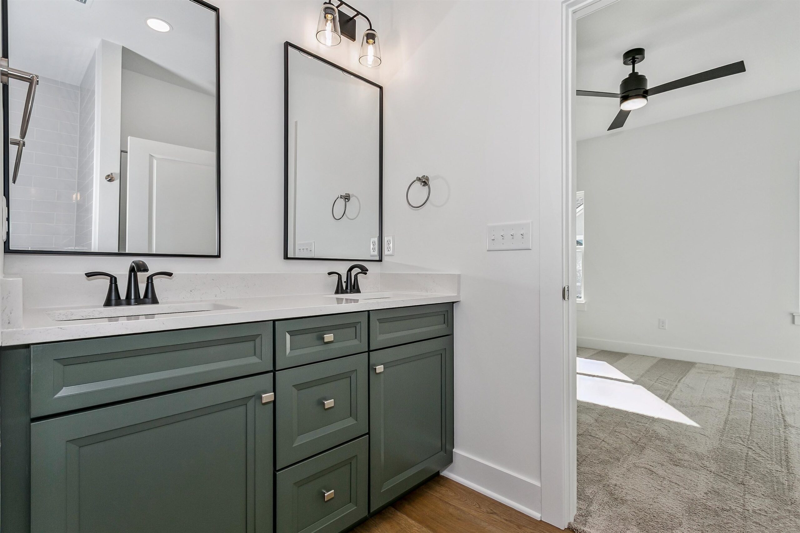 - Master Bedroom: Master Bdrm on Main Level, Split Bedroom Plan, Master Bedroom Bath, Shower/Master Bedroom, Two Sinks, Quartz Counters