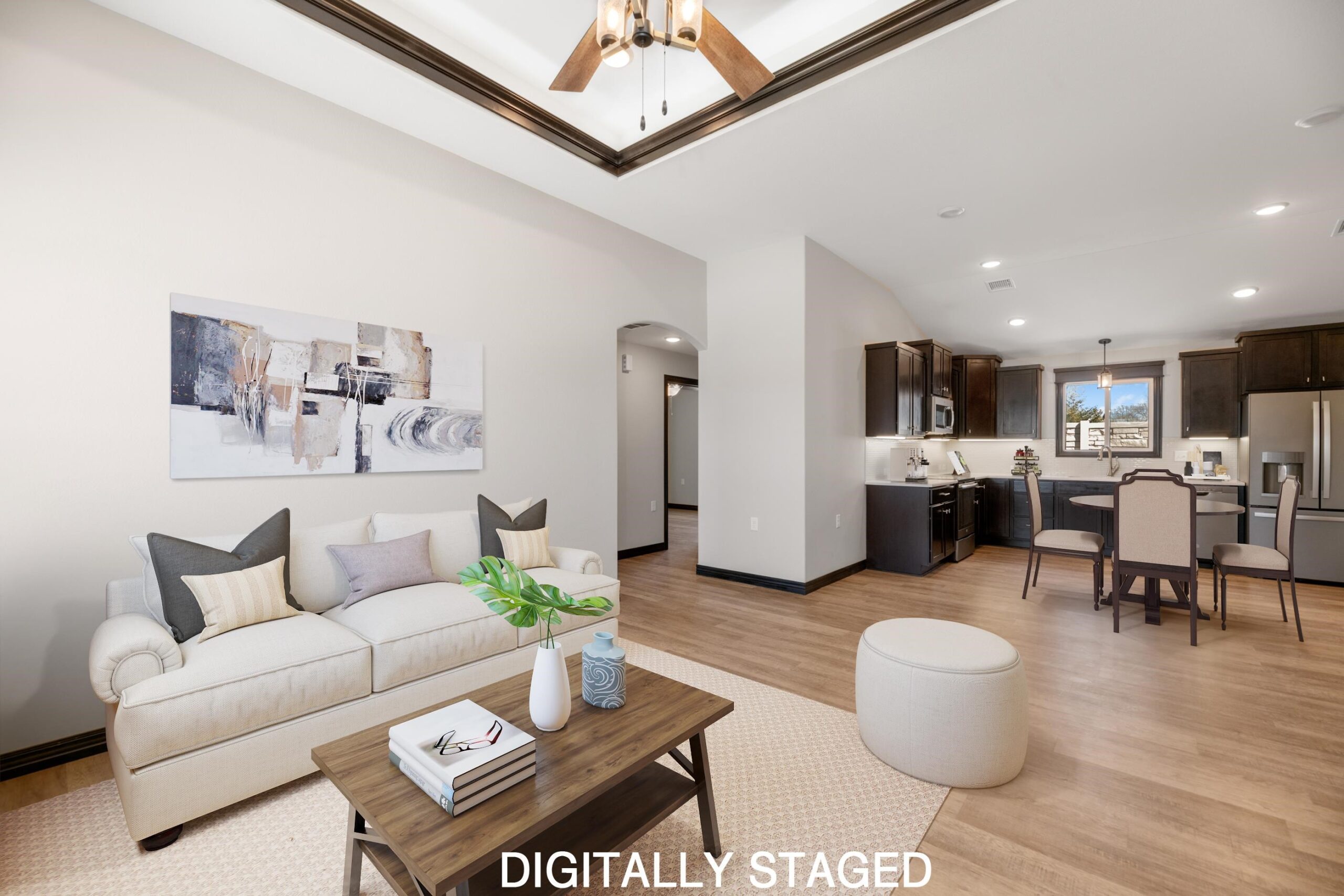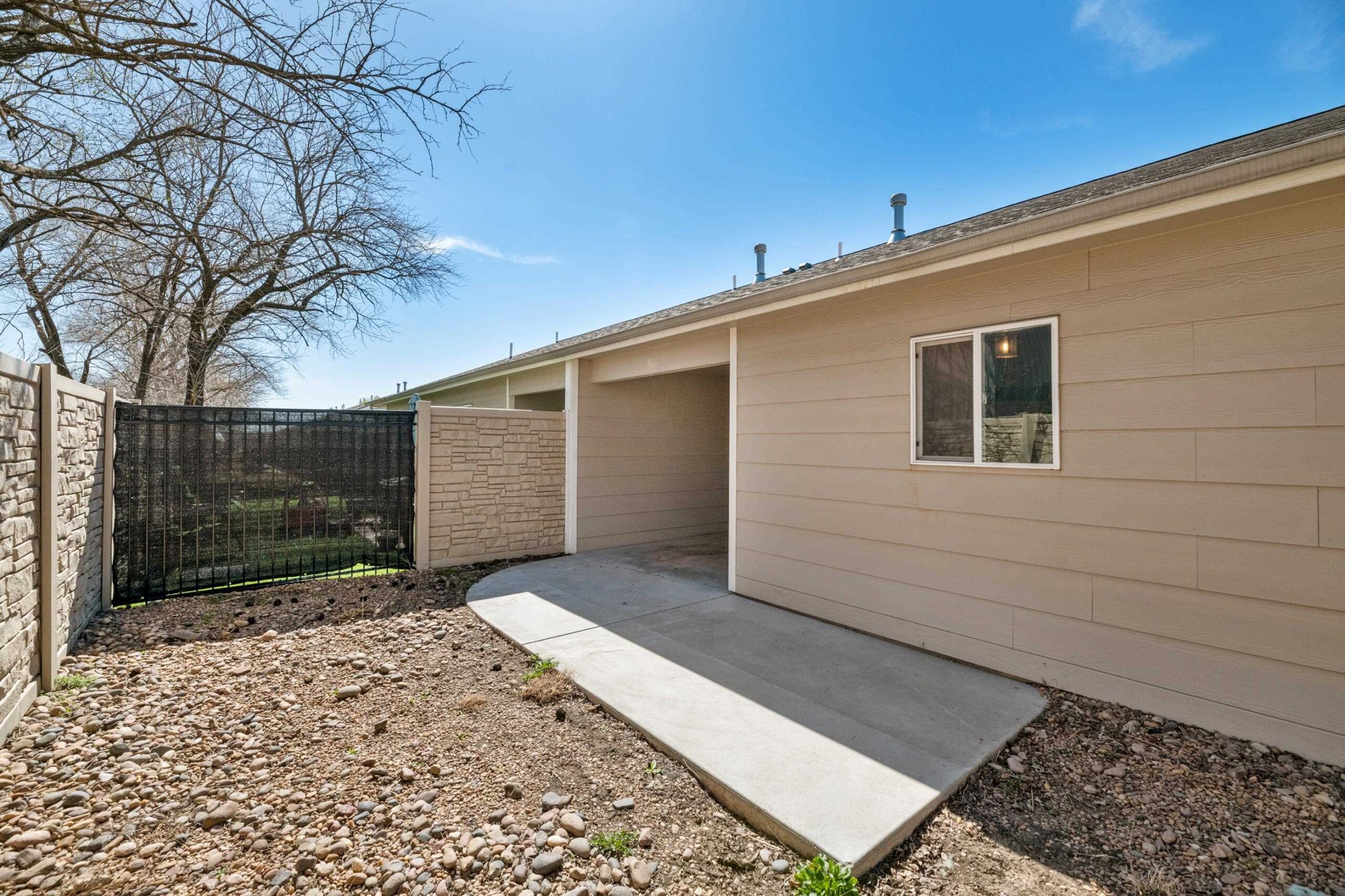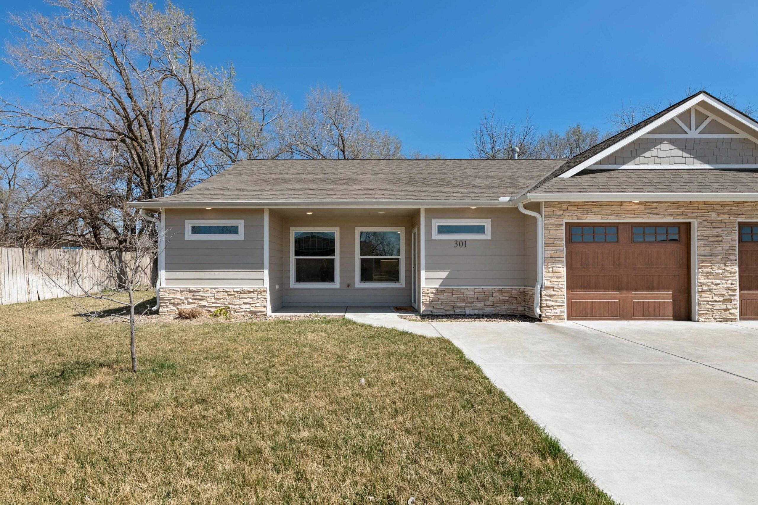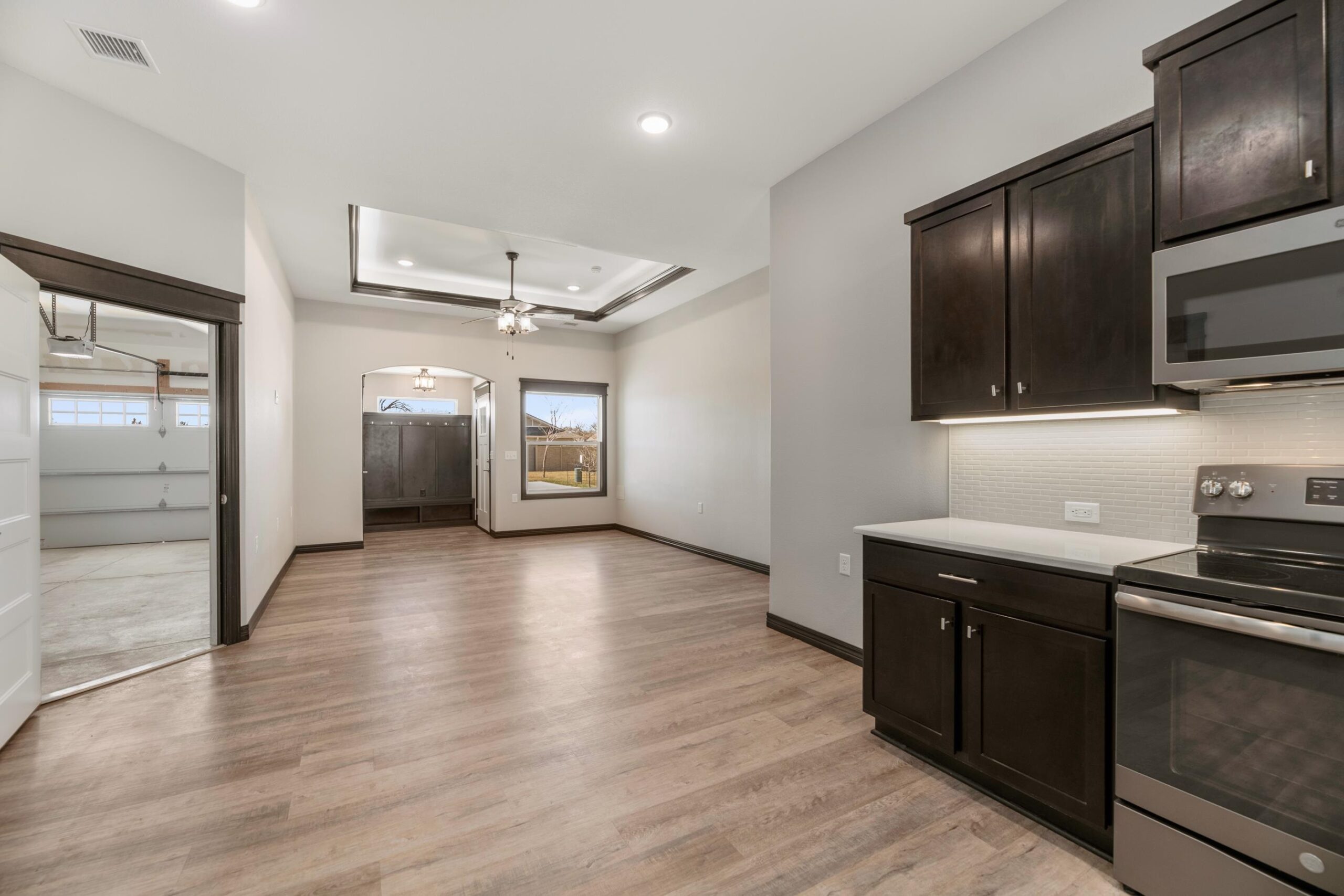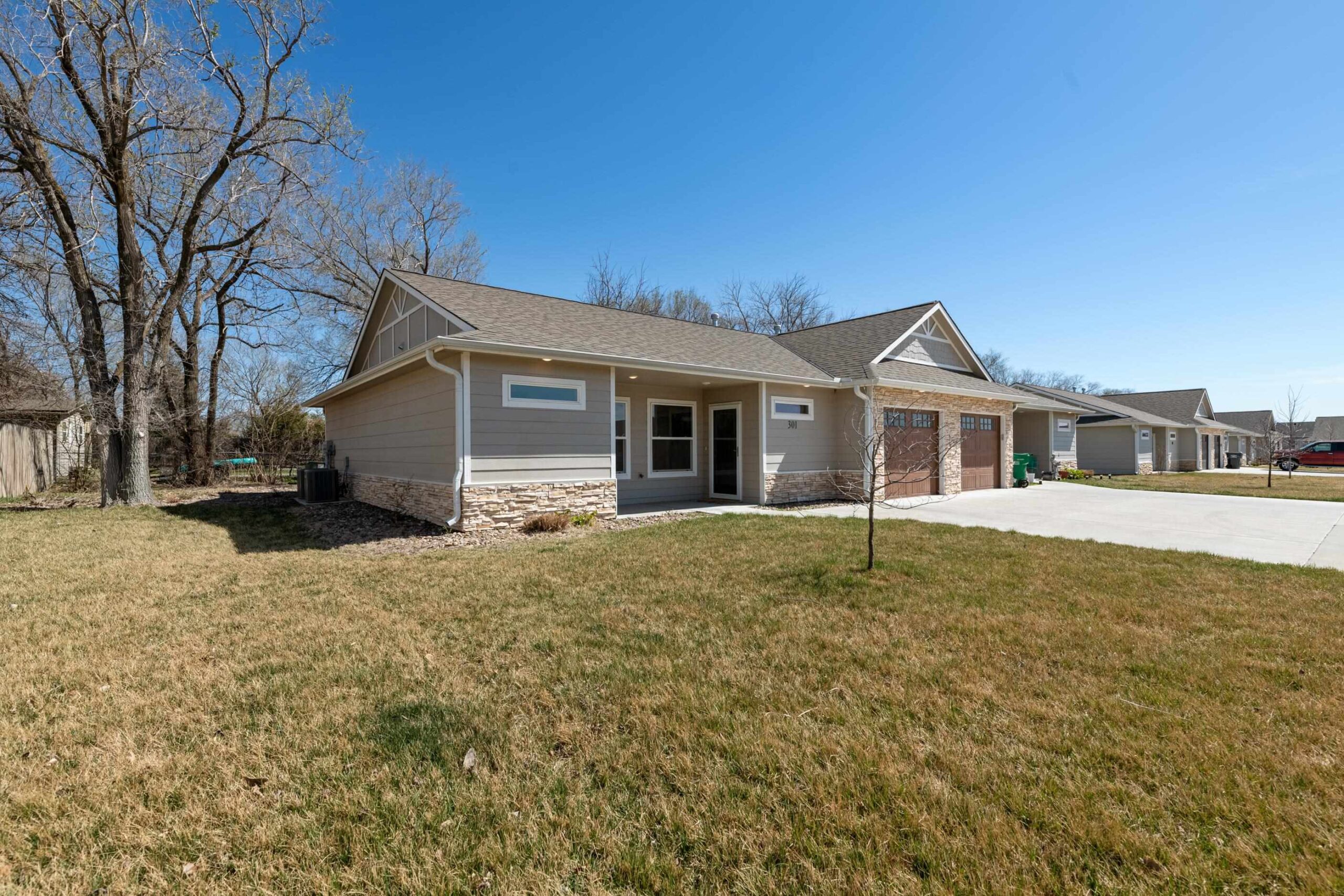 - Description: This two-bedroom, one-and-a-half bath home offers zero entry, low maintenance living. It is only 6 years old with luxury finishes including upgraded lighting, beautiful white quartz countertops and GE Slate appliances (that all stay). Neutral luxury vinyl plank floors run throughout the living and bedroom spaces. The main bathroom has tile floors and a large tile walk in shower with bench and shower wand. Both bedrooms have large walk-in closets and access to the main bathroom, offering flexibility in which room you want to use as your primary bedroom, office and more! There is an additional half bath for access from the living area and hallway. A room off the kitchen functions as the laundry room, pantry and is also a concrete safe room if needed for Kansas weather. Outside, you have a partially covered back patio, protected on 3 sides from the wind that also extends out into your fenced area, which is larger than most of the other units in the community. An exterior gas line is available if you desire to use for a grill or other outdoor amenities. Your luxurious small town living awaits, just minutes from the amenities of Andover, Derby and Wichita. The HOA covers lawn care, snow removal, exterior maintenance, AND exterior insurance. NO SPECIAL TAXES. Schedule your showing today! Now priced below county appraisal and recent 3rd party appraisal. Show all description