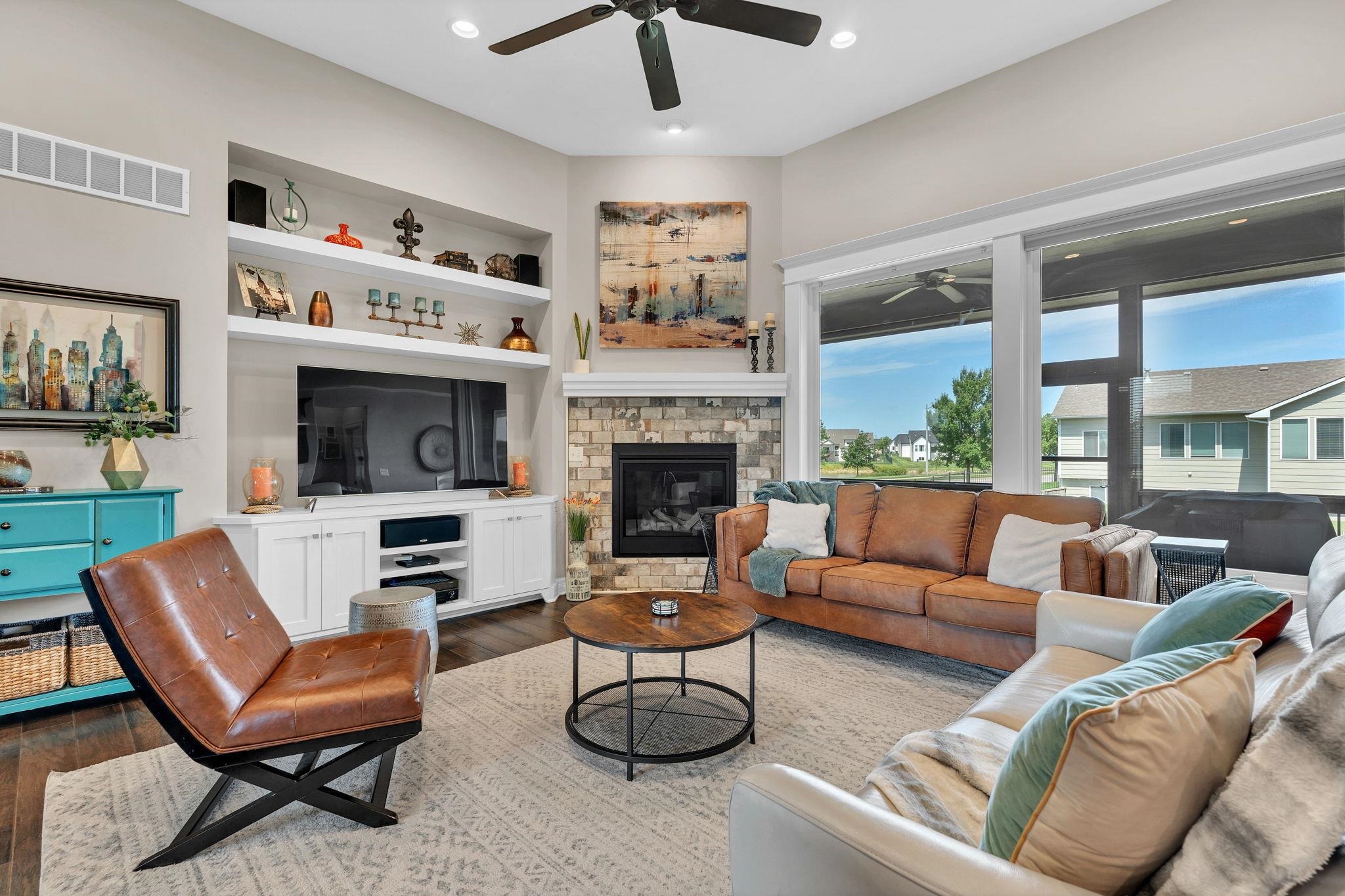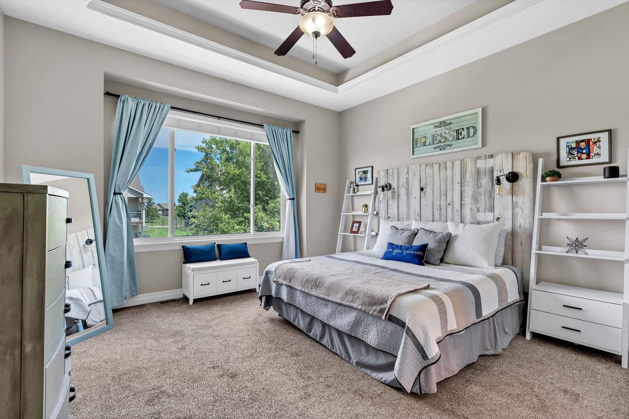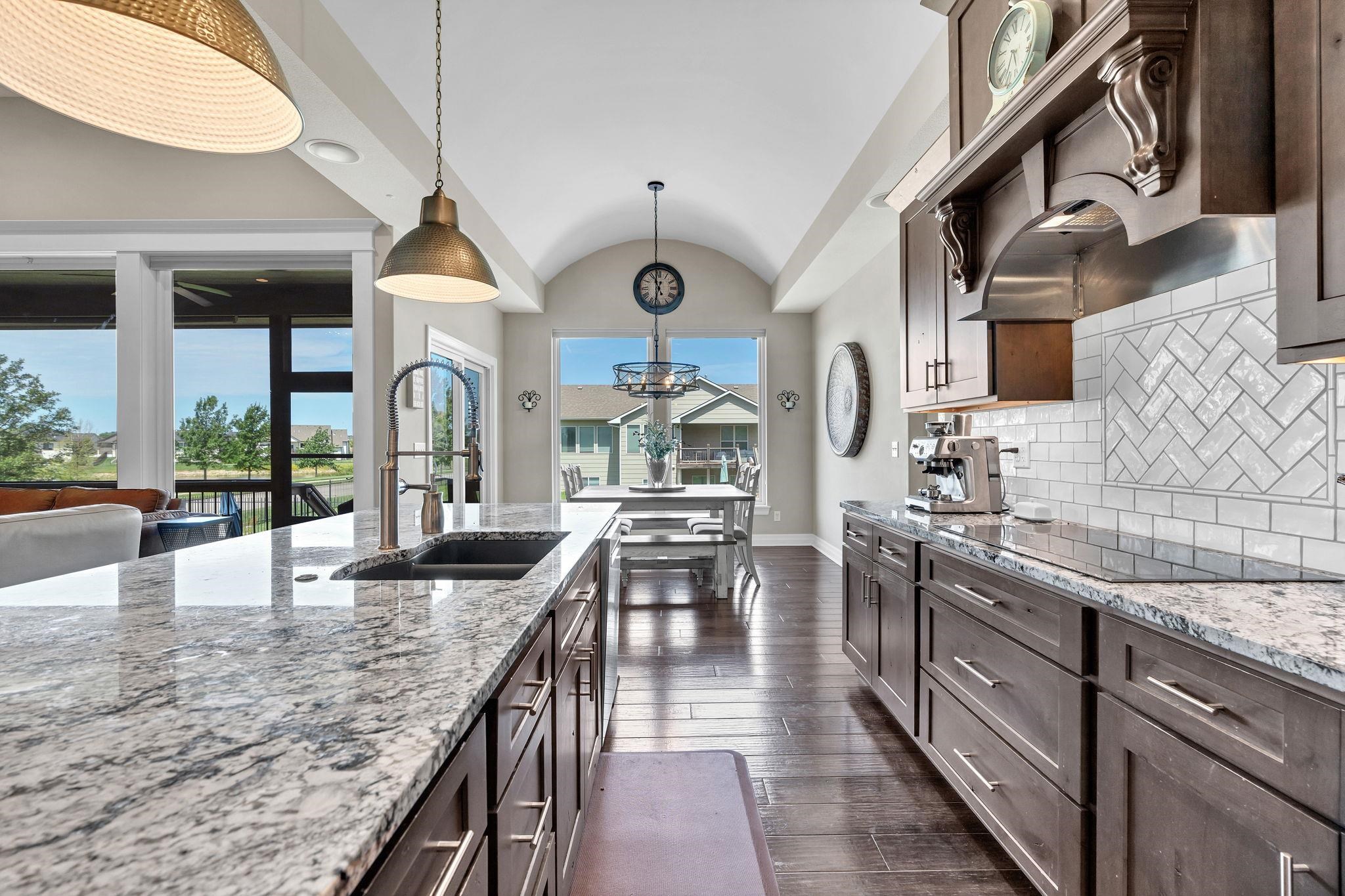 - Description: Welcome to 3203 N. Chambers, a stunning showplace in the highly sought-after Fontana neighborhood. Perfectly positioned on a premium corner lot with serene water views, this exquisite home offers the ultimate in luxury, comfort, and function—including a rare oversized 4-car attached garage. Step inside to discover an impressive open floor plan designed for effortless entertaining. The vaulted living room showcases elegant recessed lighting, expansive windows, a cozy gas fireplace with a stone surround, and a sleek built-in entertainment center. The gourmet kitchen is a dream, featuring an arched barrel ceiling, oversized granite island with breakfast bar, tile backsplash, professional-grade appliances, cushion-close cabinetry, and built-in speakers. A walk-through pantry with granite countertops adds function and storage, while the formal dining area—with its barrel ceiling, panoramic windows, and access to the screened-in deck—is the perfect place to gather. The main floor primary suite is a peaceful retreat, offering plush carpet, large windows, trayed ceiling with fan, and a spa-inspired en suite bath. Enjoy a luxurious walk-in tile shower with dual shower heads, a relaxing soaker tub, quartz double vanity, and a spacious California-style walk-in closet with custom built-ins and direct access to the laundry room with folding counter and extra storage. A rare find—this home features two guest suites on the main floor, each with its own private bath and spacious walk-in closet, offering comfort and privacy for family or guests. A versatile upstairs bonus room offers endless possibilities—think home office, playroom, gym, or guest bedroom. The finished basement was built for entertaining, complete with stained concrete floors, a spacious rec area, view-out windows, patio access, a stylish wet bar with dishwasher and beverage fridge, plus two generous bedrooms, a full bath, and ample storage. Outdoors, enjoy peaceful mornings and vibrant evenings on the screened-in deck with fireplace, TV area, and dual ceiling fans—or relax on the spacious patio overlooking the wrought-iron fenced yard and tranquil water view. This home truly has it all—space, style, and stunning scenery! Show all description