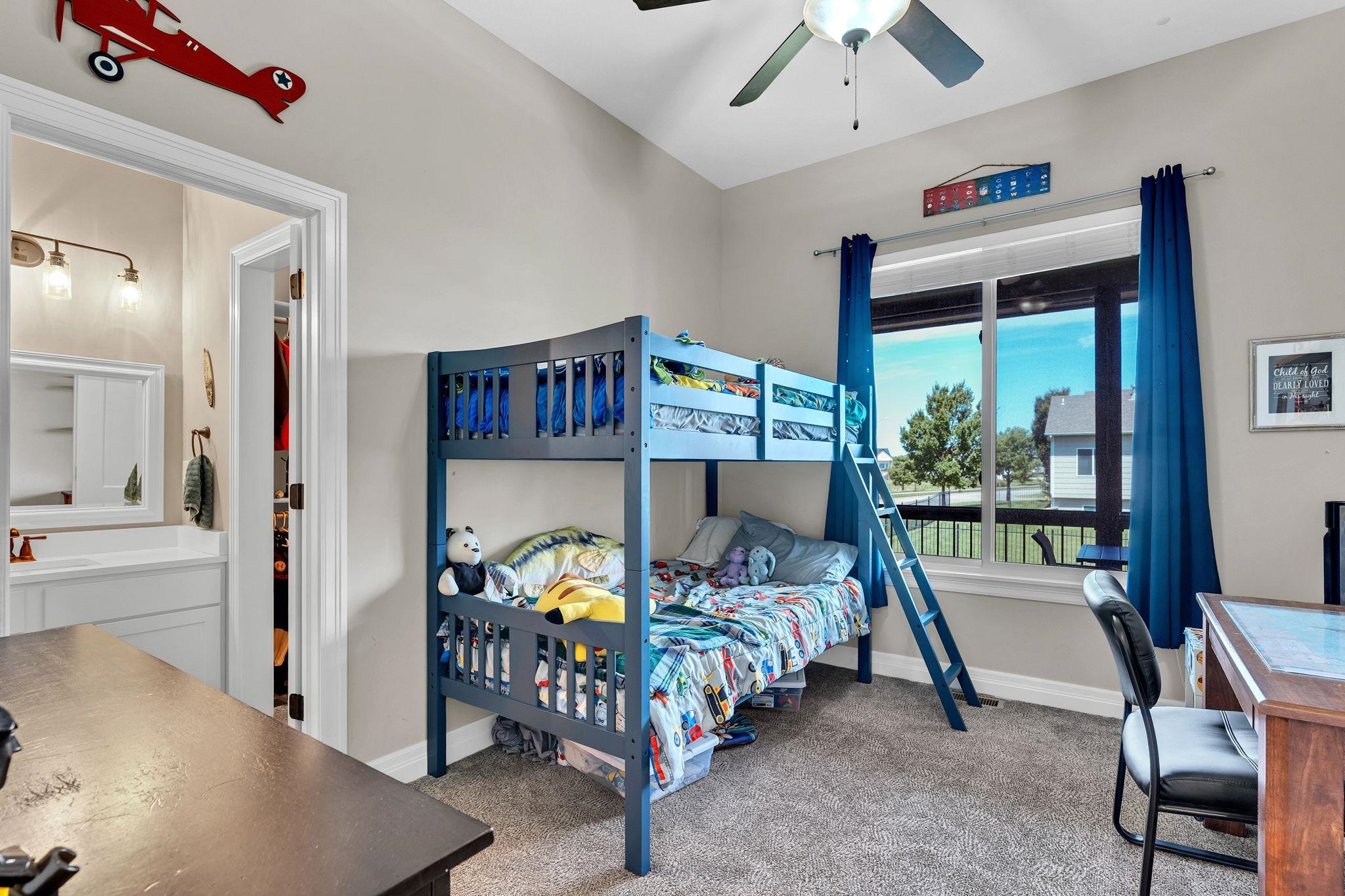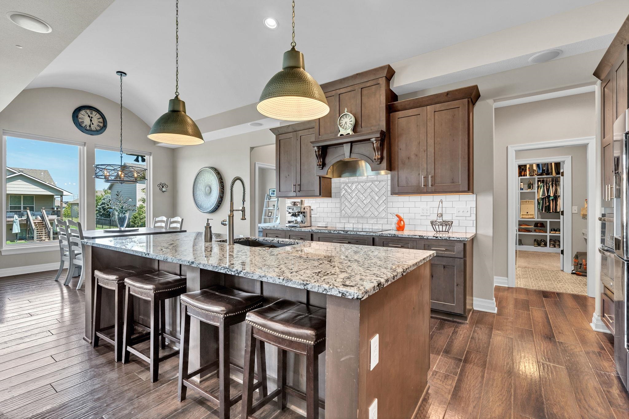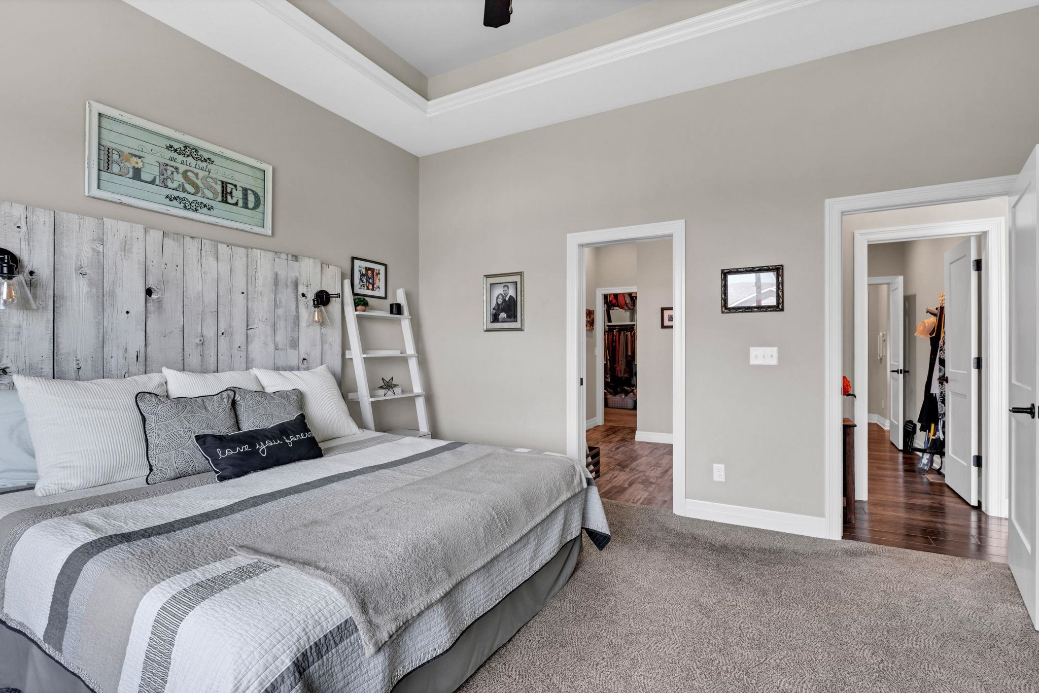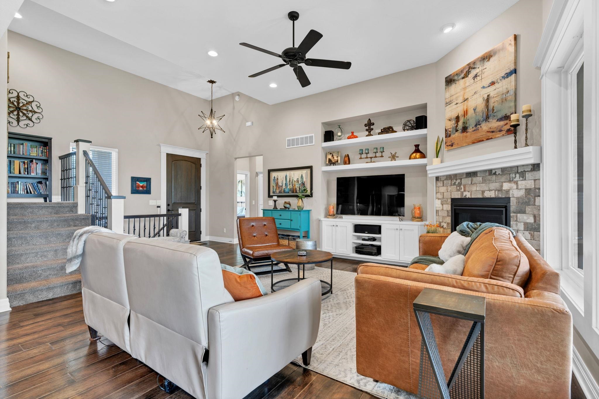 - Description: Welcome to 3203 N. Chambers, a stunning showplace in the highly sought-after Fontana neighborhood. Perfectly positioned on a premium corner lot with serene water views, this exquisite home offers the ultimate in luxury, comfort, and function—including a rare oversized 4-car attached garage. Step inside to discover an impressive open floor plan designed for effortless entertaining. The vaulted living room showcases elegant recessed lighting, expansive windows, a cozy gas fireplace with a stone surround, and a sleek built-in entertainment center. The gourmet kitchen is a dream, featuring an arched barrel ceiling, oversized granite island with breakfast bar, tile backsplash, professional-grade appliances, cushion-close cabinetry, and built-in speakers. A walk-through pantry with granite countertops adds function and storage, while the formal dining area—with its barrel ceiling, panoramic windows, and access to the screened-in deck—is the perfect place to gather. The main floor primary suite is a peaceful retreat, offering plush carpet, large windows, trayed ceiling with fan, and a spa-inspired en suite bath. Enjoy a luxurious walk-in tile shower with dual shower heads, a relaxing soaker tub, quartz double vanity, and a spacious California-style walk-in closet with custom built-ins and direct access to the laundry room with folding counter and extra storage. A rare find—this home features two guest suites on the main floor, each with its own private bath and spacious walk-in closet, offering comfort and privacy for family or guests. A versatile upstairs bonus room offers endless possibilities—think home office, playroom, gym, or guest bedroom. The finished basement was built for entertaining, complete with stained concrete floors, a spacious rec area, view-out windows, patio access, a stylish wet bar with dishwasher and beverage fridge, plus two generous bedrooms, a full bath, and ample storage. Outdoors, enjoy peaceful mornings and vibrant evenings on the screened-in deck with fireplace, TV area, and dual ceiling fans—or relax on the spacious patio overlooking the wrought-iron fenced yard and tranquil water view. This home truly has it all—space, style, and stunning scenery! Show all description