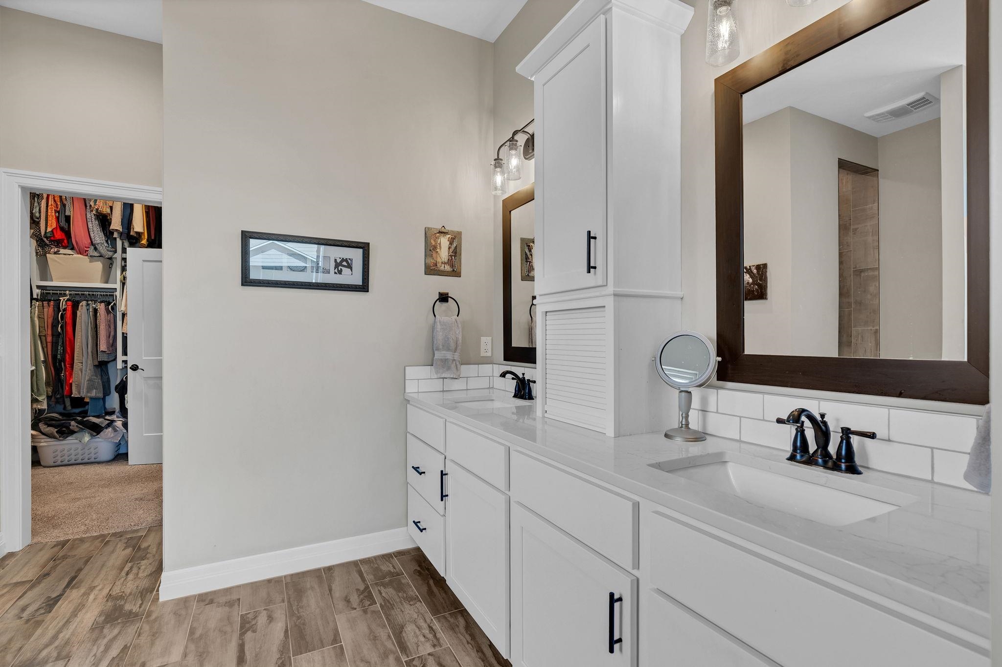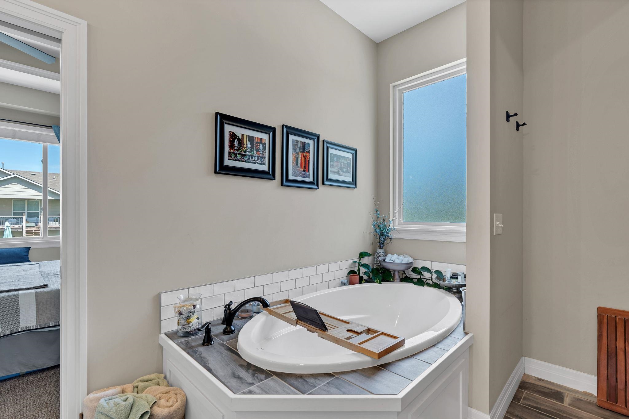 - Master Bedroom: Master Bdrm on Main Level, Split Bedroom Plan, Master Bedroom Bath, Sep. Tub/Shower/Mstr Bdrm, Two Sinks, Quartz Counters