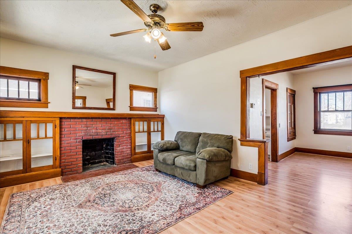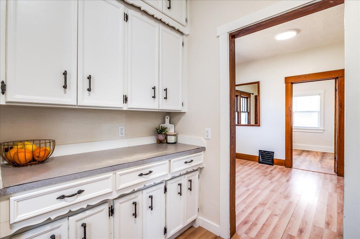 - Description: Welcome to this charming and updated cottage in the heart of Hutchinson! This cozy home features main-floor living with two freshly painted bedrooms and new flooring. A beautifully updated full bathroom connects the two bedrooms for convenience. The spacious living room, complete with a fireplace and built-in shelving, provides a perfect space to entertain or unwind. Adjacent to the living room is a separate dining area, ideal for meals or gatherings. The kitchen comes equipped with appliances that are included. The full basement is partially finished, offering endless possibilities to personalize and expand the living space. Outside you'll find low maintenance vinyl siding and a large backyard with a firepit area for outdoor relaxation, plus alley access for additional parking. Don't miss out on this inviting home! Show all description