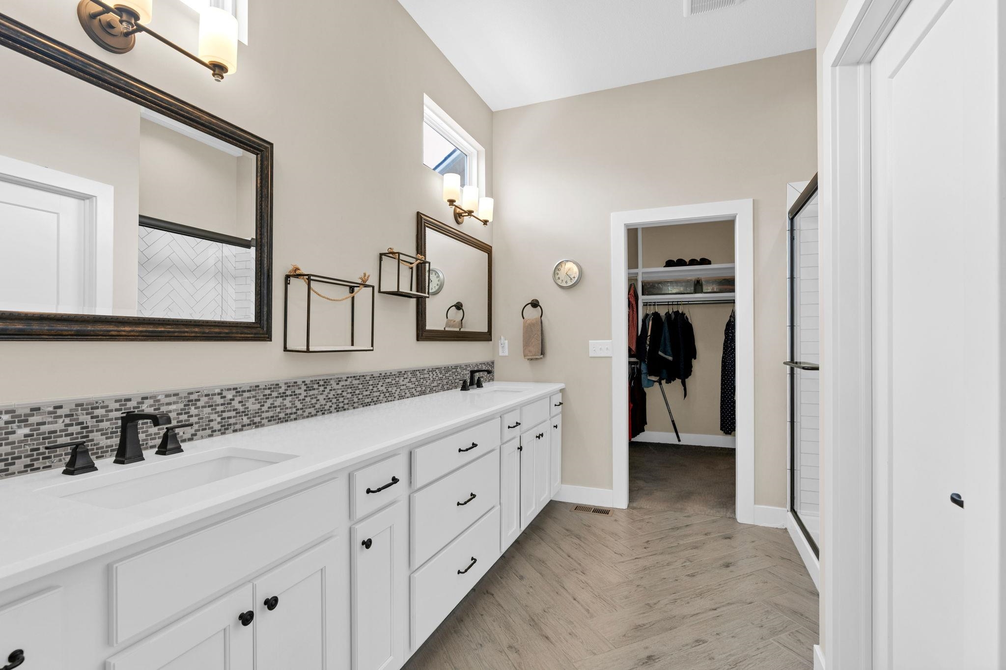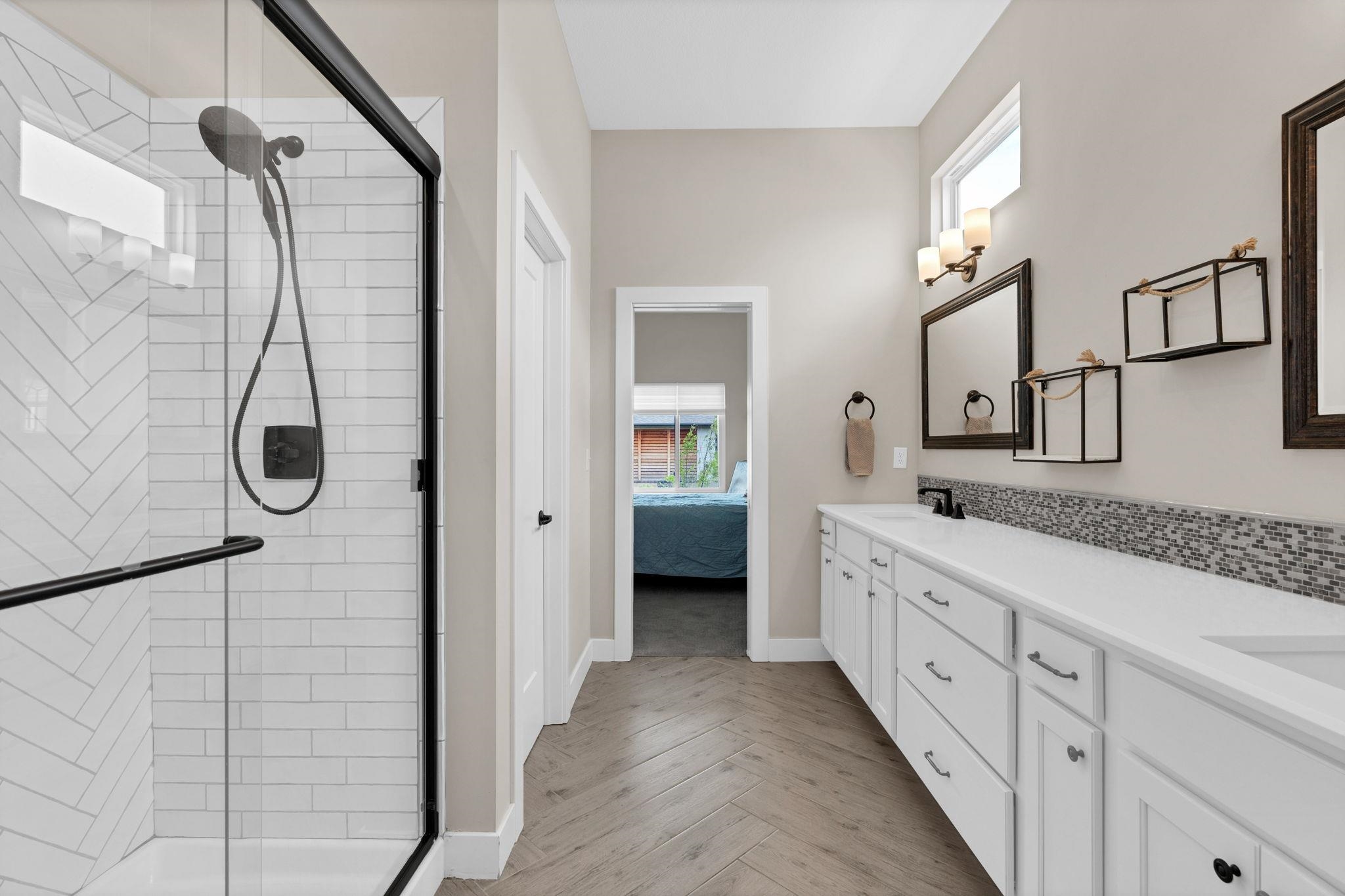 - Master Bedroom: Master Bdrm on Main Level, Split Bedroom Plan, Master Bedroom Bath, Shower/Master Bedroom, Two Sinks, Granite Counters