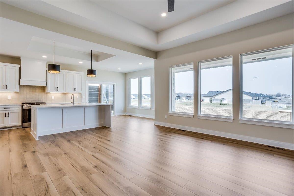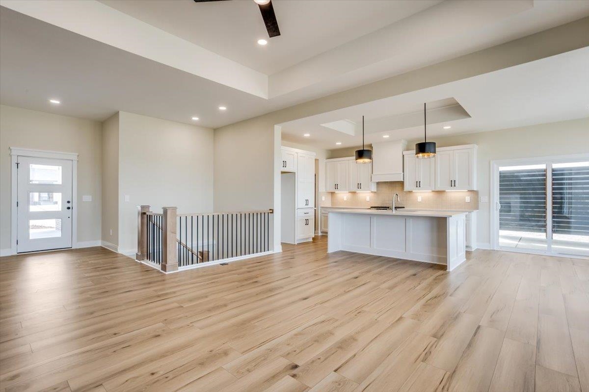 - Description: Welcome to this beautifully designed 5-bedroom, 3-bathroom Florence plan offering the perfect blend of modern convenience and comfortable living. With zero-entry access, this home provides easy, step-free entry—ideal for all ages. The open-concept layout features a spacious living area, gourmet kitchen, walk-in pantry and a dining space perfect for entertaining. The primary suite boasts a luxurious en-suite bath and a generous walk-in closet. Two additional bedrooms and a full bath complete the main level. Downstairs, the daylight basement offers even more space to enjoy, with a large family room, walk up wet bar, two additional bedrooms, a full bath, and plenty of storage. Outside, relax on the covered patio, perfect for morning coffee or evening gatherings. With a prime location and thoughtful design, this home is truly a must-see! Fontana offers a zero-entry pool with splash pad, playground, walking paths and lakes. It's also minutes away from New Market Square for all your shopping and dining needs. A $175 mailbox key fee is collected at closing. General and special taxes are estimated and not guaranteed. Specials are estimated to be about $162.00/month for 20 years. LOWER SPECIALS, LOWER TAXES AND MAIZE SCHOOLS. All information deemed reliable and not guaranteed. OPEN THURS - MON 1:00-5:00 OR ANYTIME BY APPOINTMENT. Show all description