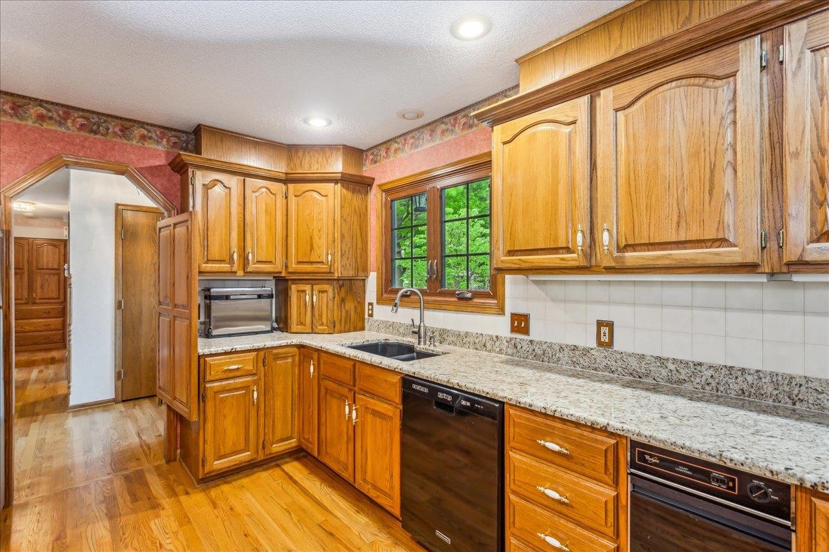 - Description: One owner home in excellent condition. Built with many above average extras. Tremendous amount of cabinets in the kitchen, granite counters and hardwood floors. Half bath and laundry right by kitchen. Eating area at end of kitchen with door to covered deck. Formal dining and a large living room with vaulted ceiling. Floors in the eating area, kitchen, entry and hallway to bedrooms are all hardwood. Mammoth family room in the basement, a craft/exercise room and tons and tons of storage areas! Owners took extremely good care of this home and it is definitely move in ready. Show all description