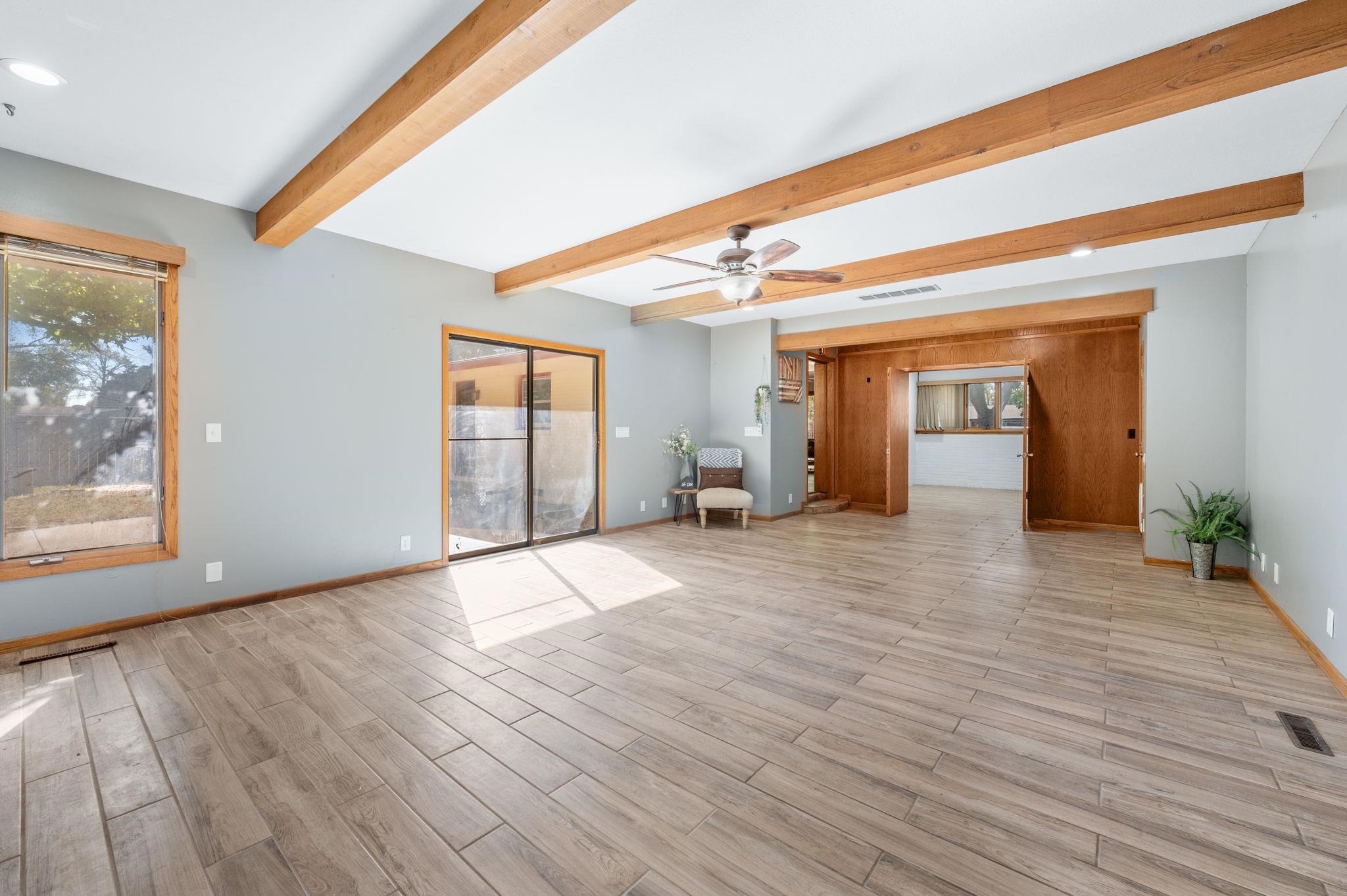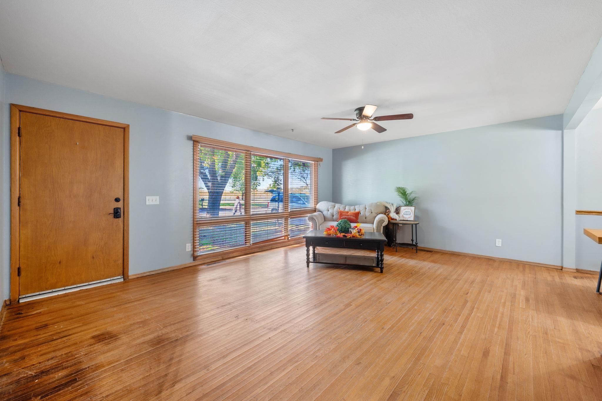 - Description: Welcome home to this spacious ranch-style home offering 2, 022 square feet of main-level living on the north Wichita near 29th and I-235. This charming property features original hardwood floors, a large living room, and an huge family room with a cozy fireplace — perfect for gatherings or relaxing nights in. With four bedrooms and one and a half bathrooms, there’s plenty of space for family, guests, or a home office. Step outside to enjoy the huge fenced backyard complete with a large storage shed and a great back patio, ideal for outdoor entertaining or quiet evenings. Conveniently located with quick highway access, this home combines comfort, character, and functionality in one desirable package. Show all description