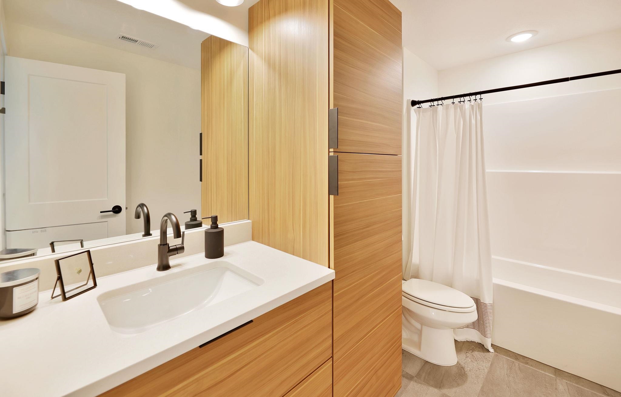 - Master Bedroom: Master Bdrm on Main Level, Split Bedroom Plan, Master Bedroom Bath, Shower/Master Bedroom, Tub/Master Bedroom, Two Sinks, Quartz Counters
