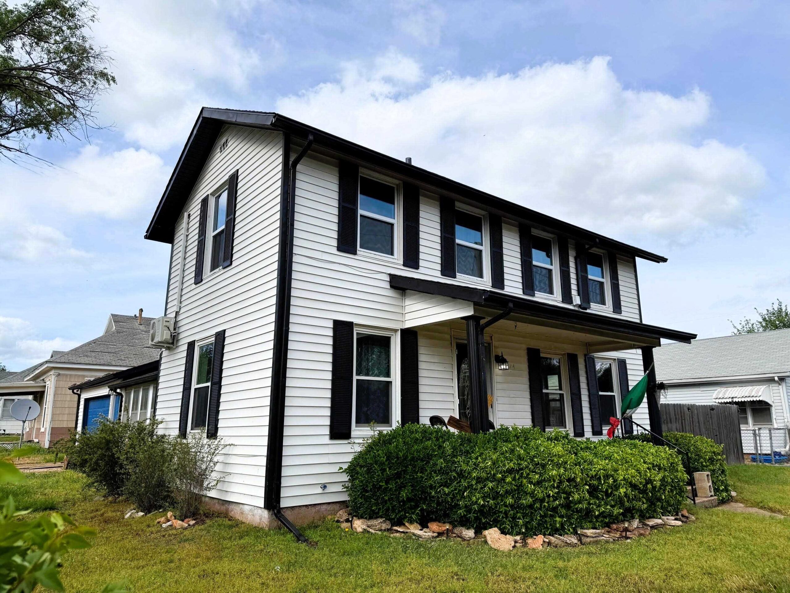 - Description: Introducing a beautifully updated two-story home located on a corner lot in historic Caldwell, Kansas. This charming 4-bedroom, 2.5-bath residence offers a perfect blend of classic character and modern updates throughout. The open concept is spacious while the welcoming living space features a cozy fireplace with a blower, and a large, updated kitchen boasting abundant countertop space, modern open shelving, and generous cabinet storage. The bathrooms have been stylishly updated, and upstairs you'll appreciate mini-split heating and cooling systems in each room for energy-efficient, customized comfort. Other upgrades include a newer hot water heater, roof, windows, fresh paint, and luxury vinyl plank flooring for a polished, contemporary feel. An over-sized two-car attached garage provides convenience, while the wood privacy-fenced backyard offers the perfect space for relaxing or entertaining. This gem is a must-see and just one block from the school! Show all description