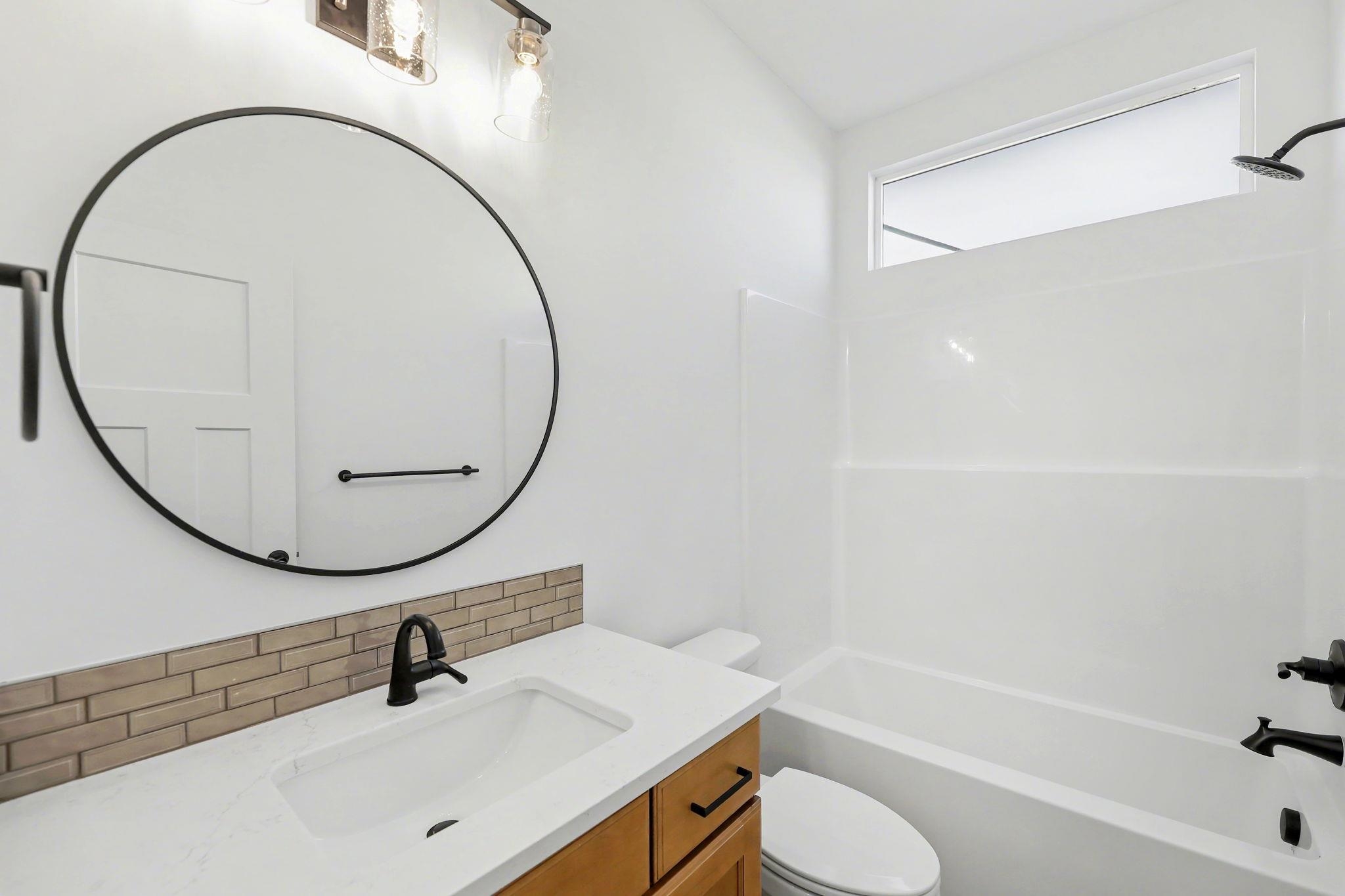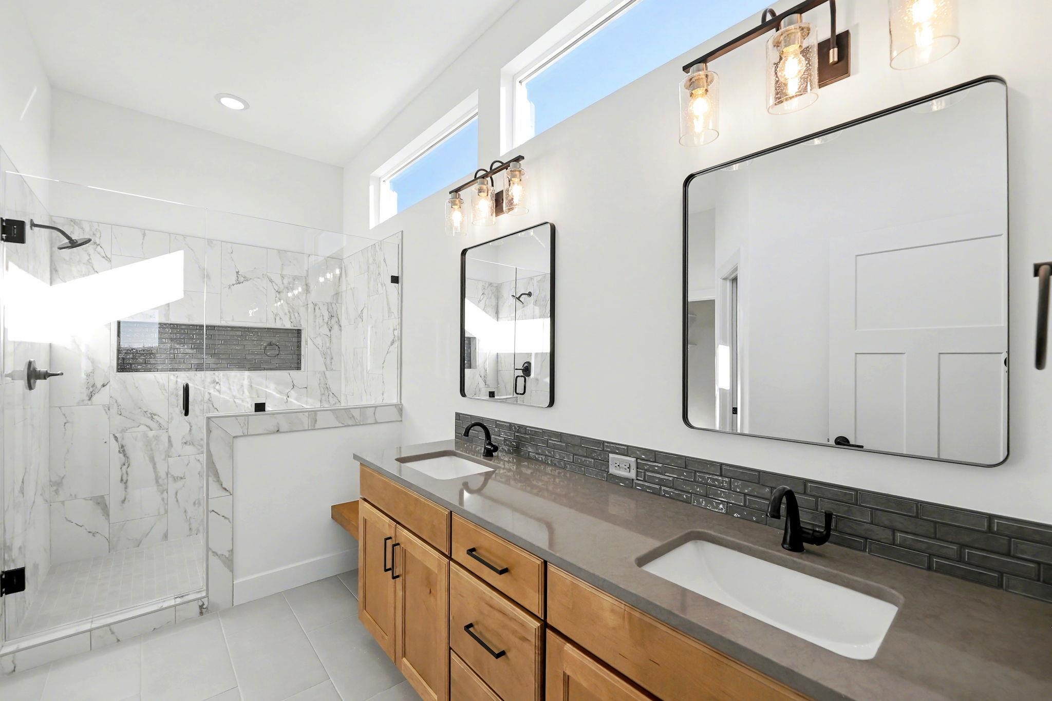 - Master Bedroom: Master Bdrm on Main Level, Split Bedroom Plan, Shower/Master Bedroom, Two Sinks, Quartz Counters