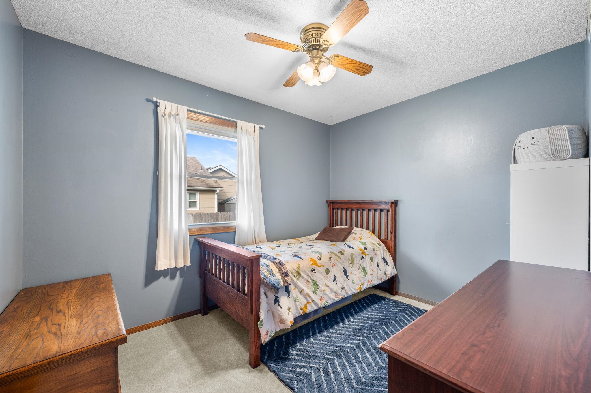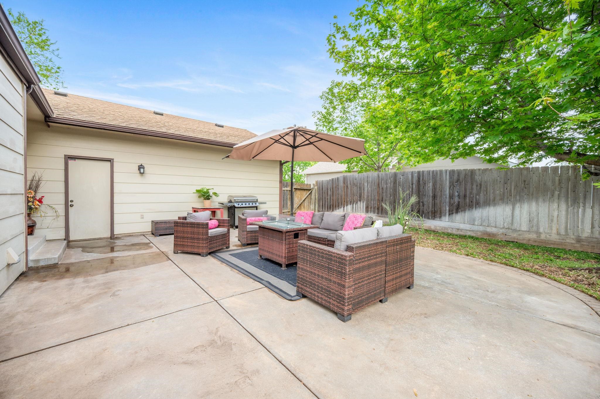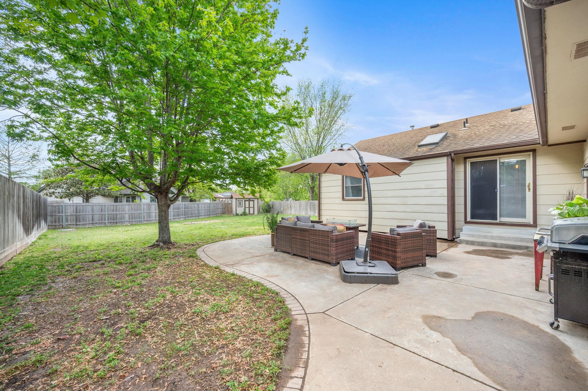 - Description: This is a great four-bedroom, two-bath home in West Wichita with no HOA. All stainless steel kitchen appliances stay with the home. The Hollywood bath is off the Master Bedroom. The FP has a blower in the finished basement with a dry bar. This is a nice, big fenced-in backyard with an extended patio, great for entertaining. The backyard includes a nice 8x10 shed and an extended third-car drive. The home will have a new roof, and the front window will be fixed due to wood rot. It is close to school and shopping. Show all description