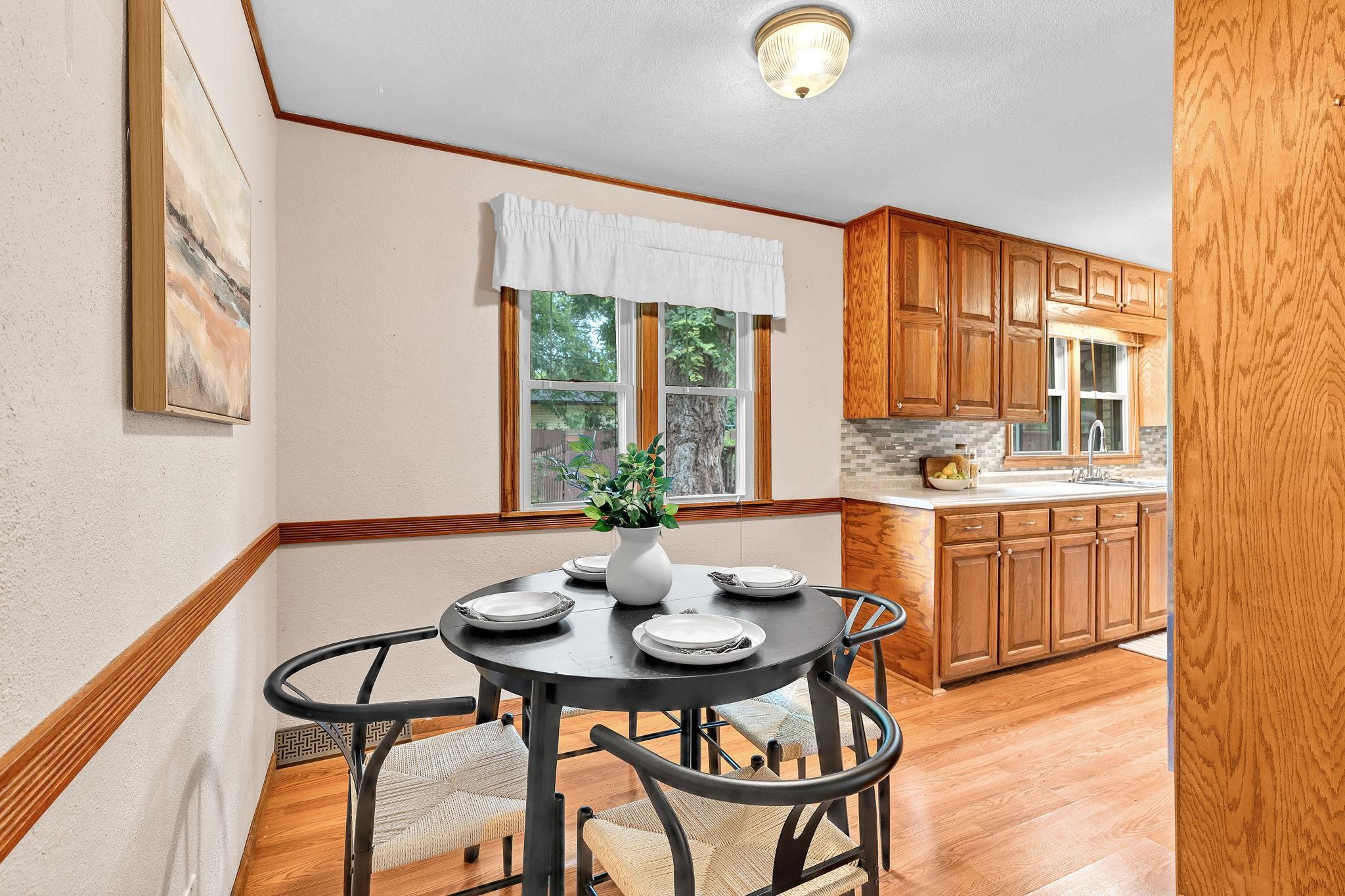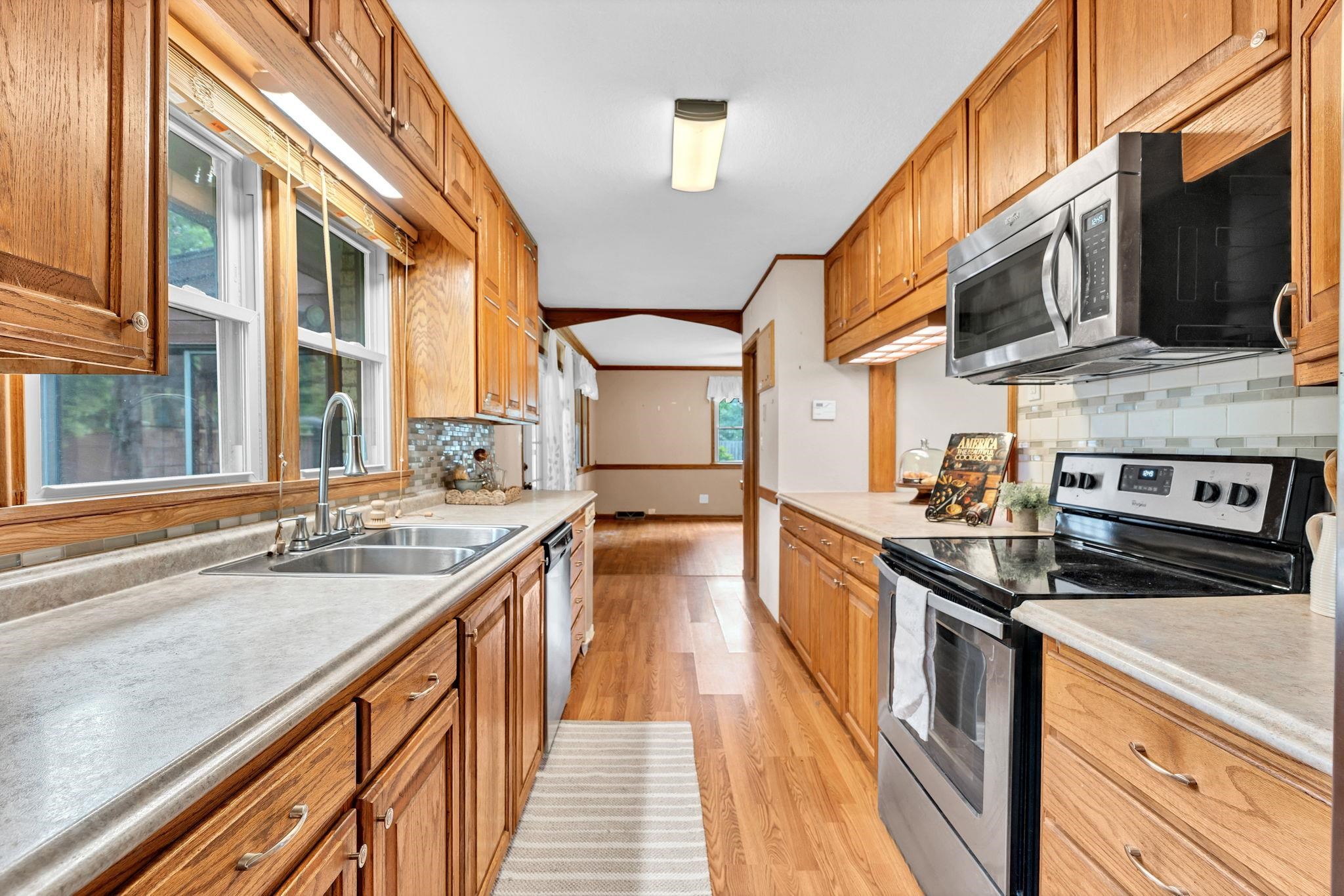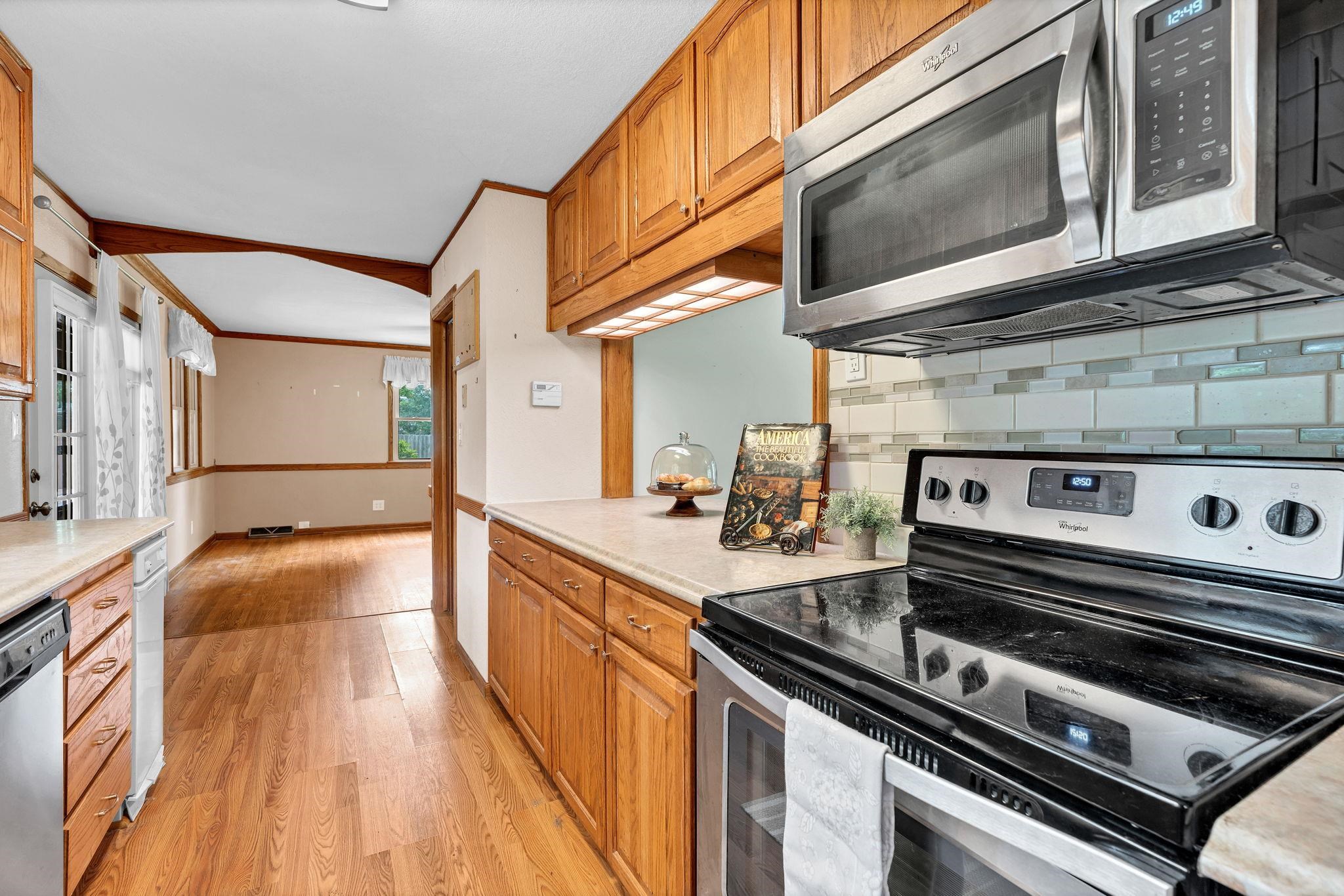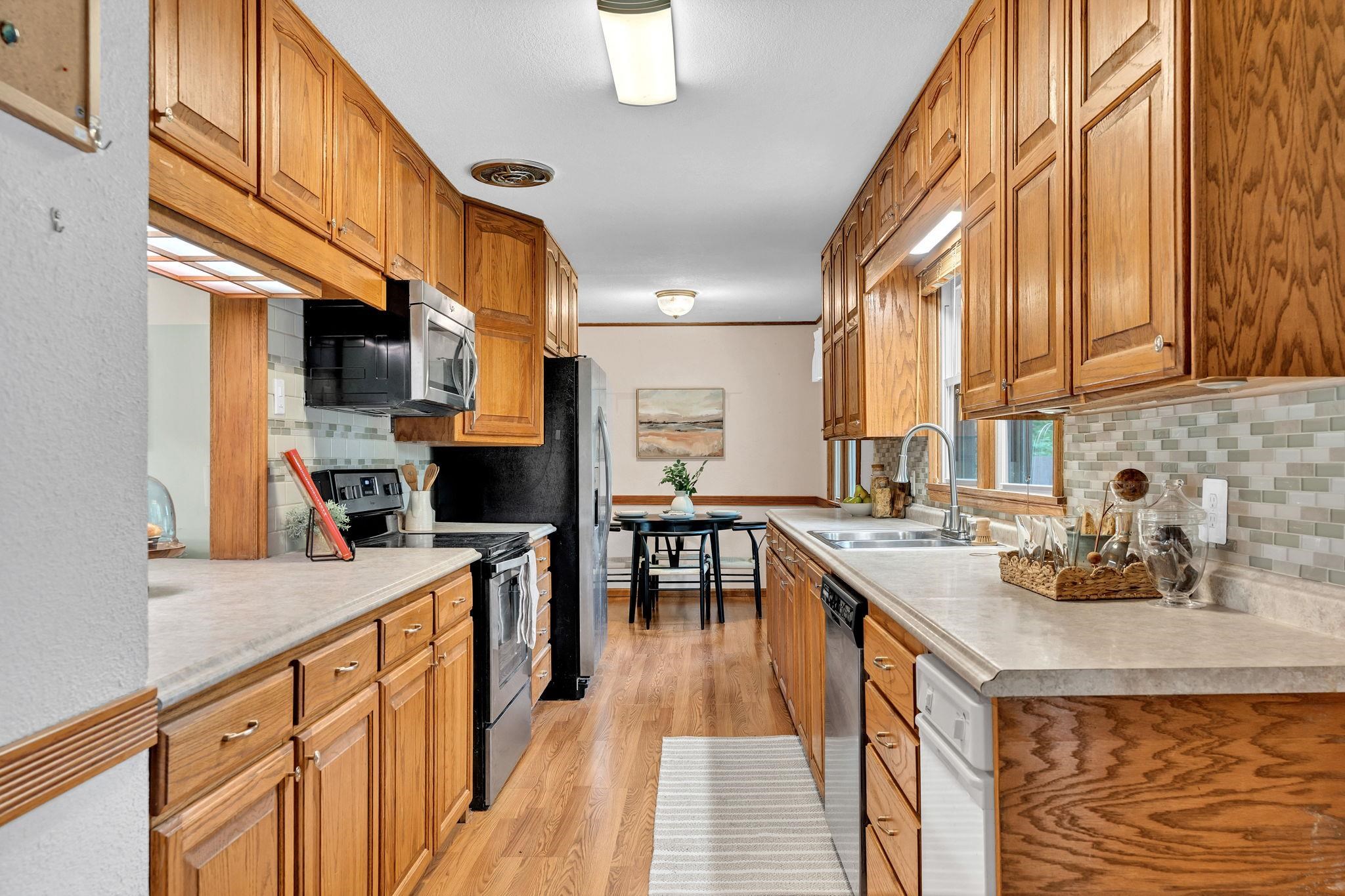 - Description: Welcome home to this spacious 2bed/2bath/2car ranch on nearly a half acre in a quiet neighborhood in west Wichita. As you arrive, you'll be greeted by beautiful mature trees and a low-maintenance brick exterior with vinyl trim. Step inside to discover timeless hardwood floors, replacement windows, and excellent natural lighting. The kitchen offers an abundance of storage, a full set of stainless appliances, a pass through window to the living room, and an updated glass back splash. Common space includes a sizable living room, a rec room/den with a wood burning free standing stove, and a dining area adjacent to the kitchen. The primary bedroom is large enough that it could be split into two rooms, should the buyer wish, and has access to its own full bath featuring a tile floor and new walk-in shower. The second bedroom is also generously sized with double closets, and the hall bath boasts a tile surround, new window, composite vanity, and tiled flooring. Exterior amenities include a sun patio/porch, privacy-fenced yard, huge wrap-around deck, garden, storm shelter, gutter guards, and storage shed. This home is in a peaceful neighborhood with friendly neighbors, and has no special taxes. Come see us today before it's gone! *See the promo video for additional views of this home.* Show all description