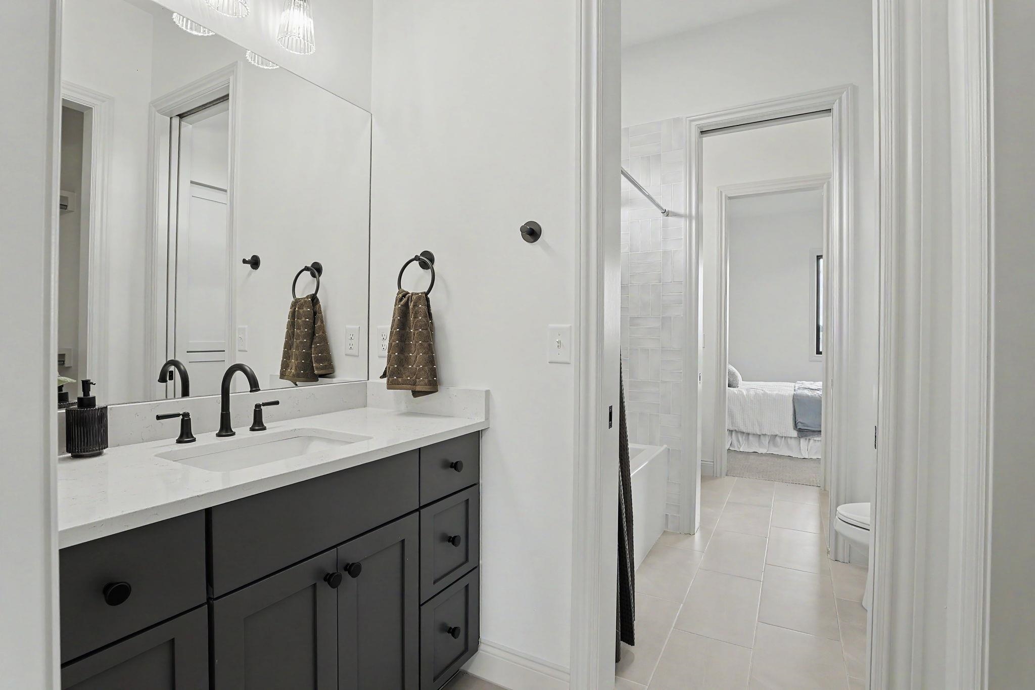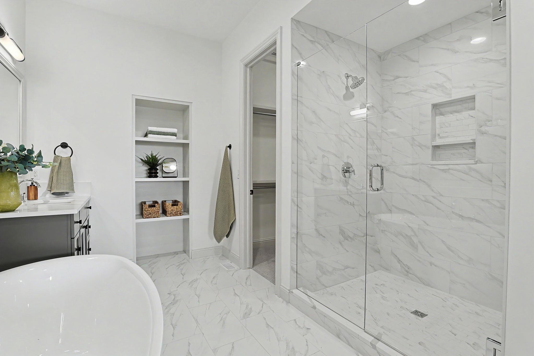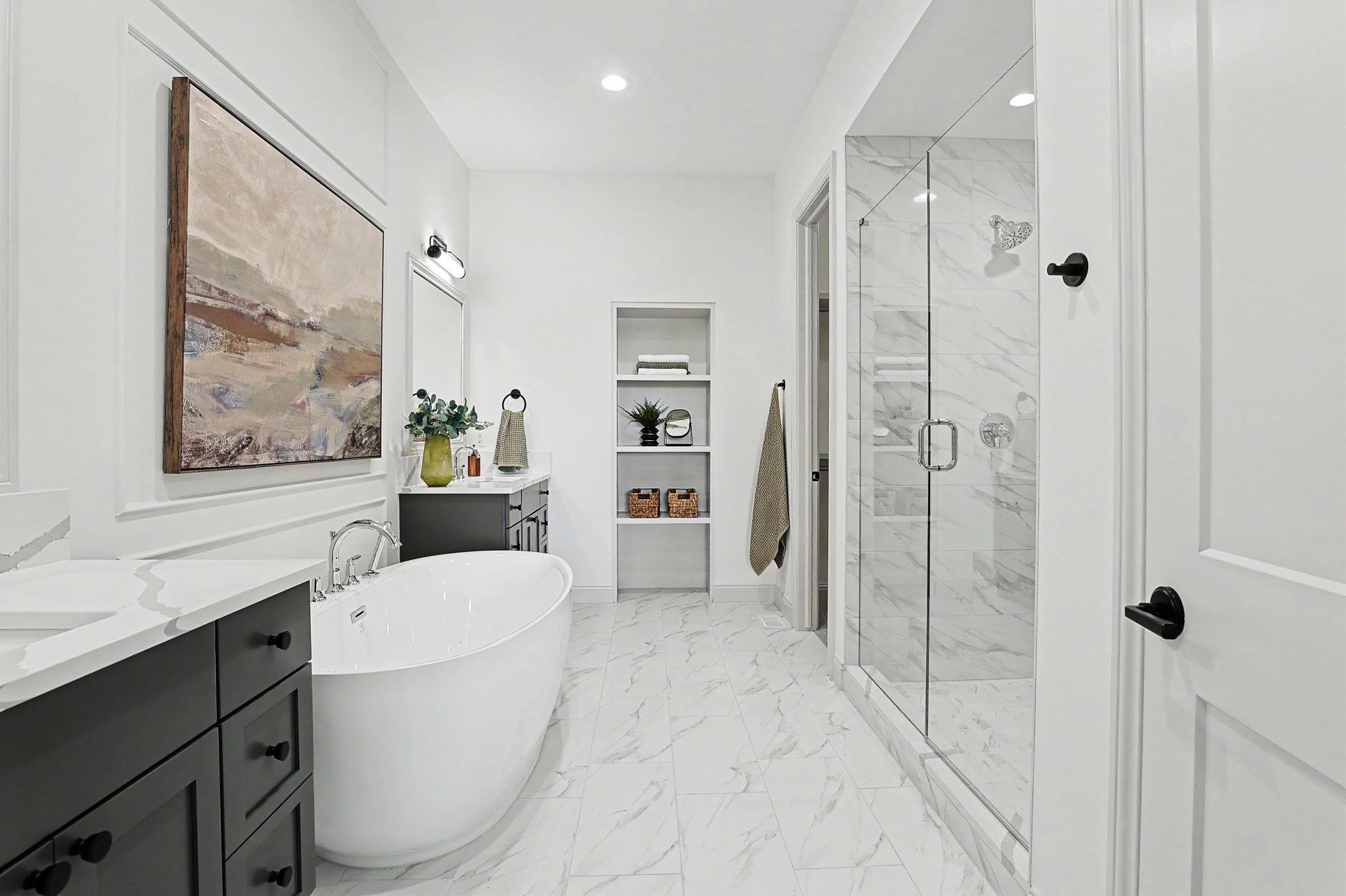 - Master Bedroom: Master Bdrm on Main Level, Split Bedroom Plan, Master Bedroom Bath, Tub/Master Bedroom, Sep. Tub/Shower/Mstr Bdrm, Two Sinks, Granite Counters, Quartz Counters, Water Closet